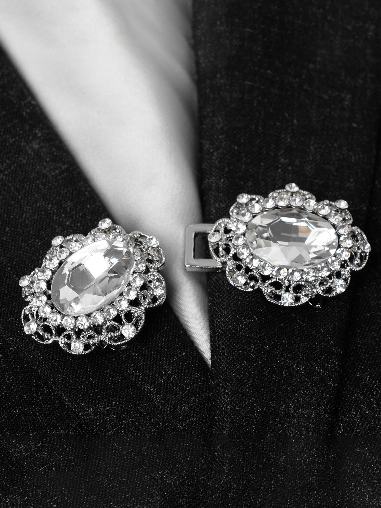 Зажим для кардигана "Акцент", цвет белый в серебре, 6.6x3x1.5 см., QF, Китай