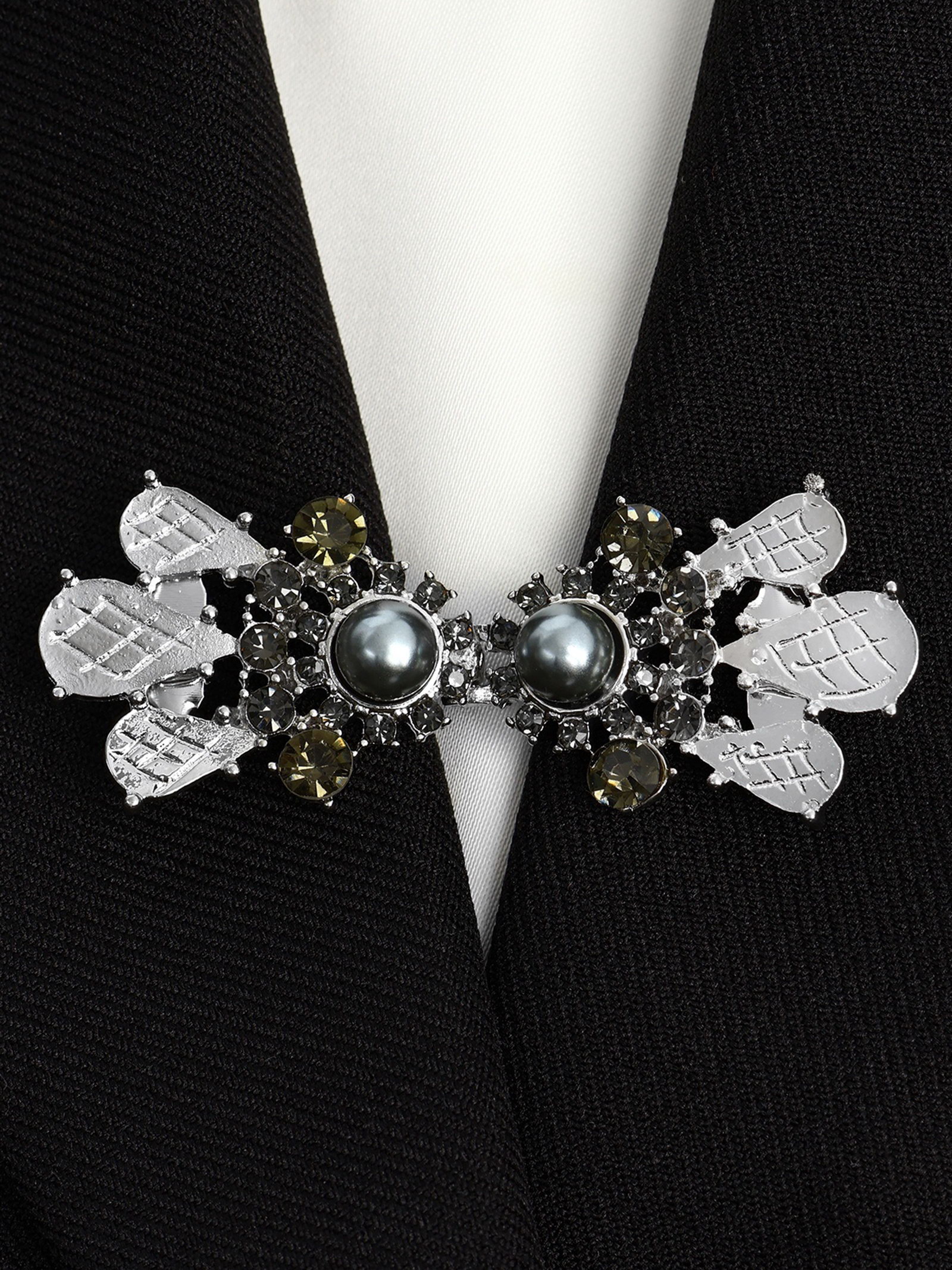 Зажим для кардигана "Барокко", цвет серый в серебре, 3x6x1 см., QF, Китай