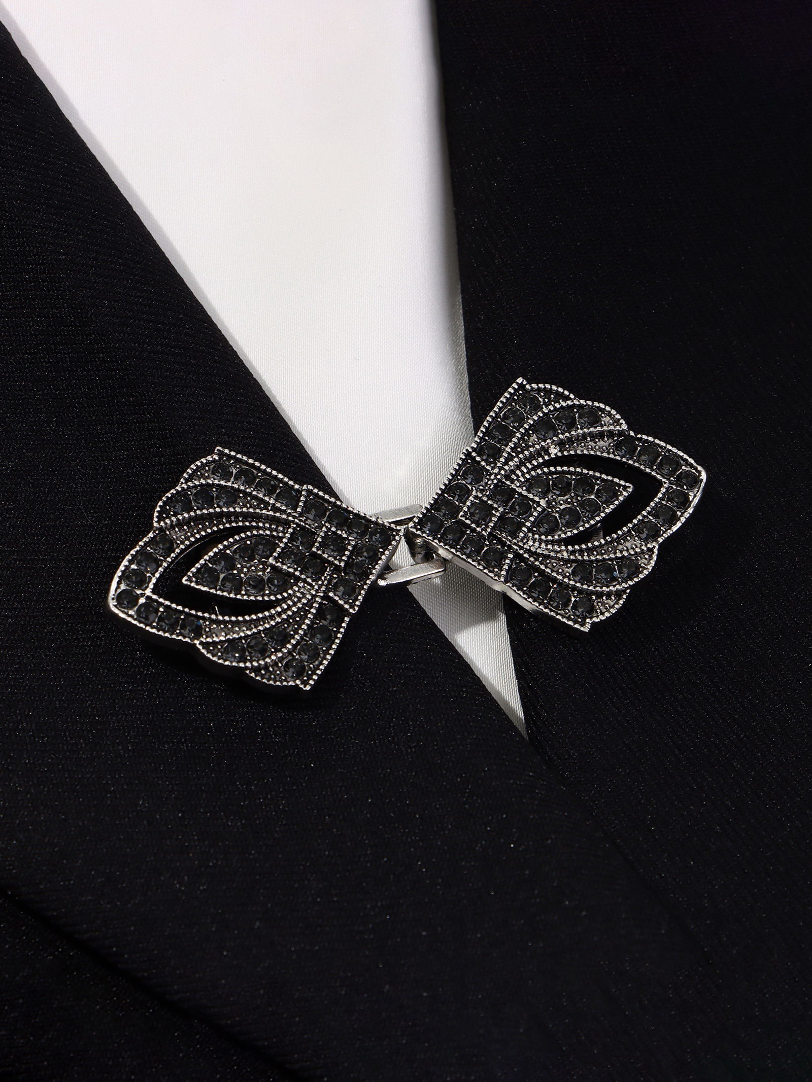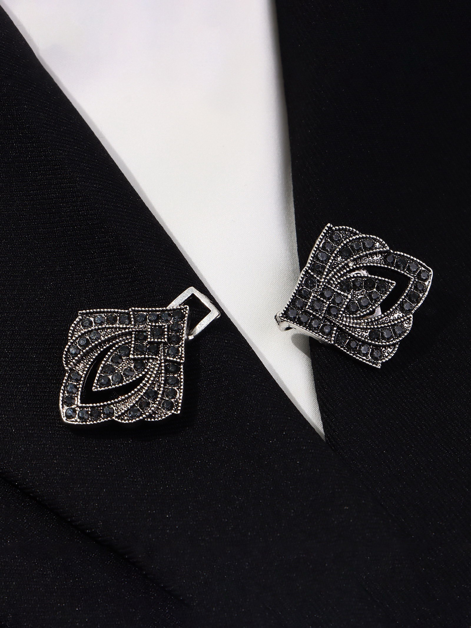 Зажим для кардигана "Пики", цвет чёрный в чернёном серебре, 3.2x3.5x1 см., QF, Китай