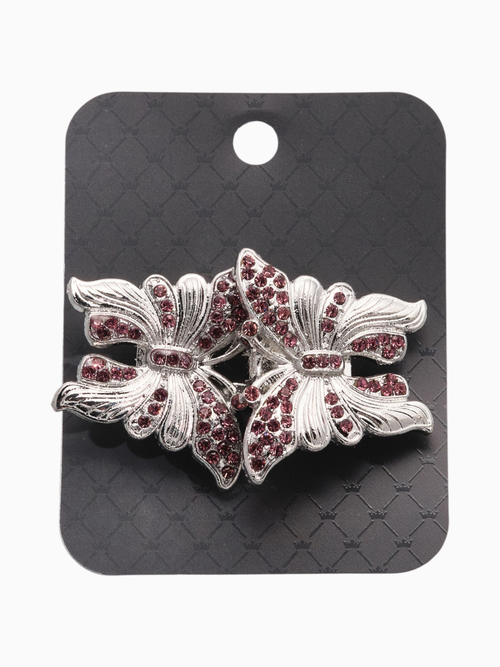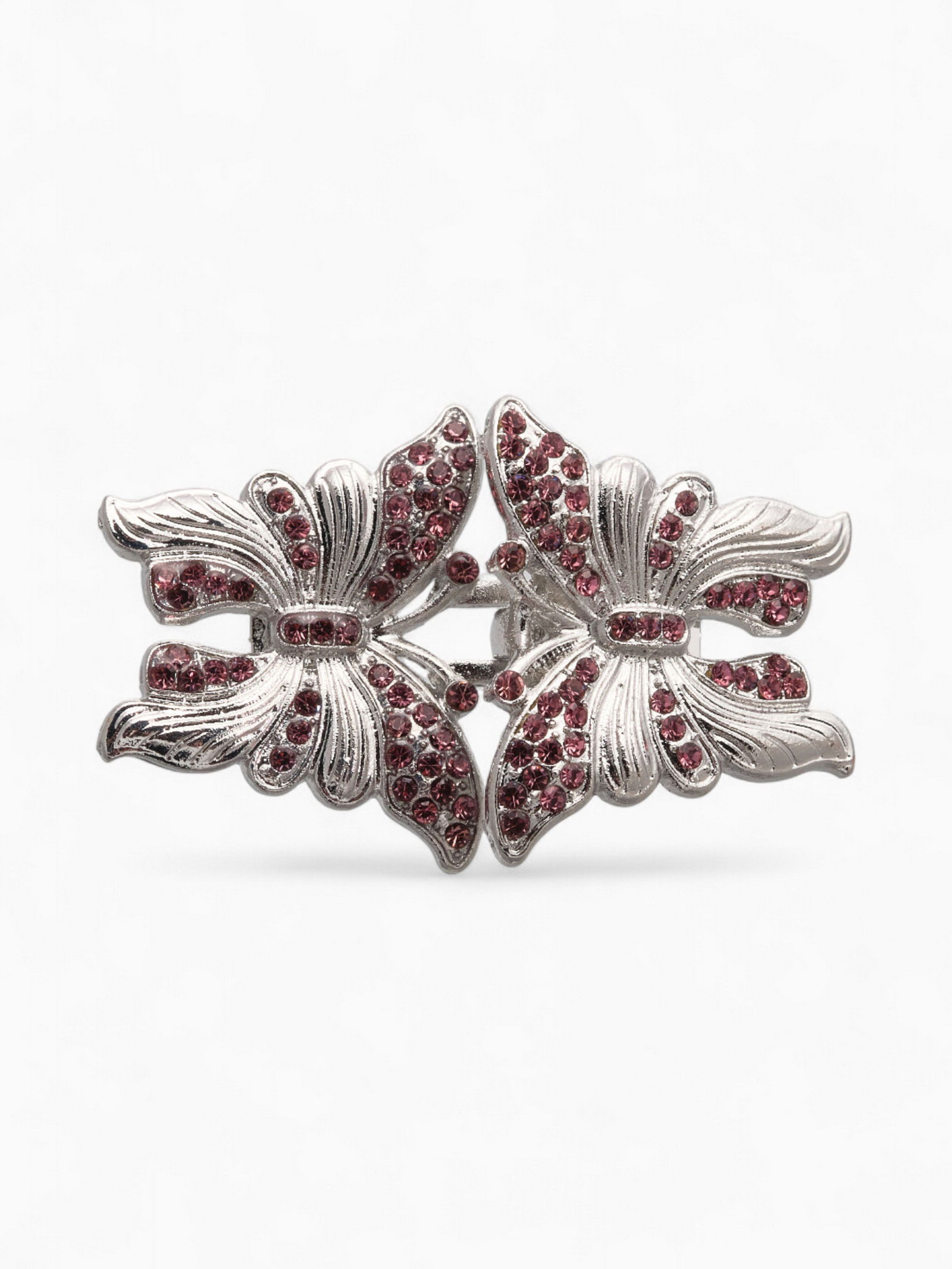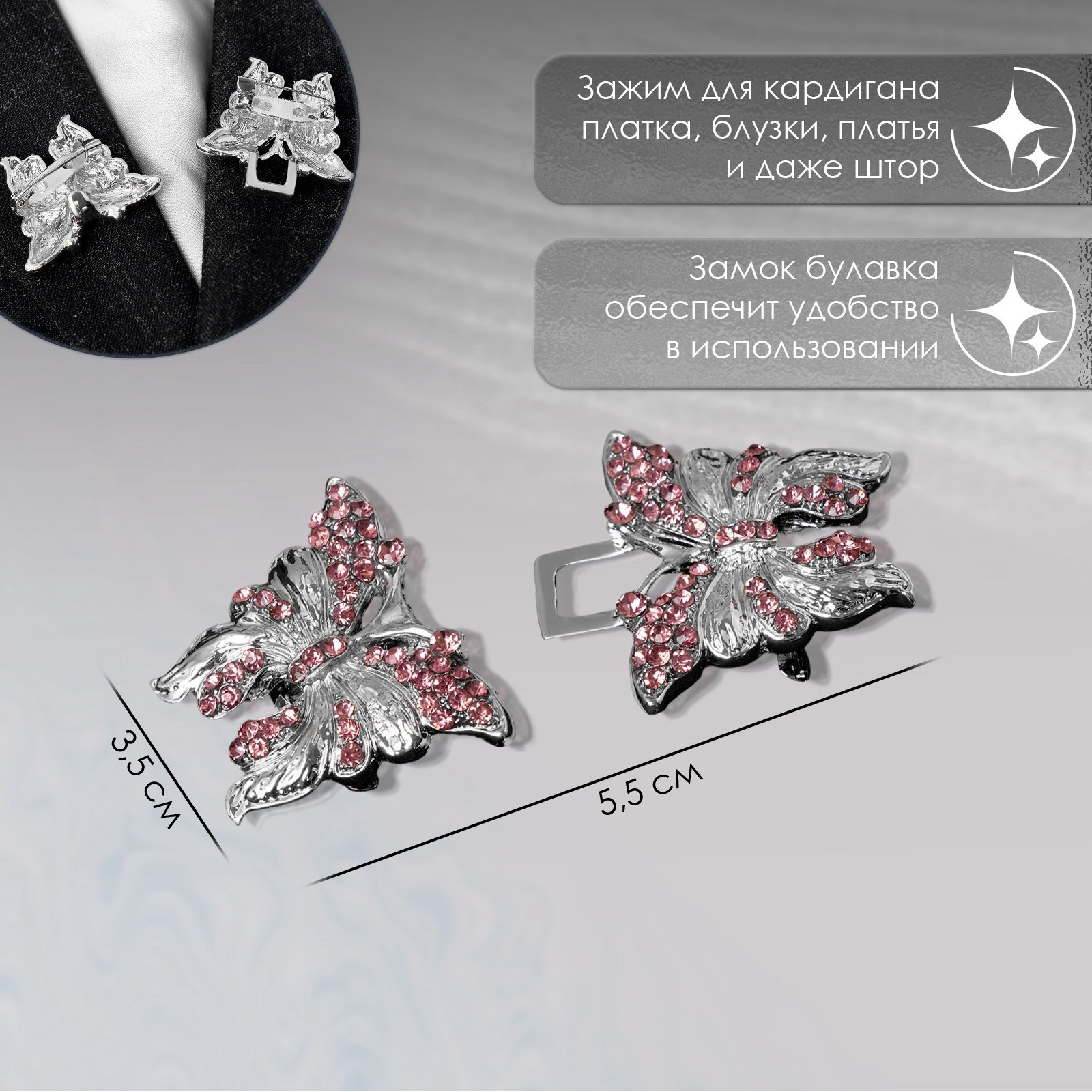 Зажим для кардигана "Бабочки", цвет розовый в серебре, 3.5x5.5x1.2 см., QF, Китай
