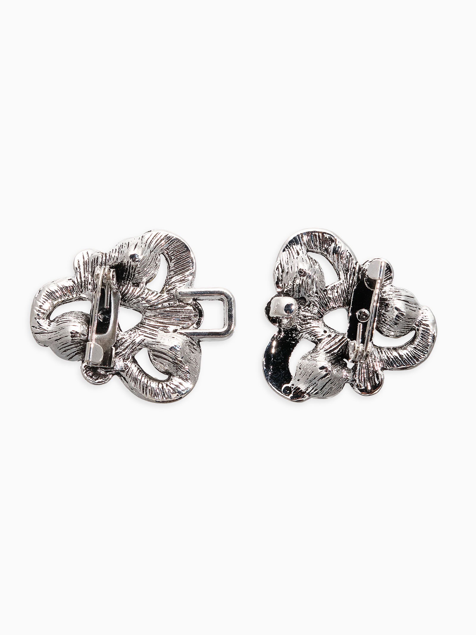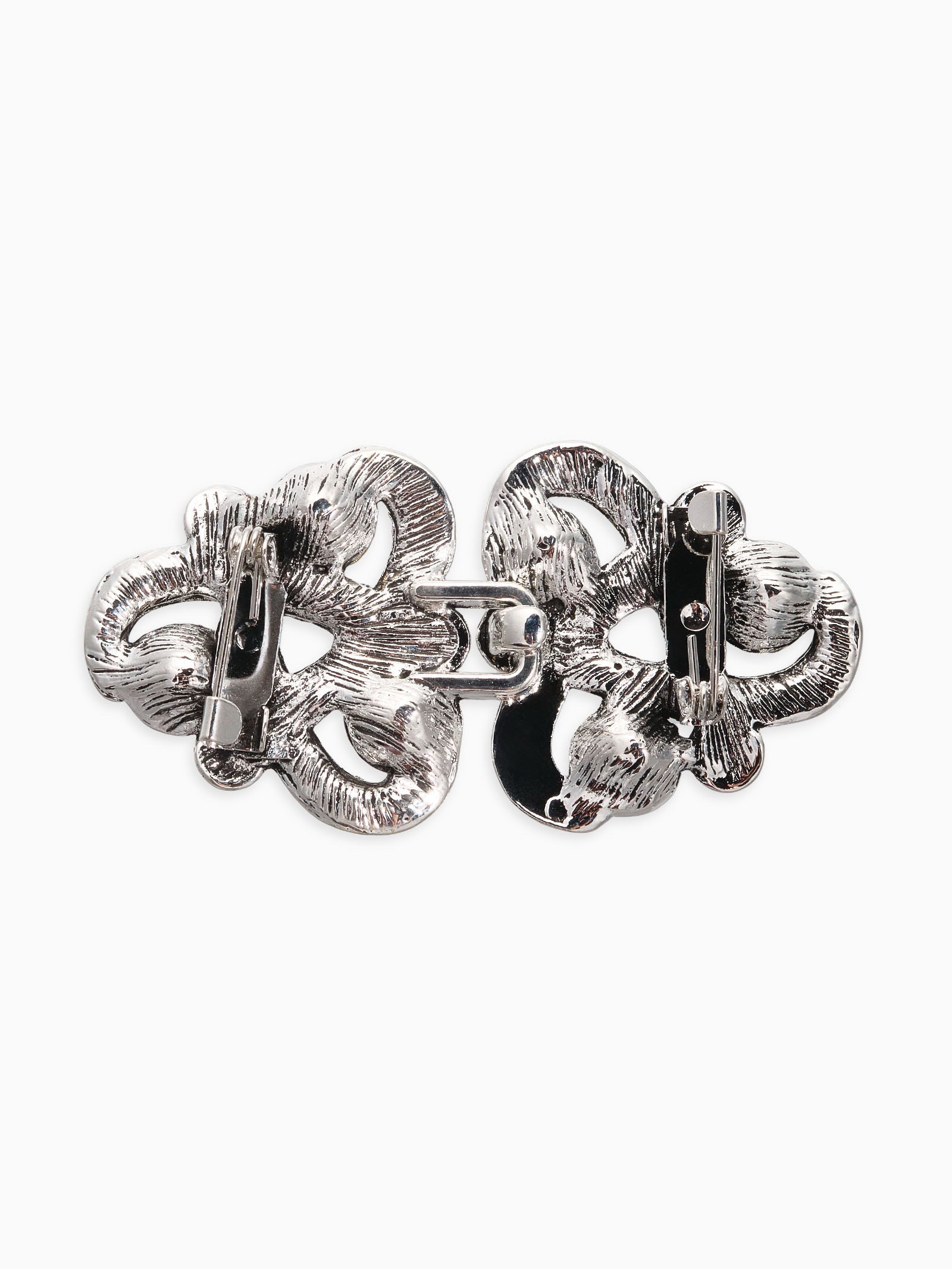 Зажим для кардигана "Ажур. Узел", белый в чернёном серебре, 2.8x5.5x0.5 см., QF, Китай