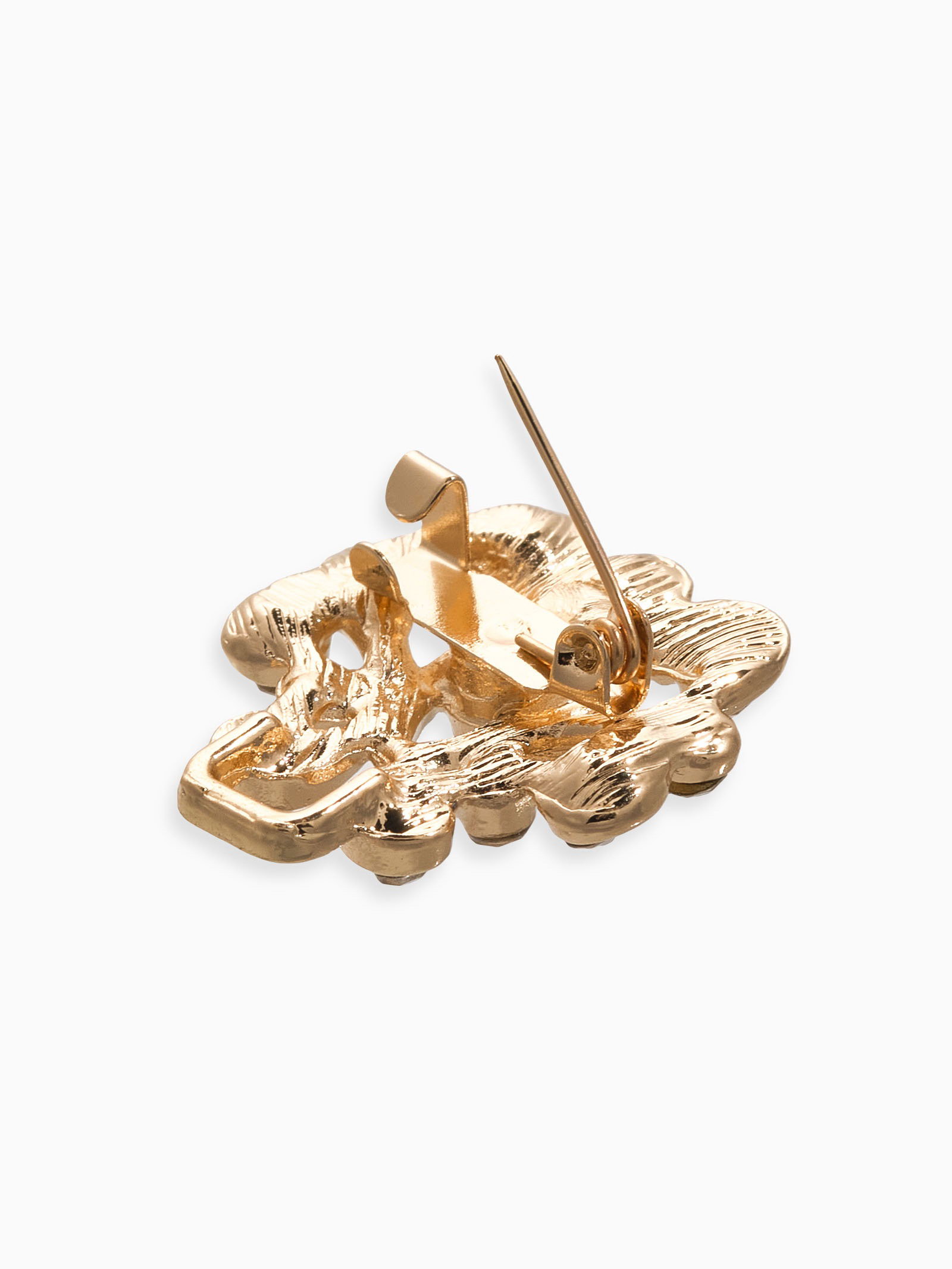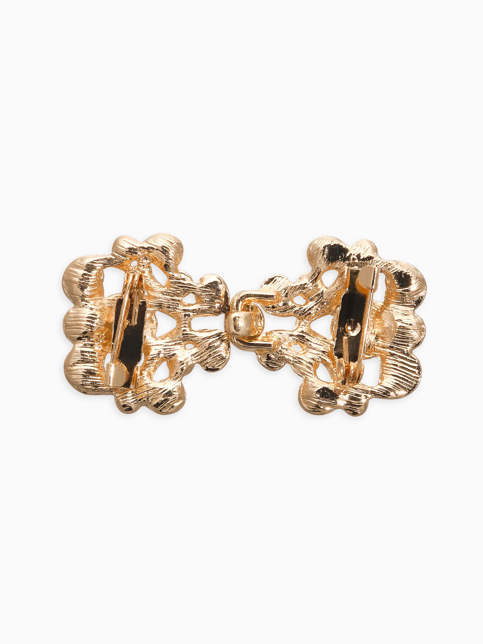 Зажим для кардигана "Ажур. Завитки", белый в золоте, 2.5x5.2x0.5 см., QF, Китай