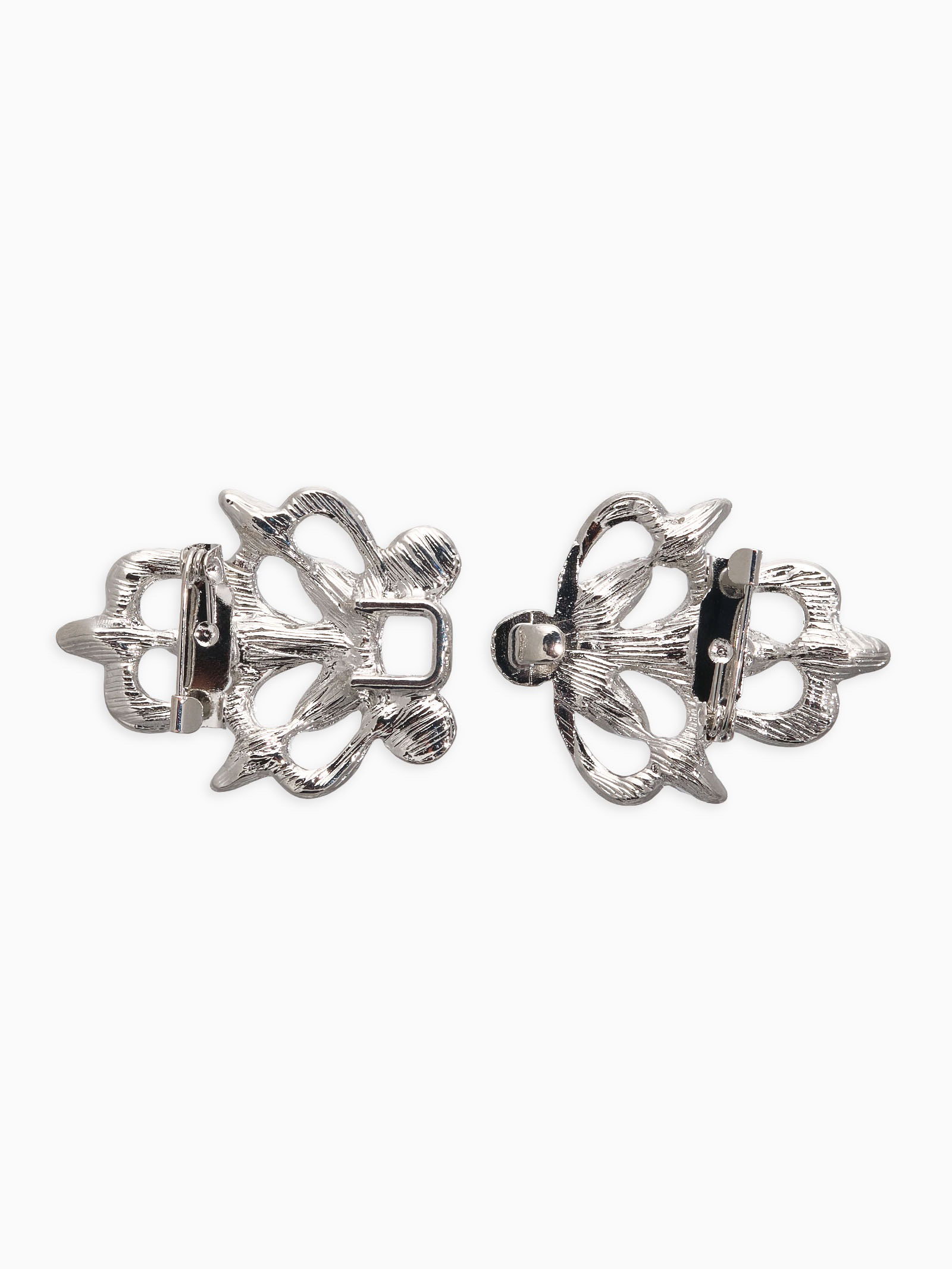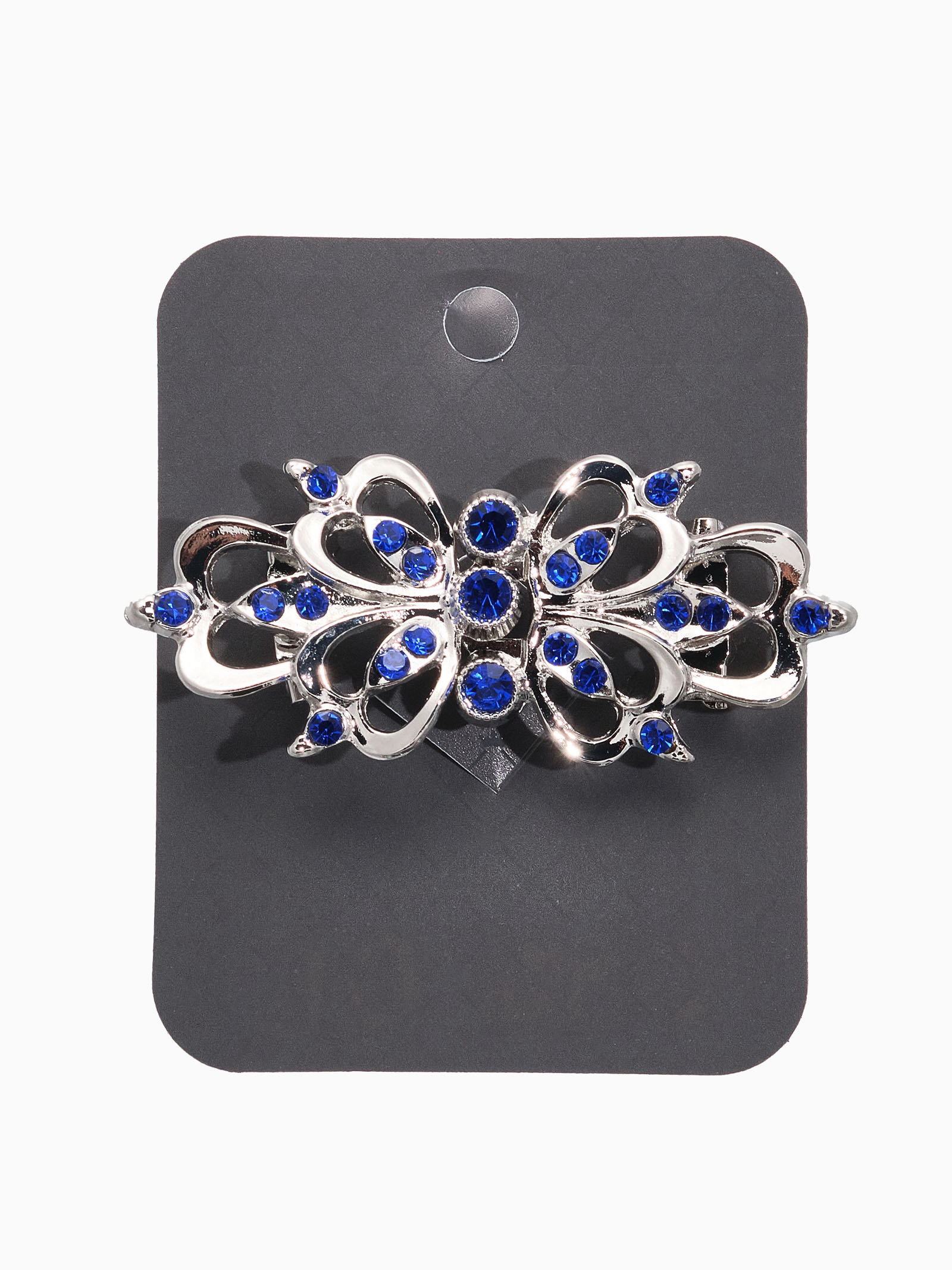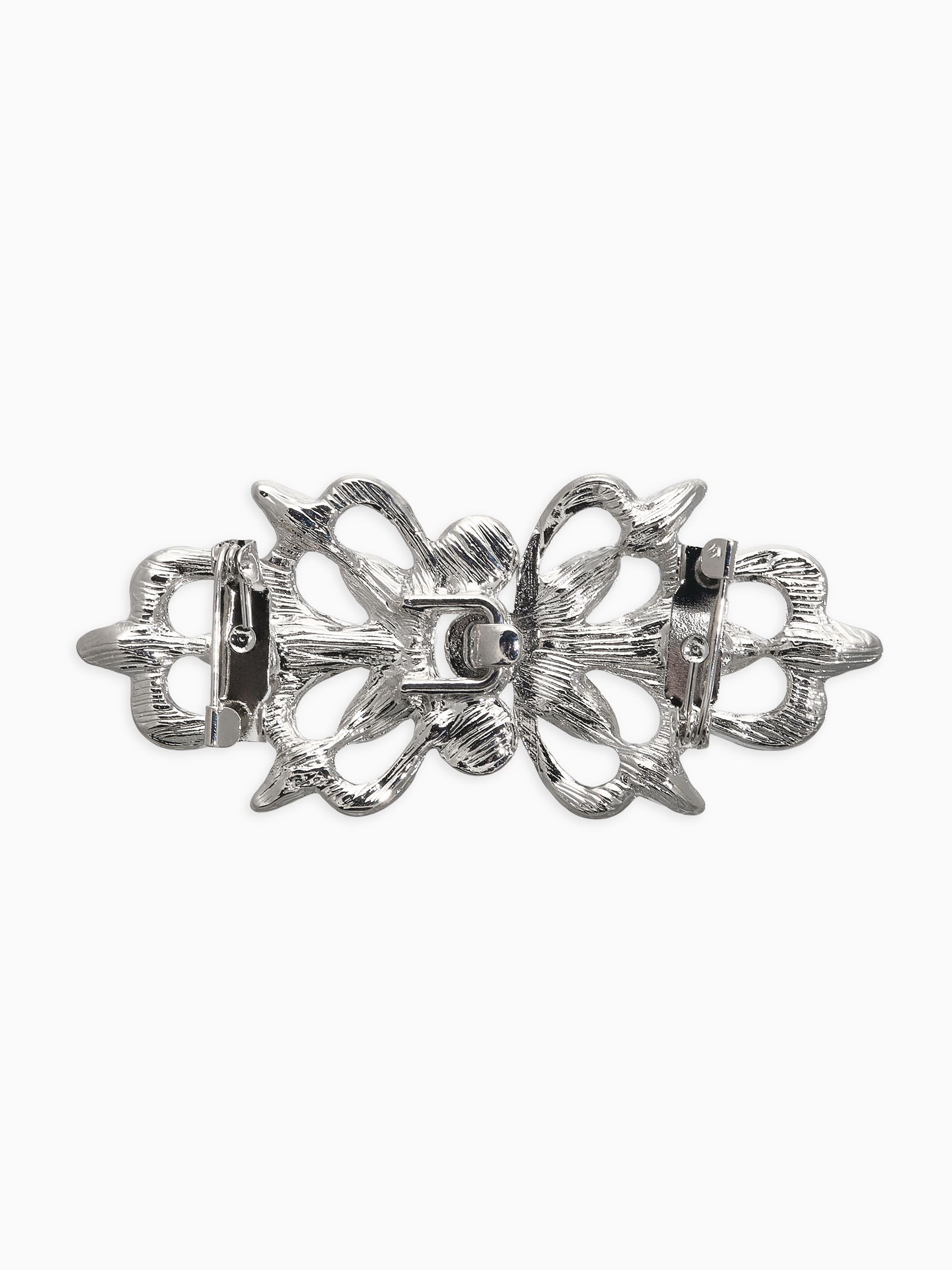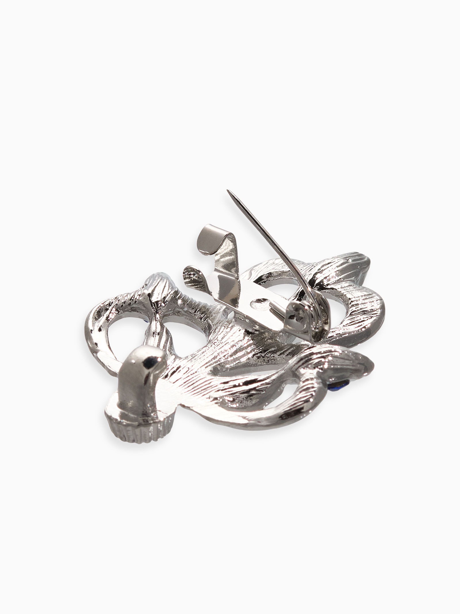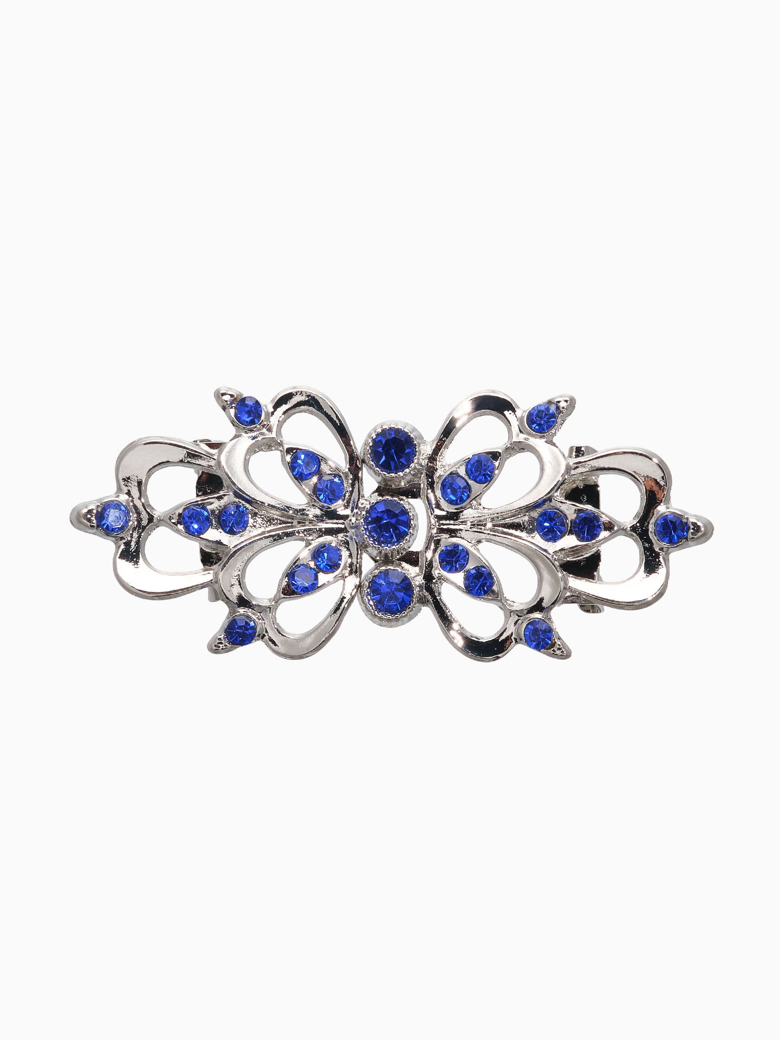 Зажим для кардигана "Ажур. Цветы", синий в серебре, 2x3.5x0.5 см., QF, Китай