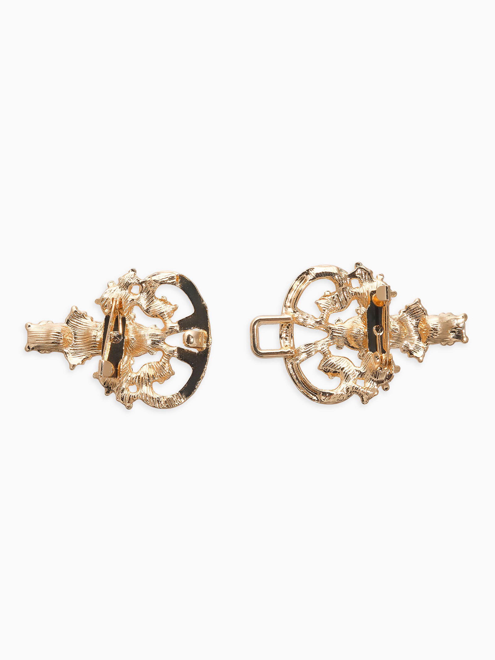Зажим для кардигана "Ажур. Пика", цвет золотой в золоте, 2.8x7.4x0.5 см., QF, Китай