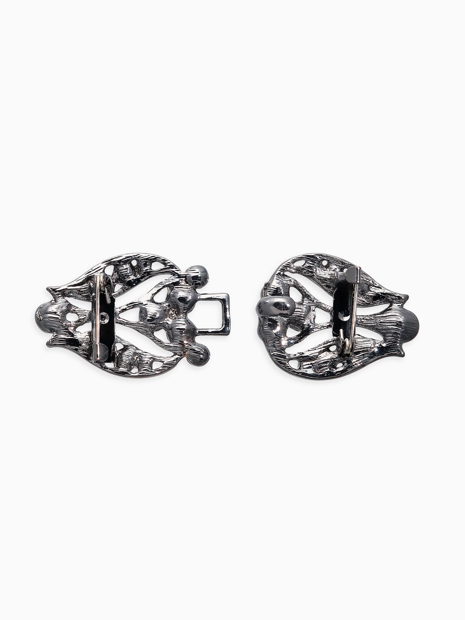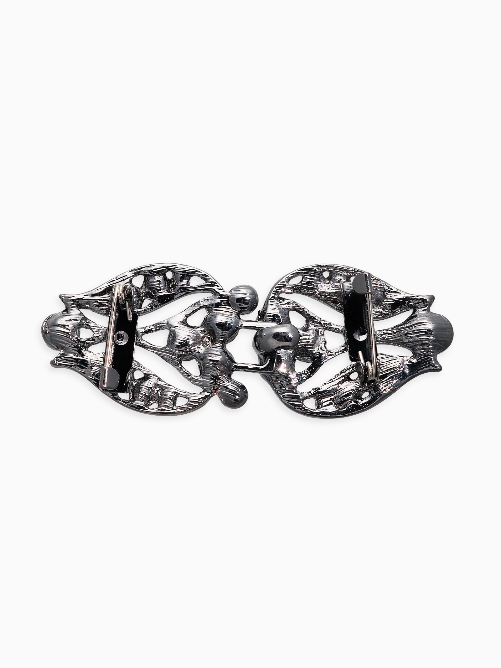Зажим для кардигана "Ажур. Бутон", серо-белый в сером, 2.3x6x0.5 см., QF, Китай