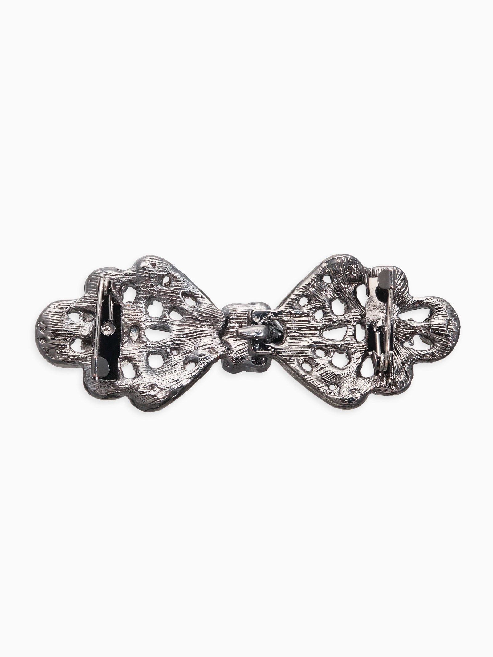 Зажим для кардигана "Ажур. Бант", чёрный в сером, 2.5x6.5x0.5 см., QF, Китай