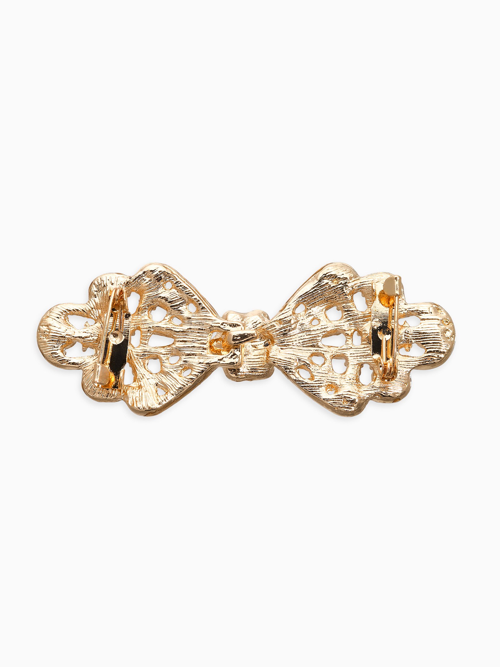 Зажим для кардигана "Ажур. Бант", белый в золоте, 2.5x6.5x0.5 см., QF, Китай