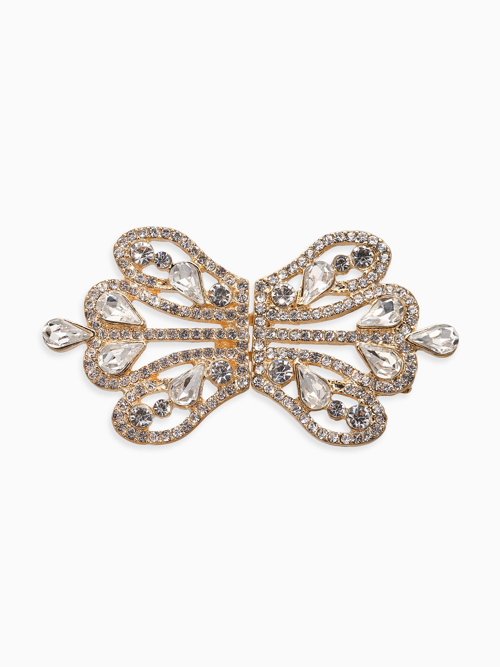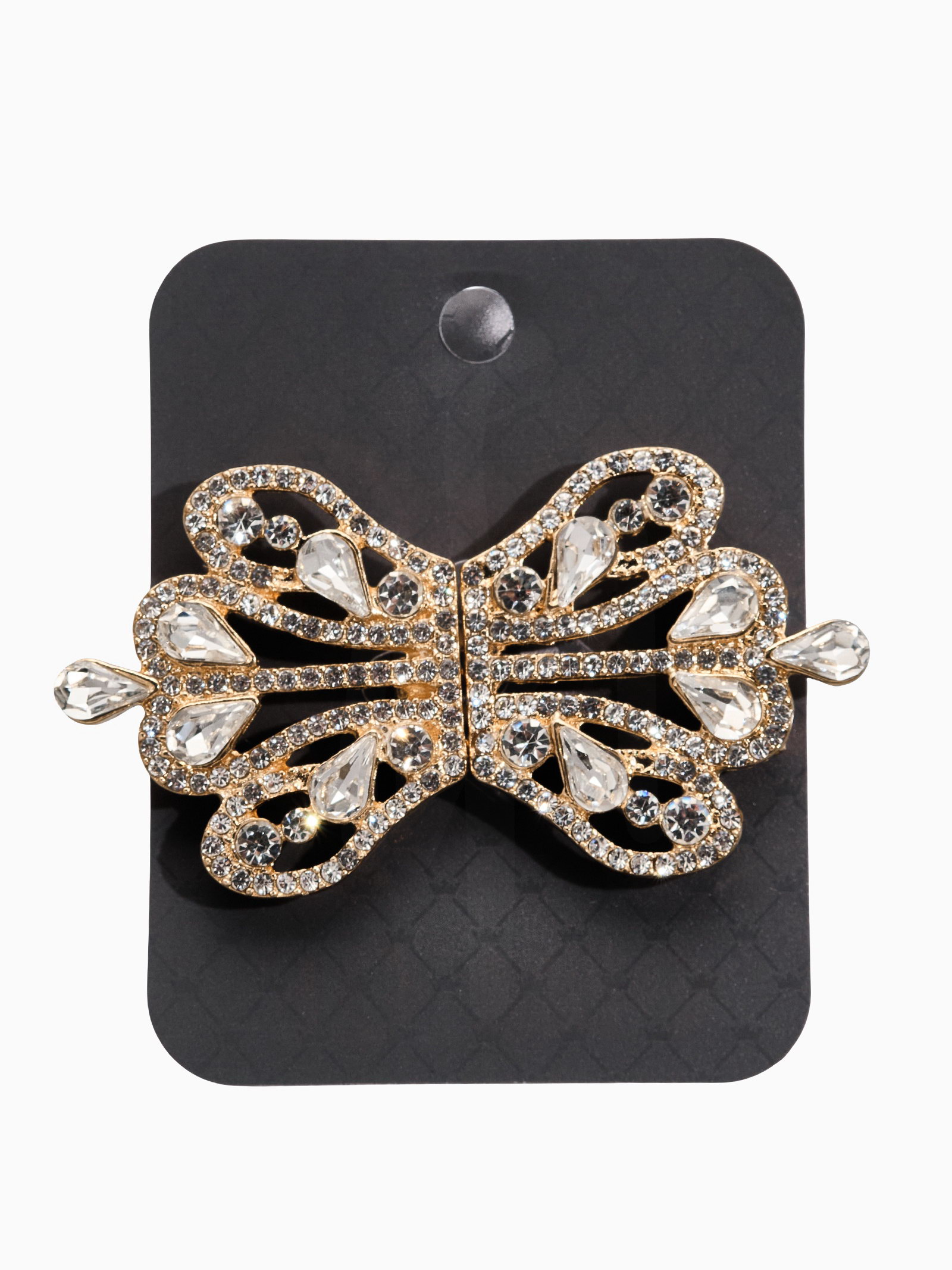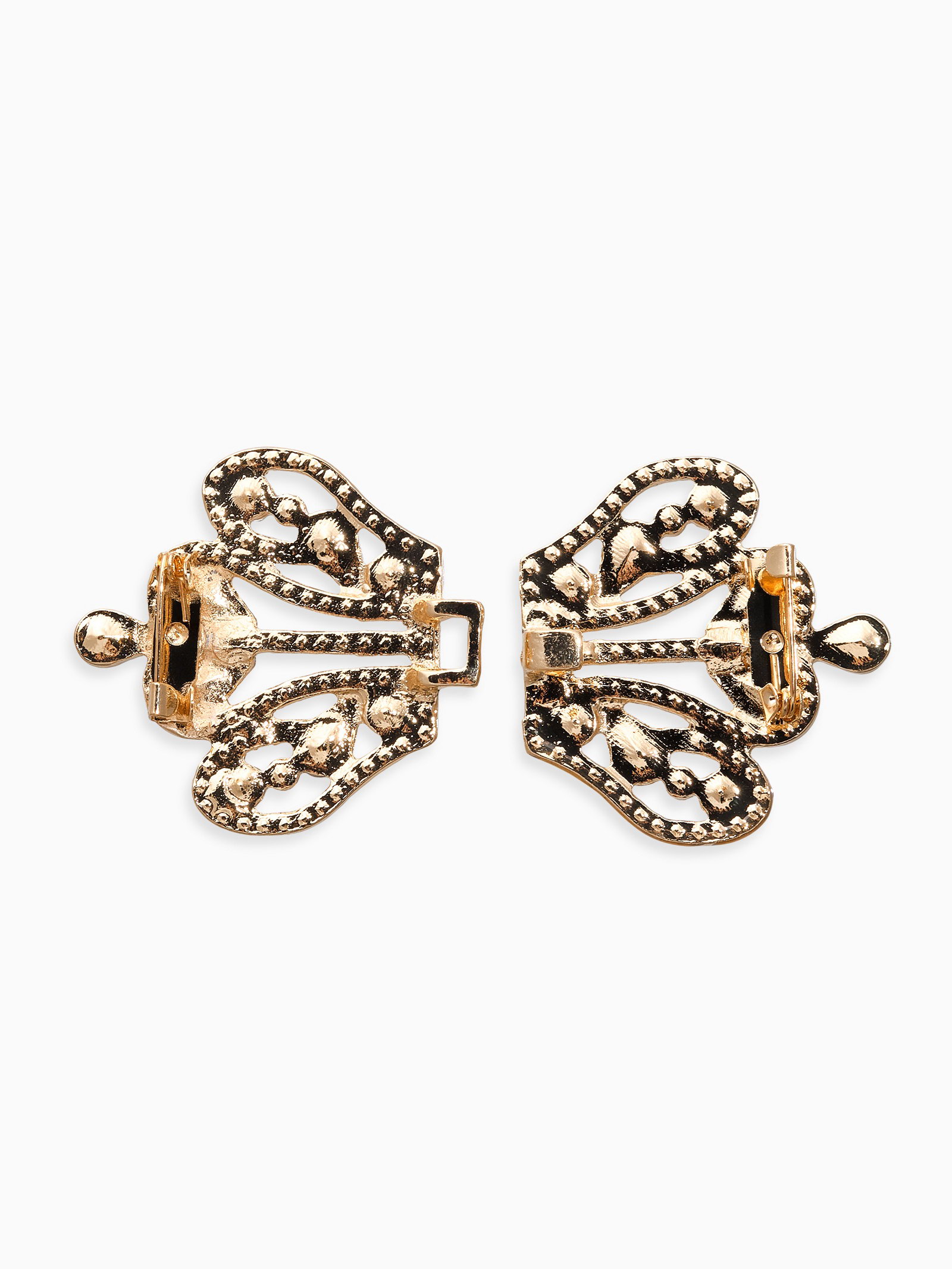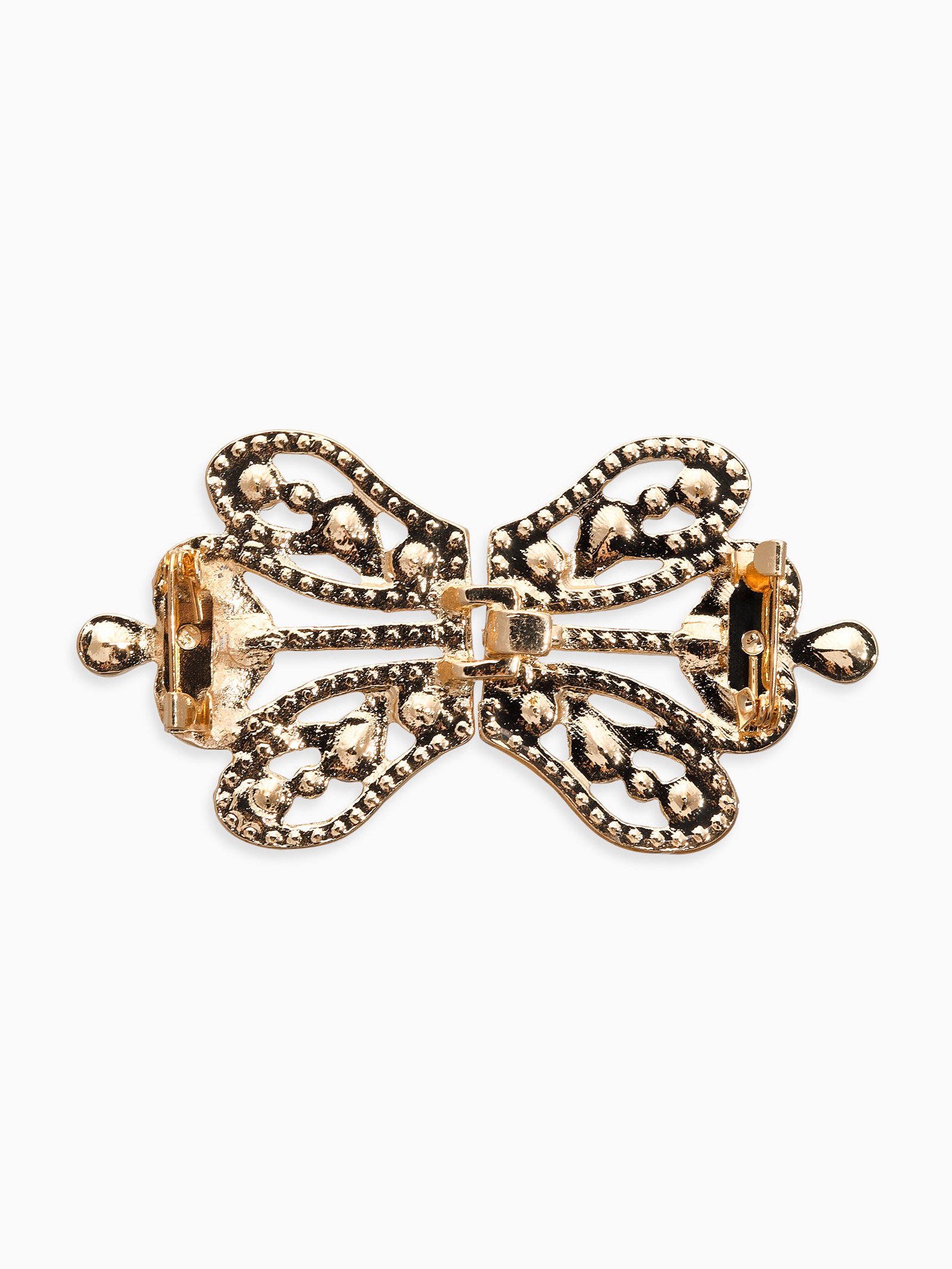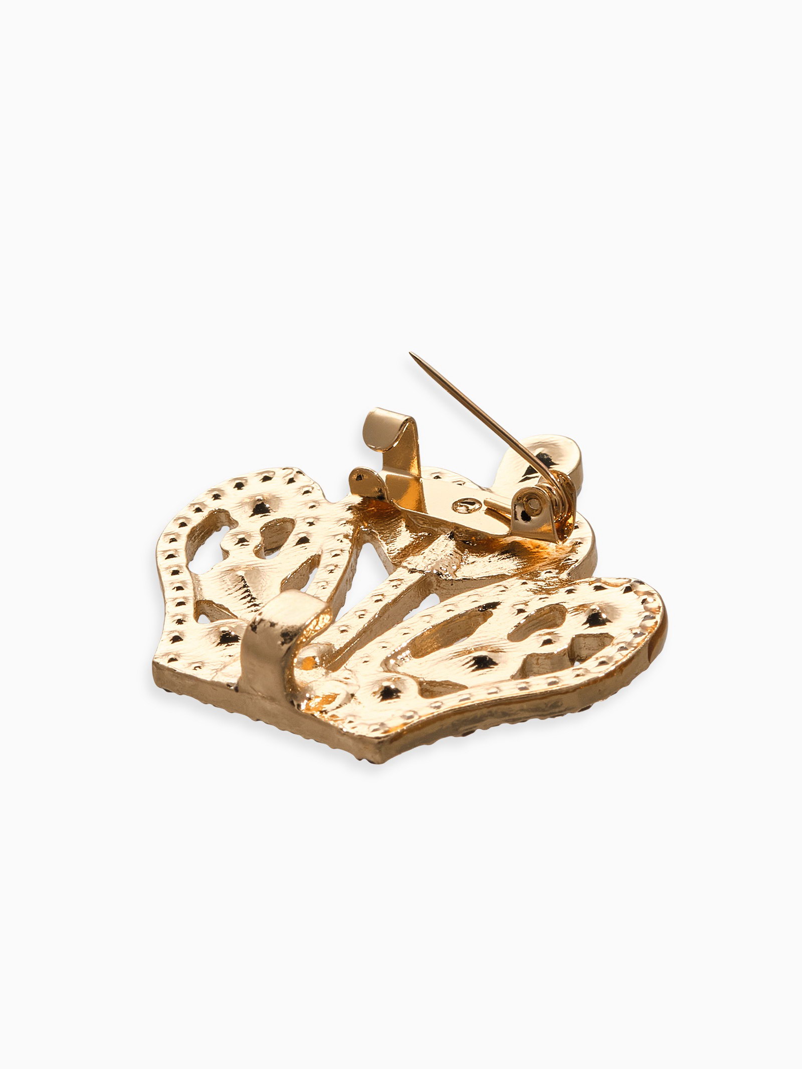 Зажим для кардигана "Ажур", корона империи, белый в золоте, 4x3.5x0.5 см., QF, Китай