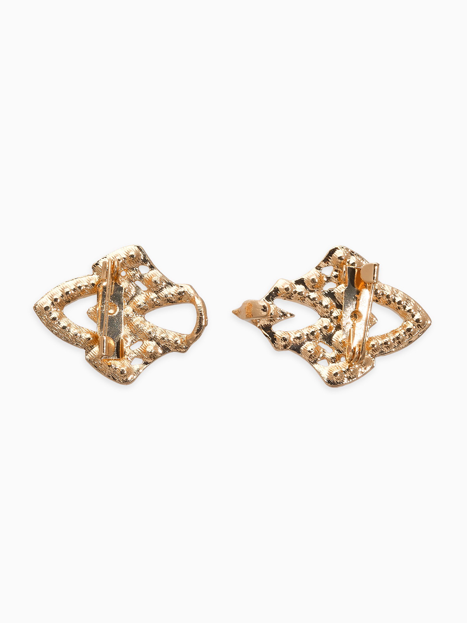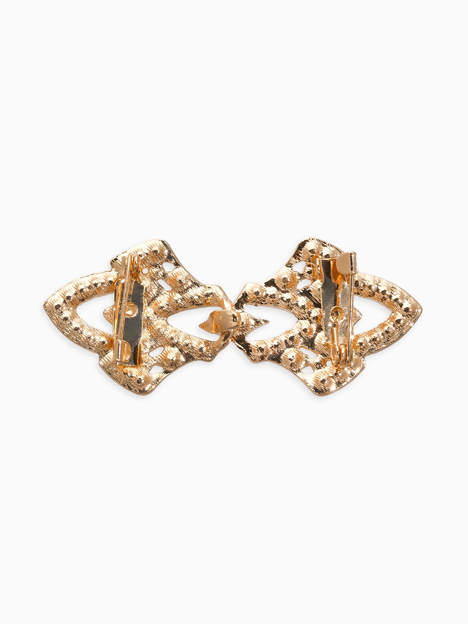 Зажим для кардигана "Ажур. Винтажные пики", белый в золоте, 1.7x3.5x0.5 см., QF, Китай