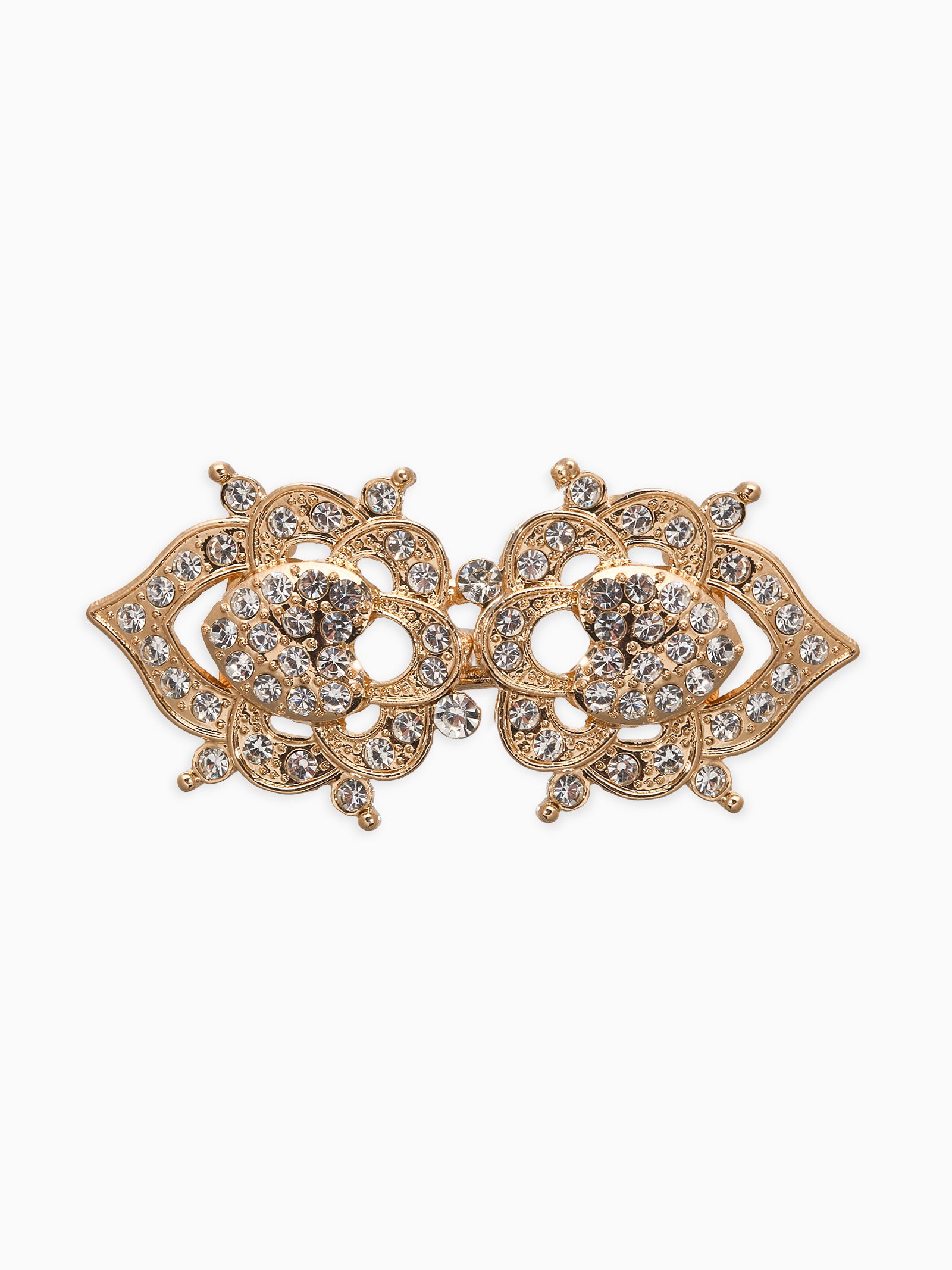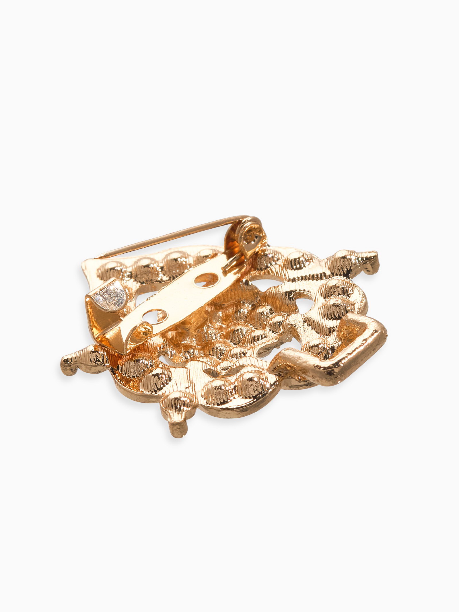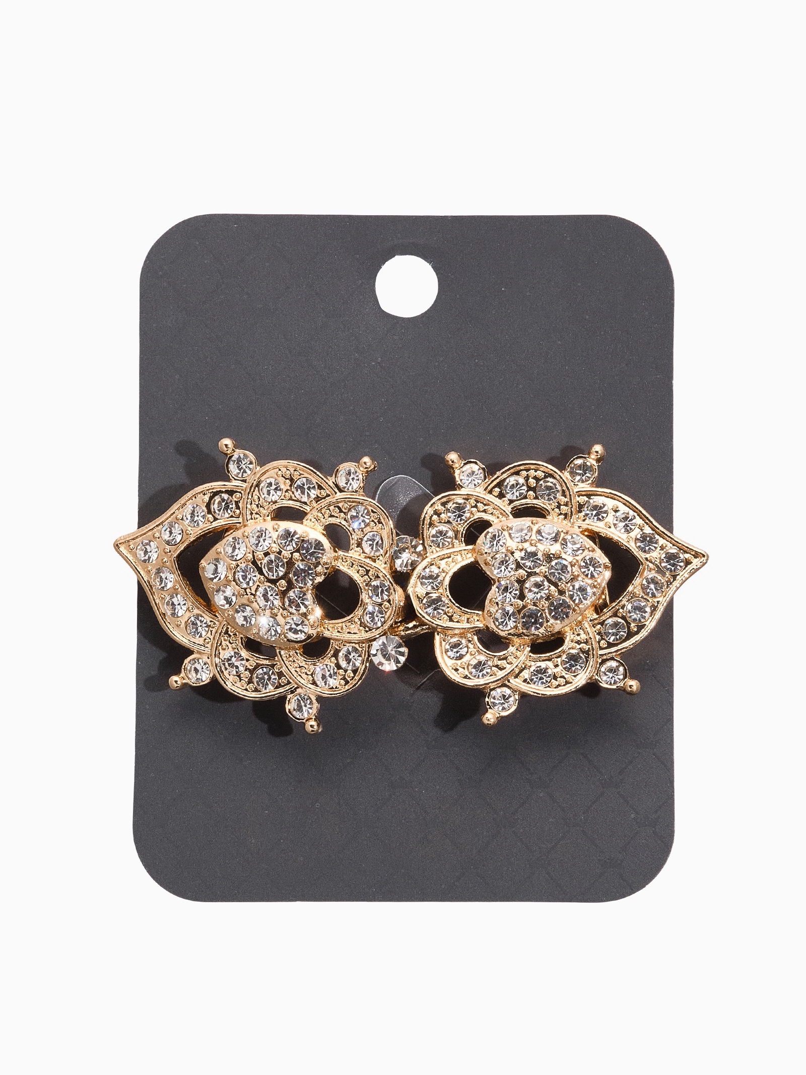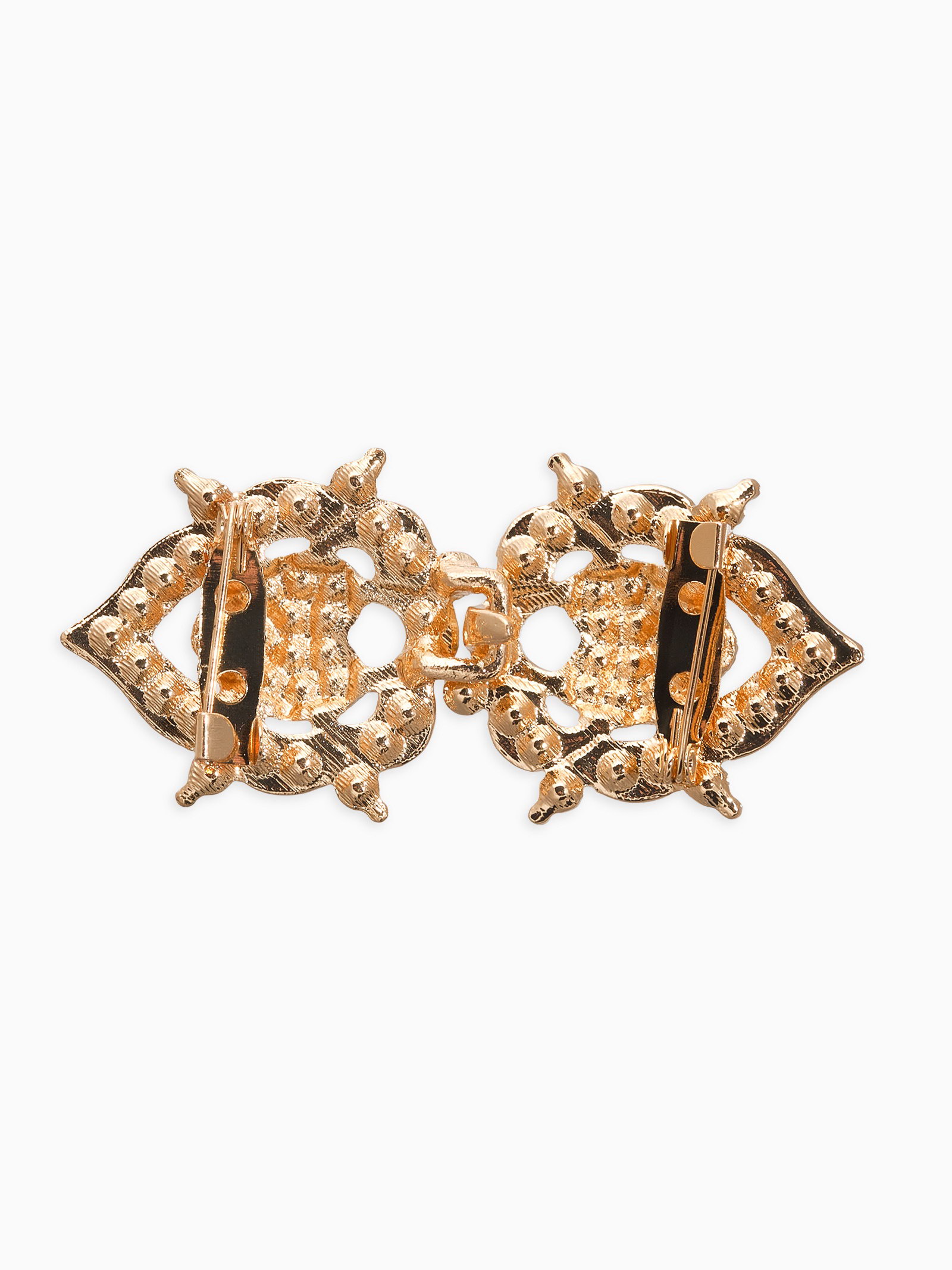 Зажим для кардигана "Ажур. Кокошник", белый в золоте, 2x3.5x0.5 см., QF, Китай