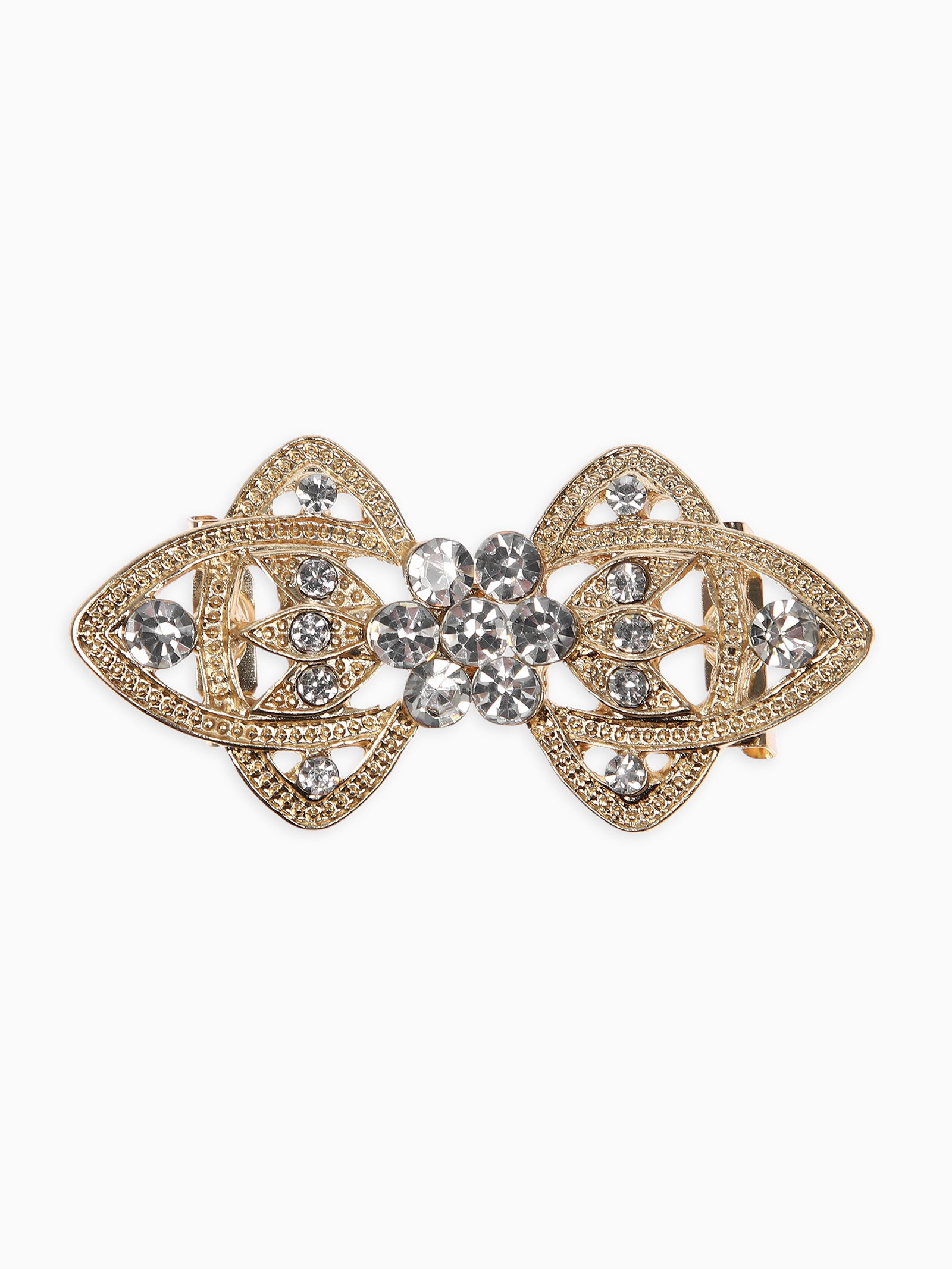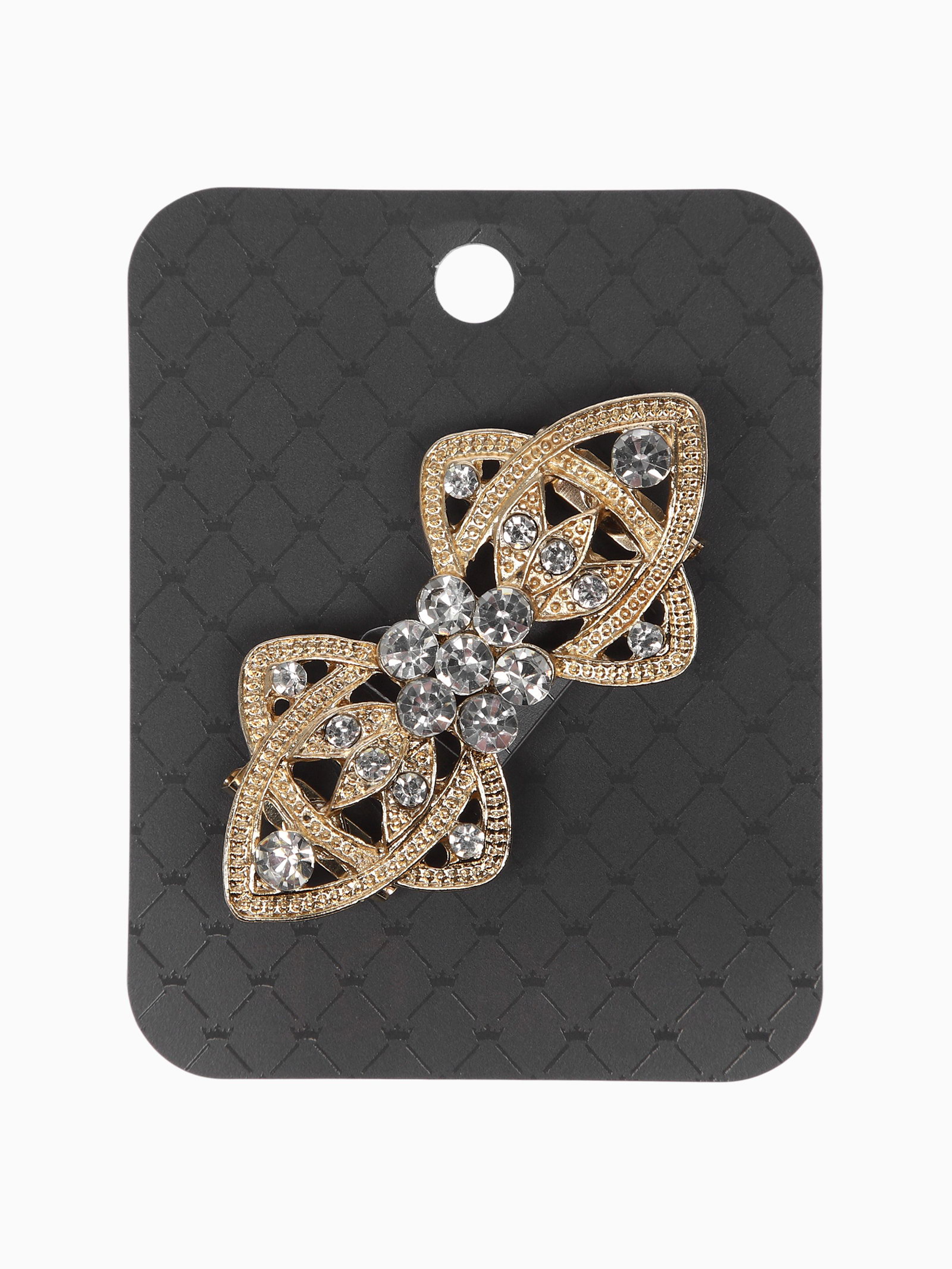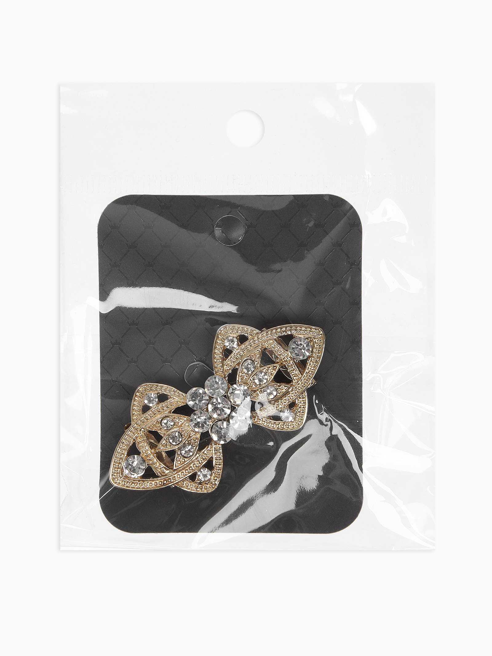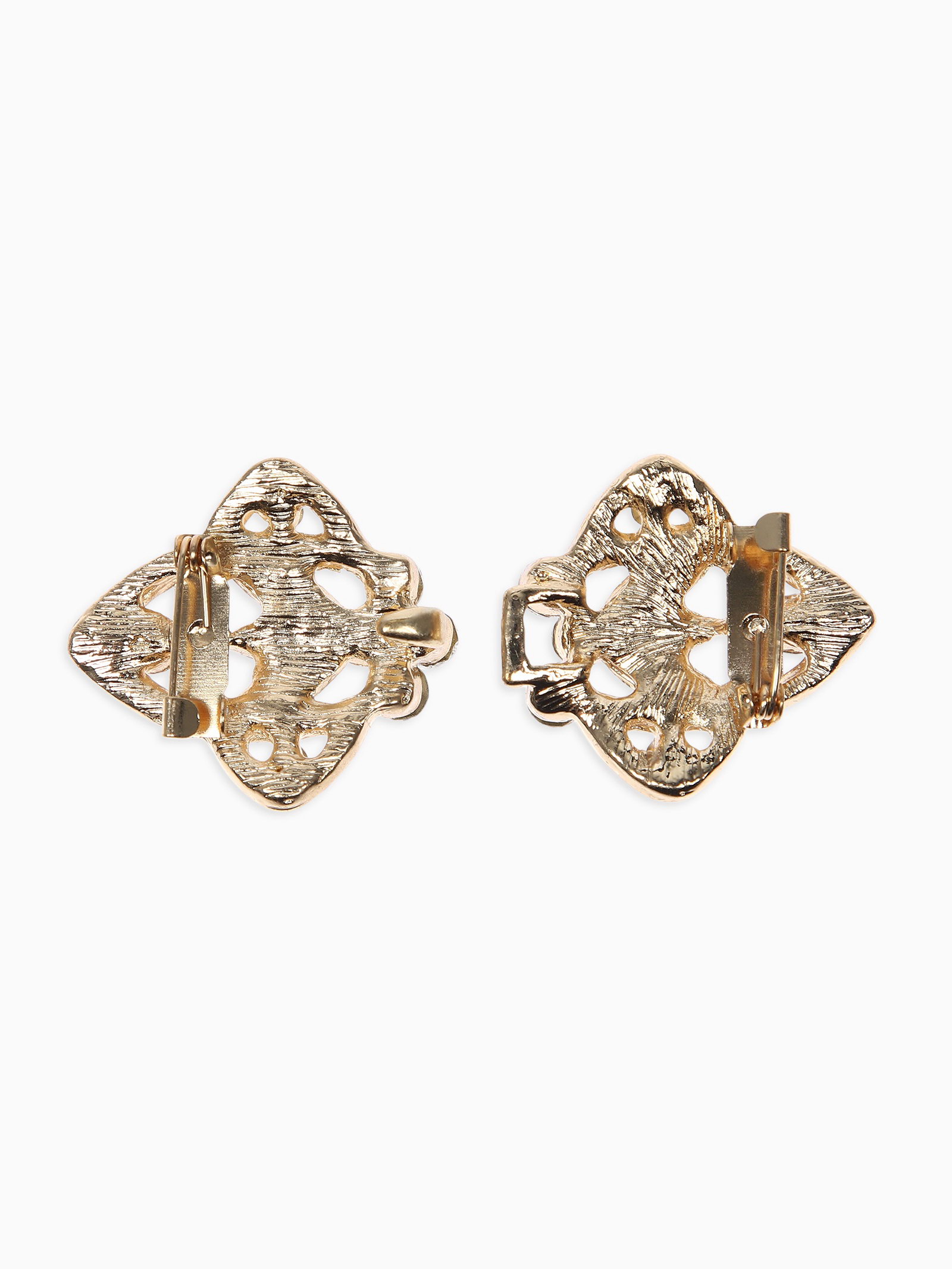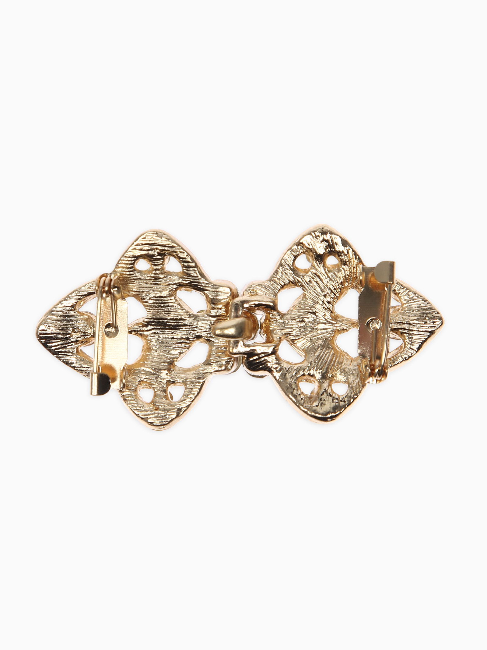 Зажим для кардигана "Ажур. Лепестки", белый в золоте, 2.7x5.5x0.5 см., QF, Китай
