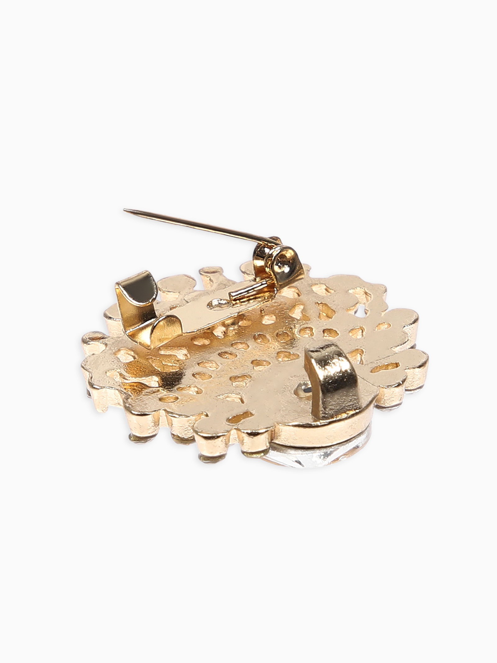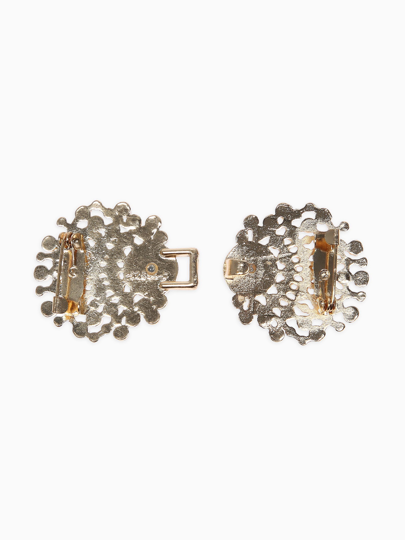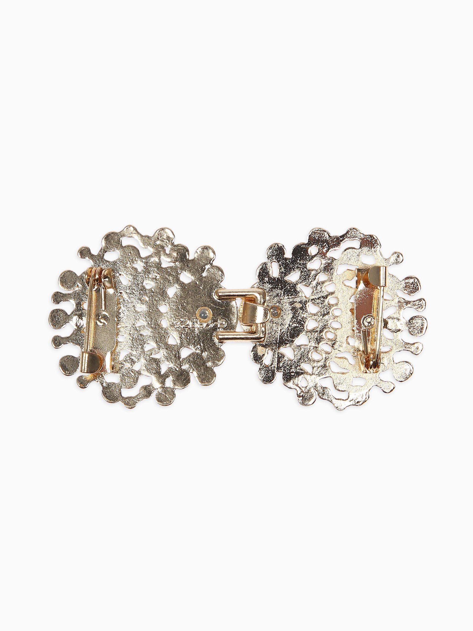 Зажим для кардигана "Ажур. Веер", белый в золоте, 2.8x5.6x0.5 см., QF, Китай