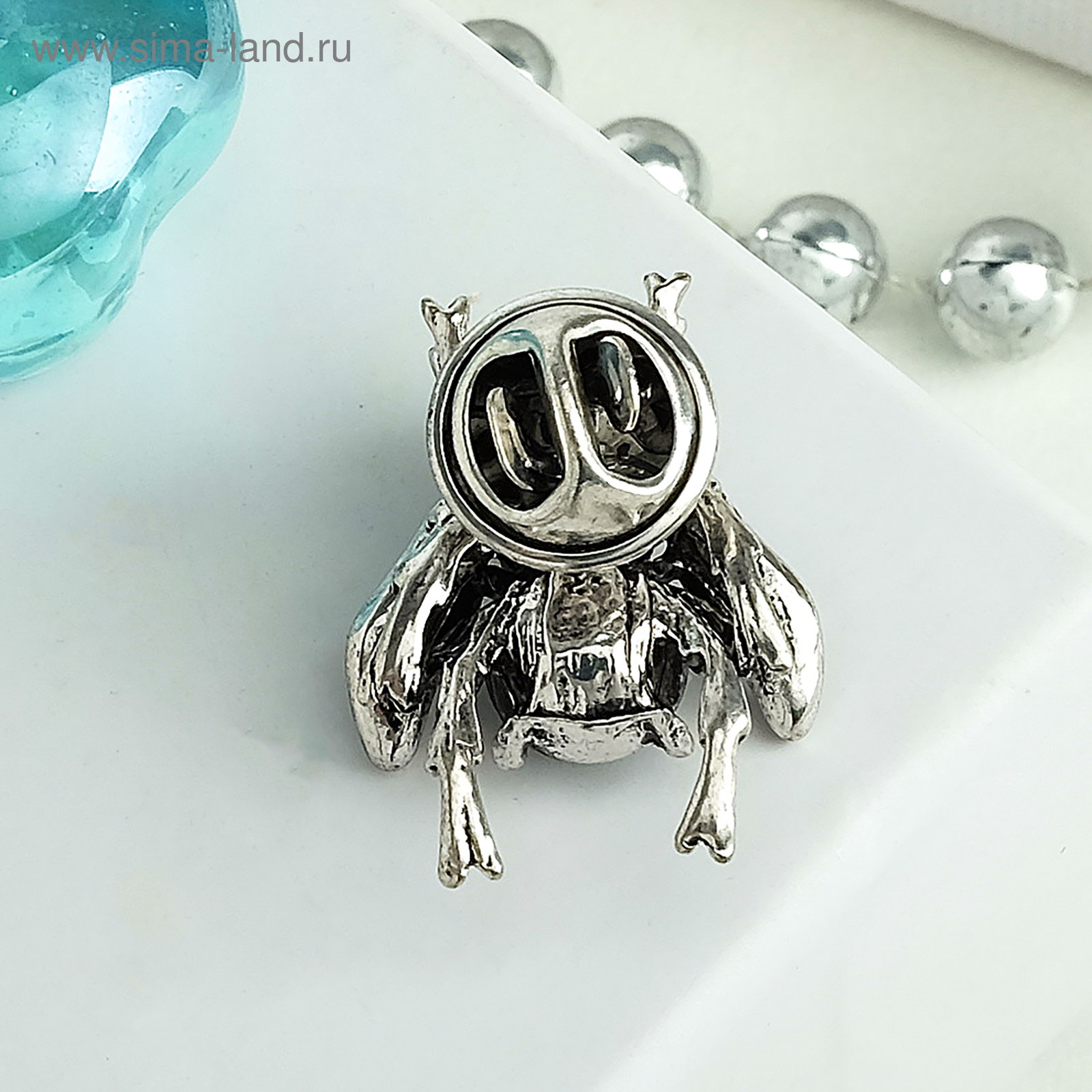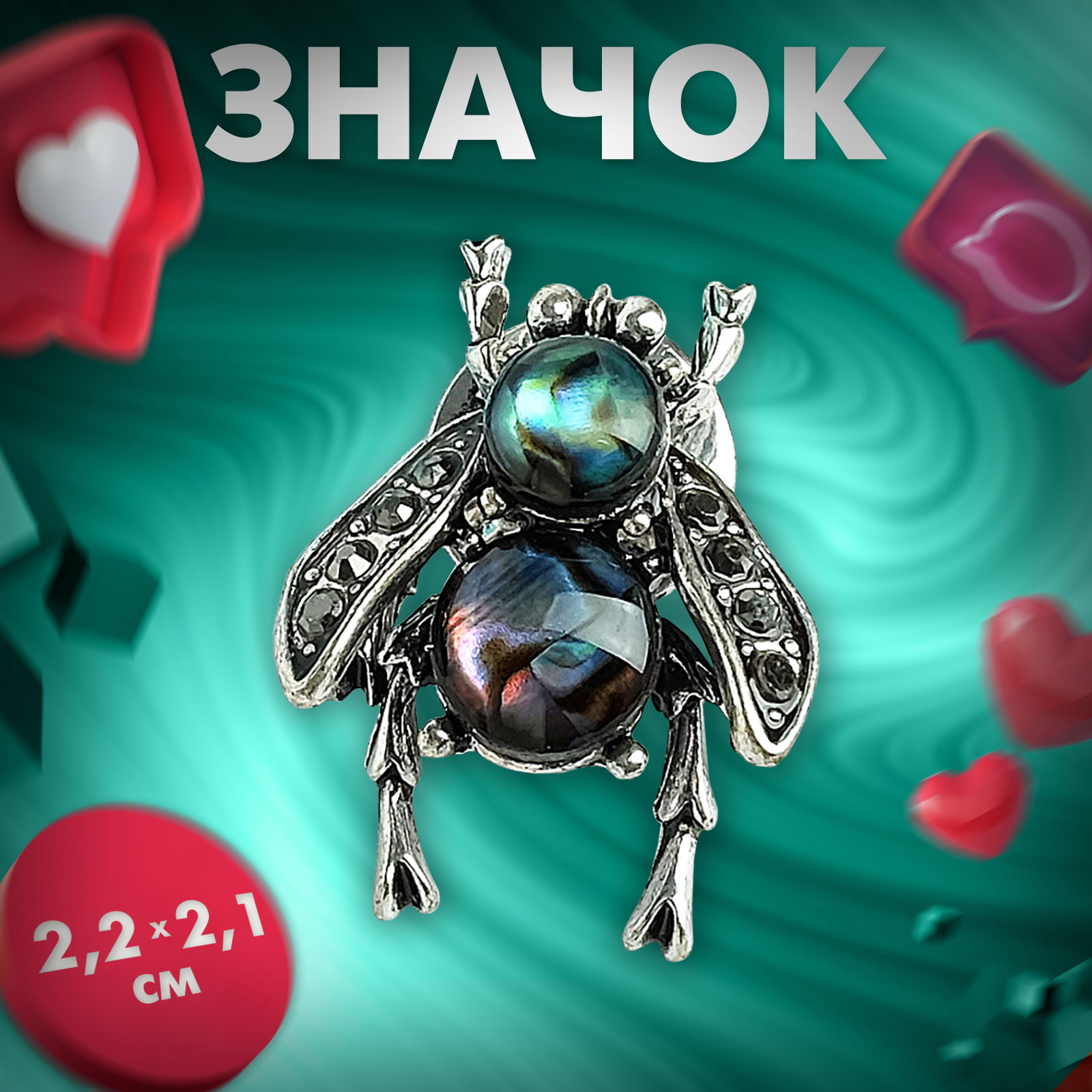 Значок "Галиотис" маленькая мушка, цвет зелёный в чернёном серебре, 2.1x2.2x0.3 см., Queen fair, Китай