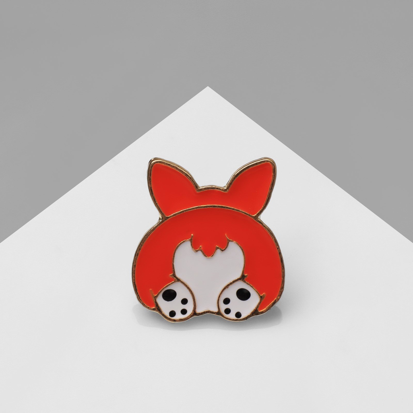 Значок "Собачка" корги, хвостик, цвет оранжево-белый в золоте, 2.5x3x0.5 см., QF, Китай
