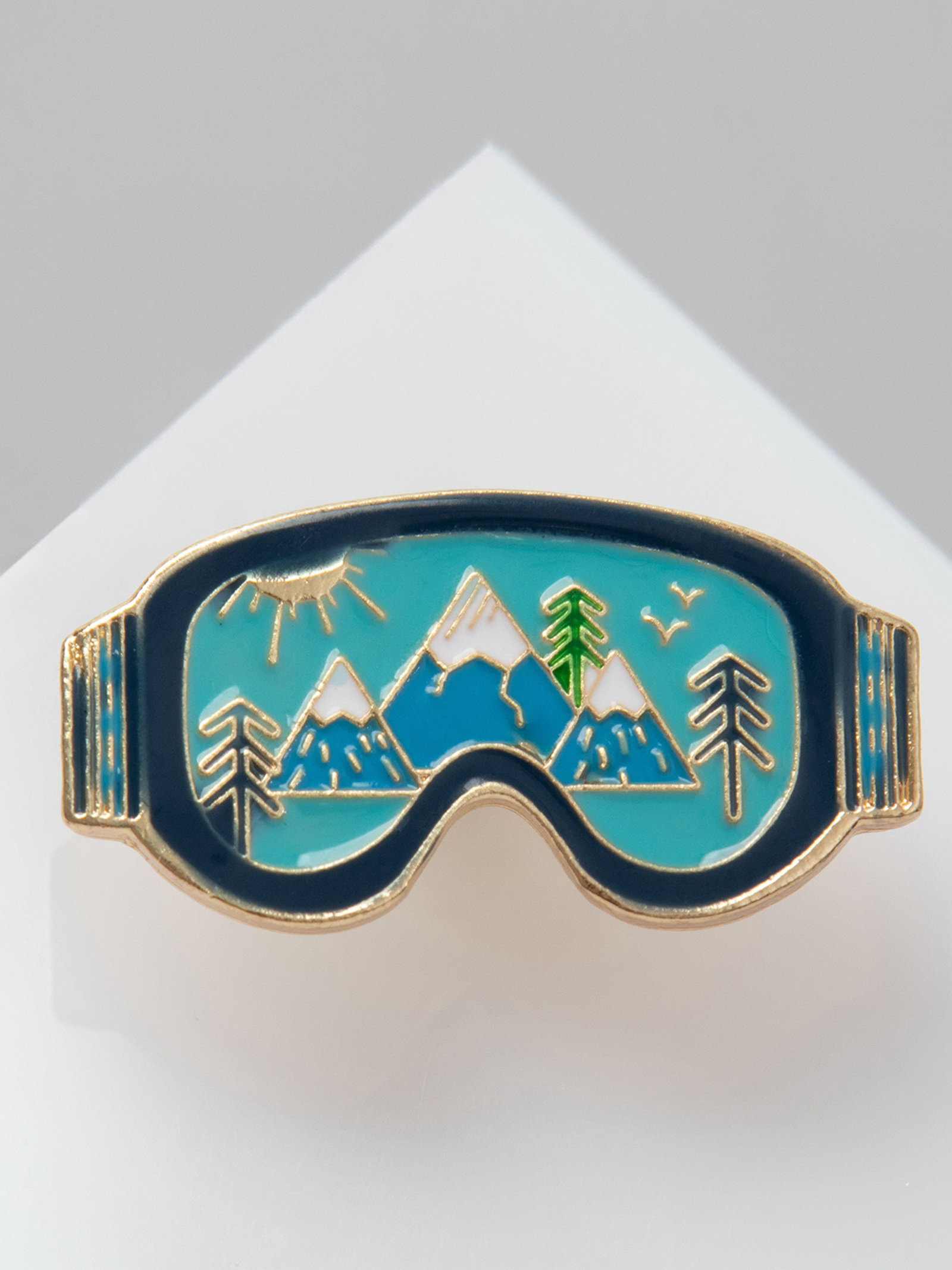 Значок "Очки сноубордиста" виды, цветной в золоте, 2.6x1.2x0.6 см., QF, Китай