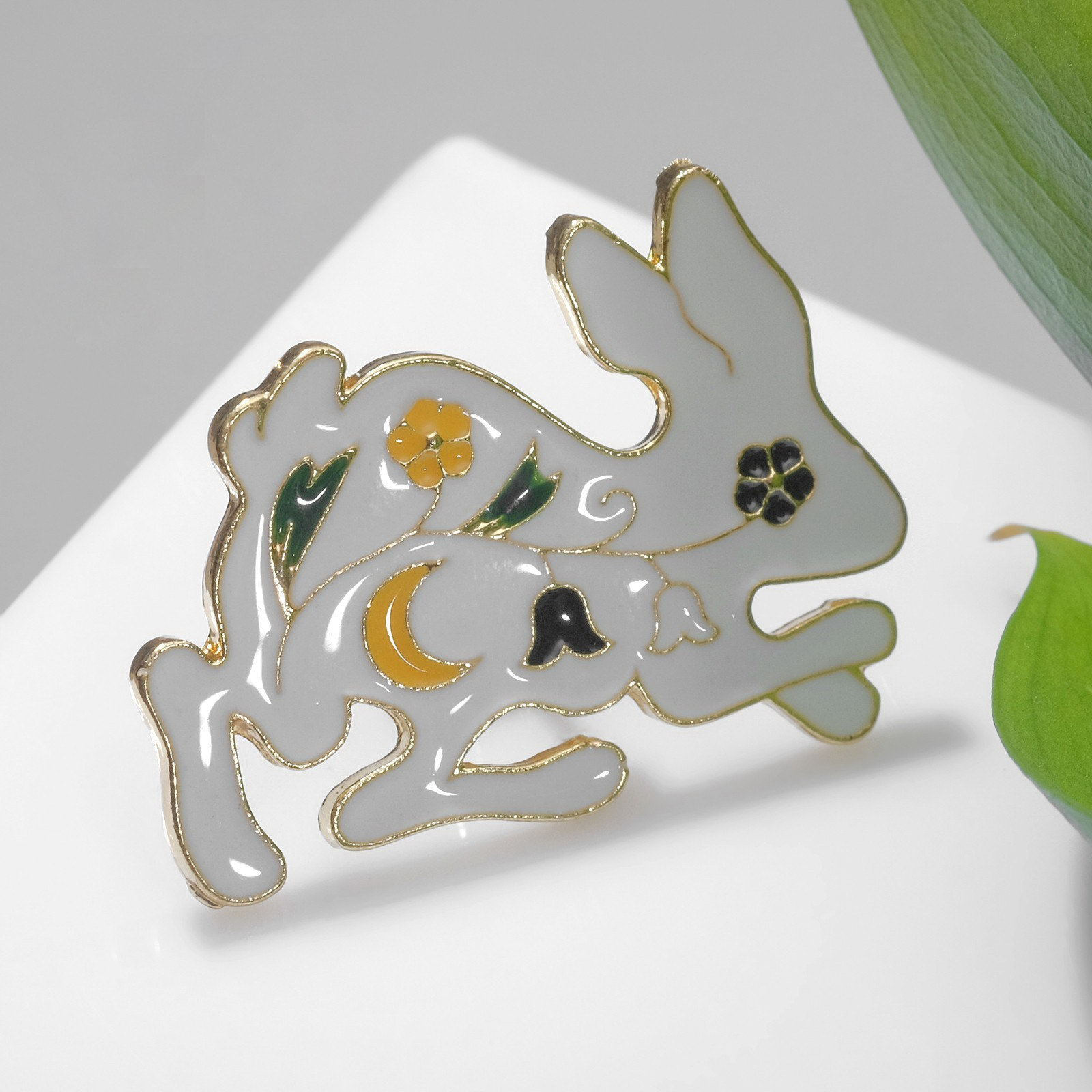 Значок "Заяц" цветочный, цвет белый в золоте, 3.3x2.5x1 см., Queen fair, Китай