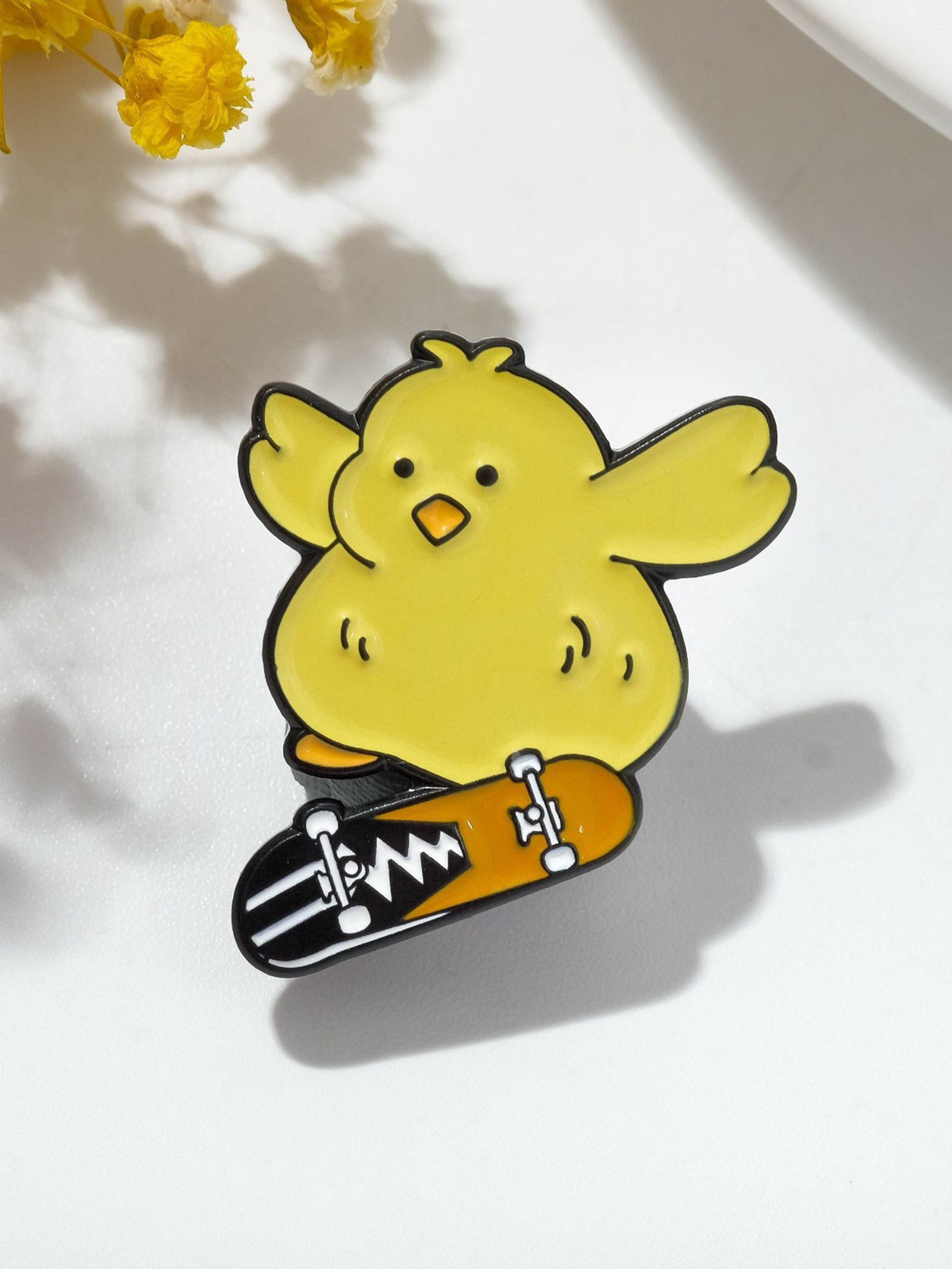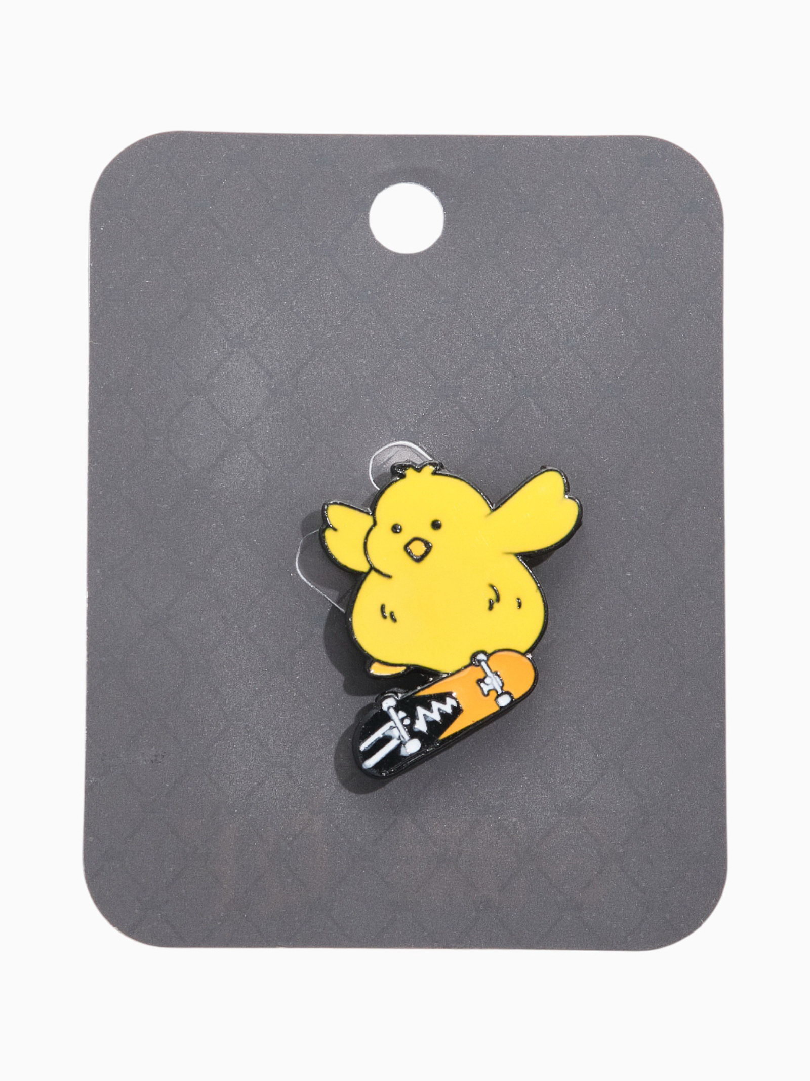 Значок "Цыплёнок" на скейте, цветной в чёрном металле, 2x2x1.5 см., QF, Китай