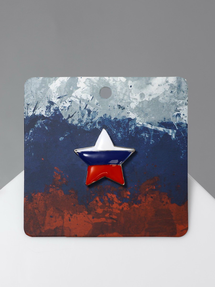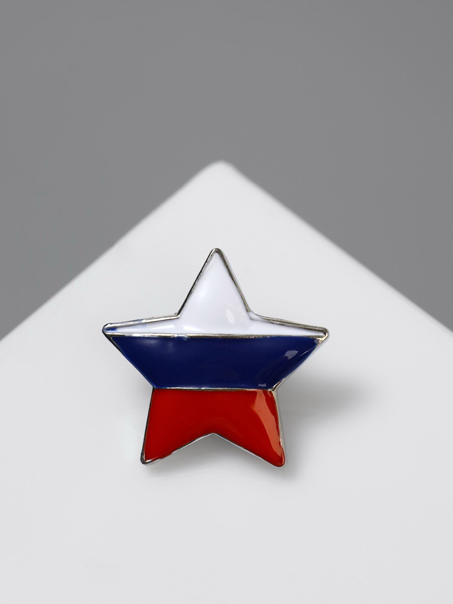 Значок "Звезда" с флагом России, цветной в серебре, 2.5x2.5x0.5 см., Queen fair, Китай
