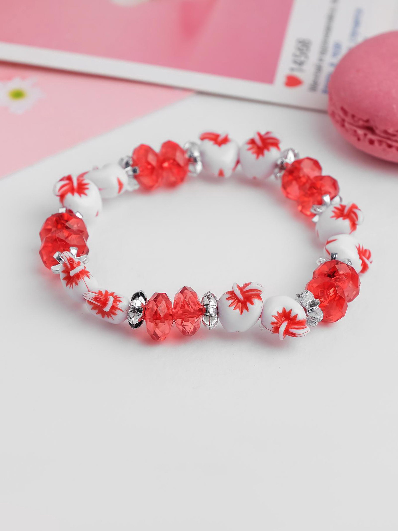 Браслет яблочки, красный, d=6 см, 1x6x0.5 см., Выбражулька, Китай