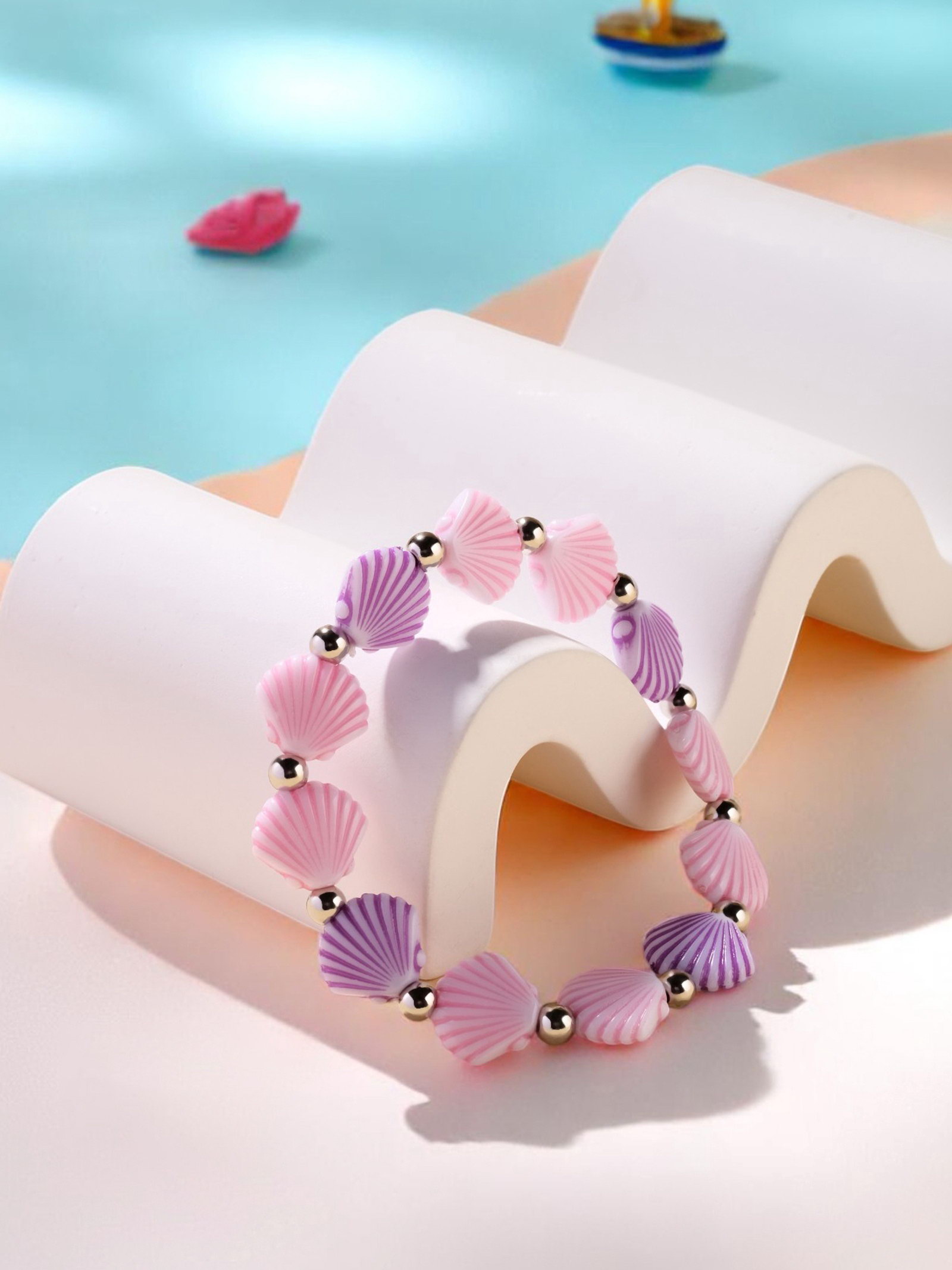 Браслет детский "Ракушка", d=6.5 см розово-фиолетовый, 1x6.5x1 см., Выбражулька, Китай