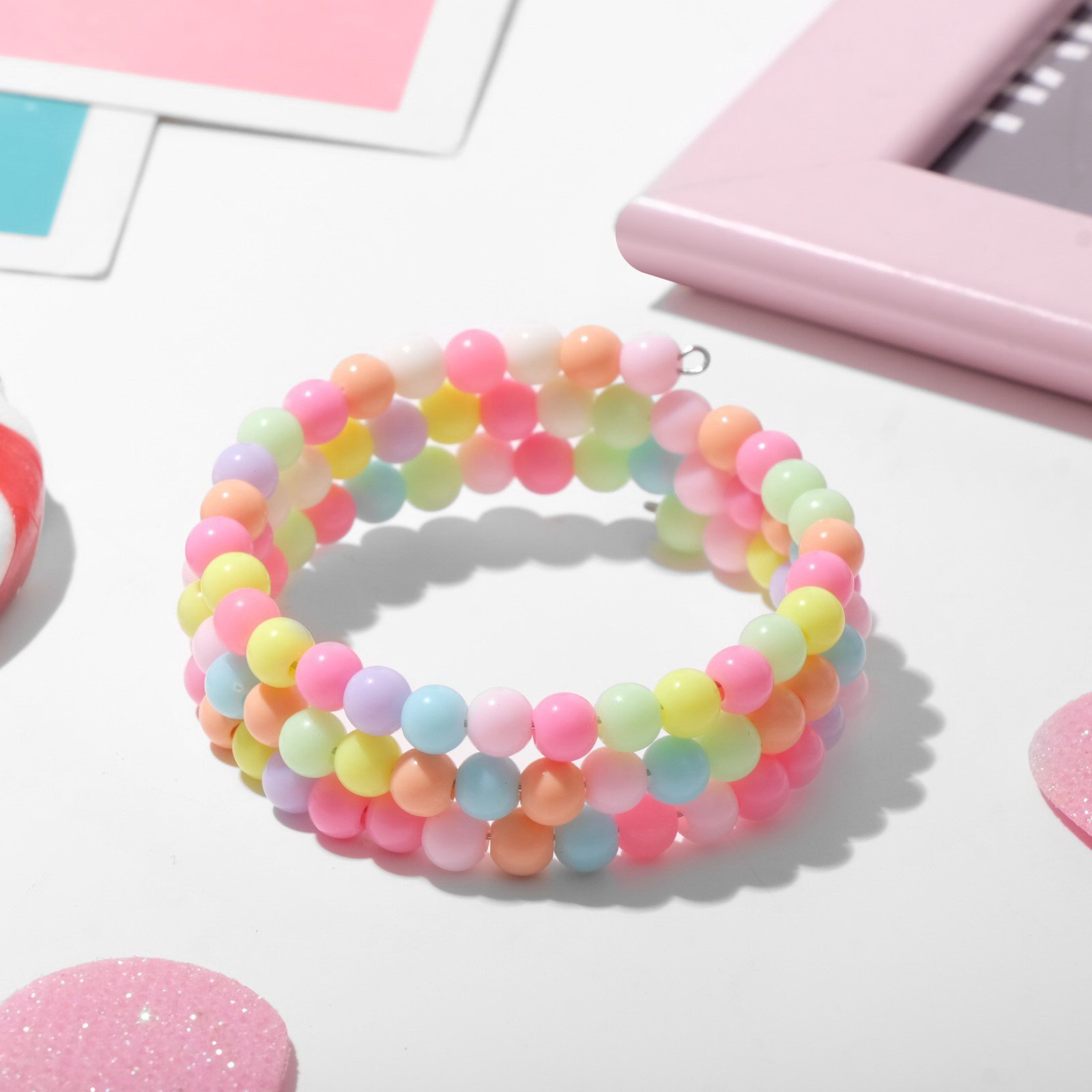 Браслет-пружинка детский бусинки, три ряда, цветной, 0.6x6x2 см., Выбражулька, Китай