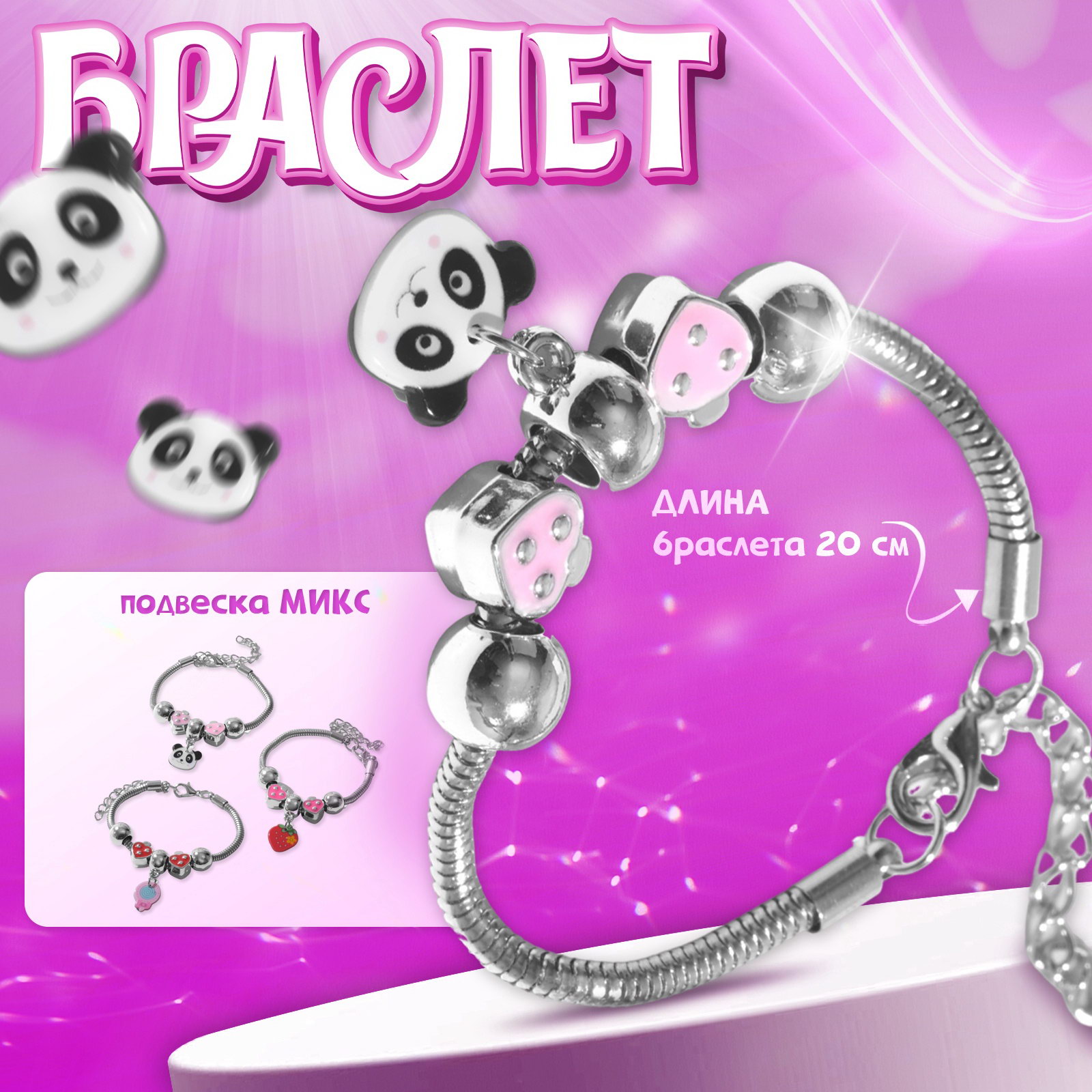 Вид: Браслет, Браслет с шармами Размер упаковки: 5 x 1 x 12 см. Набор: Нет Вставка/Подвеска: Металл Цвет: Серебристый Цвет фурнитуры: Серебряный Для кого: Для девочки Вид застёжки: Карабин tnved: 7117190000 Количество нитей: 1 Детский браслет стильный и яркий аксессуар, который добавит изюминку образу вашего ребенка. Выполнен из гипоаллергенных материалов, безопасных для детской кожи, и доступен в различных цветах и дизайнах, что позволяет подобрать браслет под настроение или любимую одежду маленького модника. Браслет имеет удобную застежку, которая легко регулируется, обеспечивая комфортное ношение в течение всего дня. Прочный и износостойкий, он выдержит активные игры и повседневные приключения. Этот аксессуар станет отличным дополнением как для повседневных, так и для праздничных нарядов, привнося радость и положительные эмоции в детский гардероб. Подходит как для мальчиков, так и для девочек. Такой браслет это не только украшение, но и способ выразить индивидуальность вашего ребенка! | ||