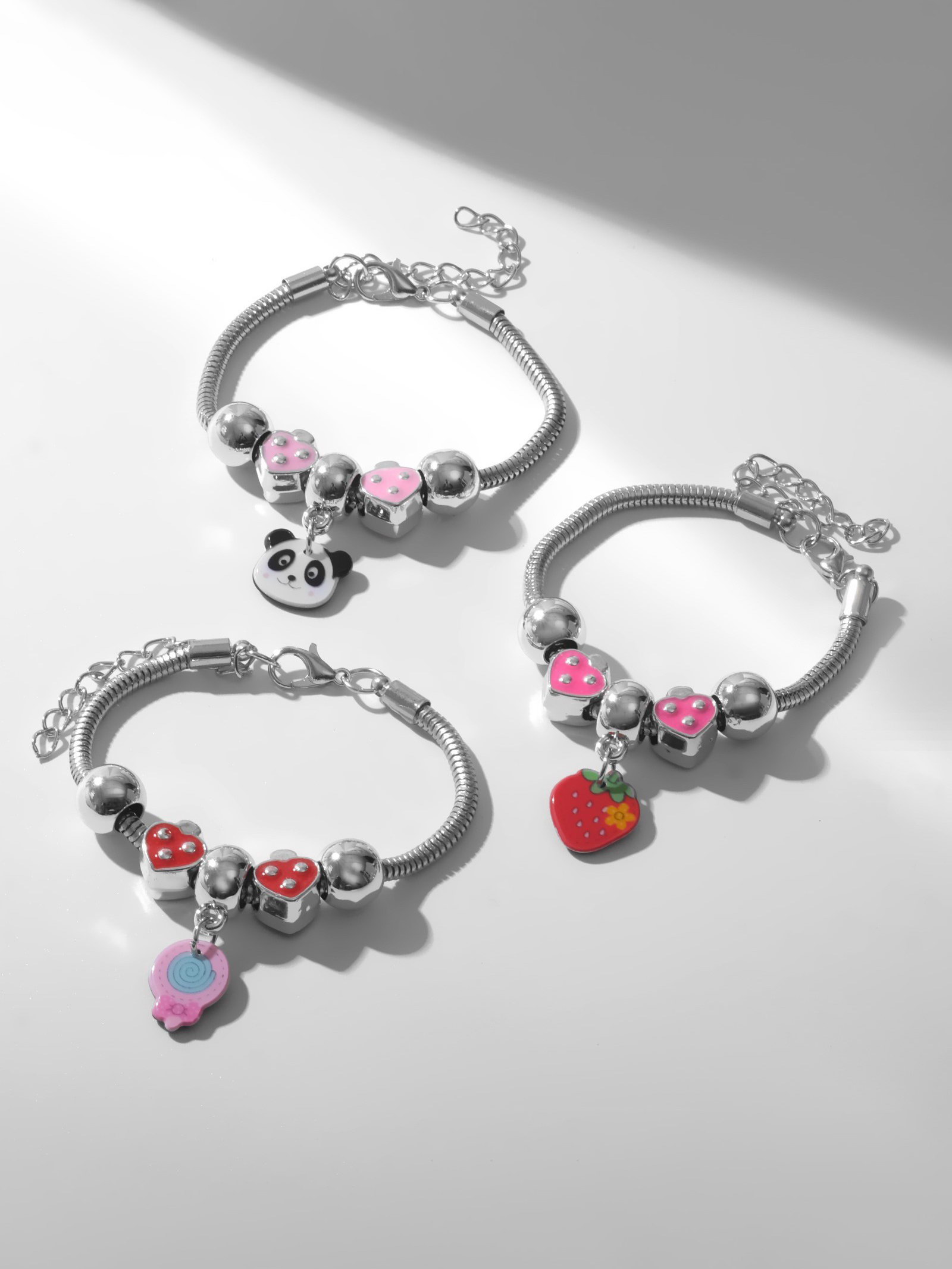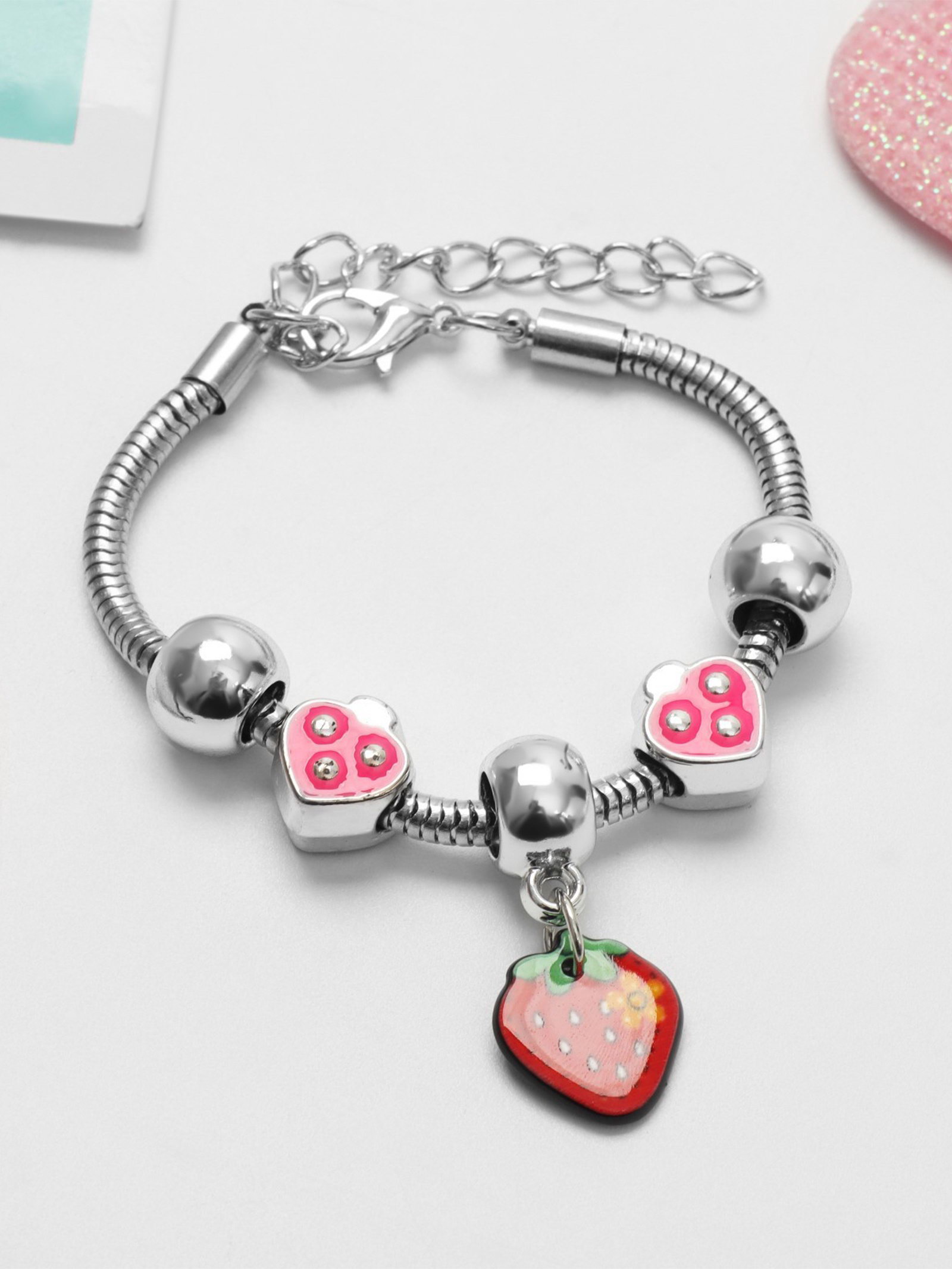 Браслет детский сердечки, подвеска МИКС, цветной в серебре, 3x20x1 см., Выбражулька, Китай
