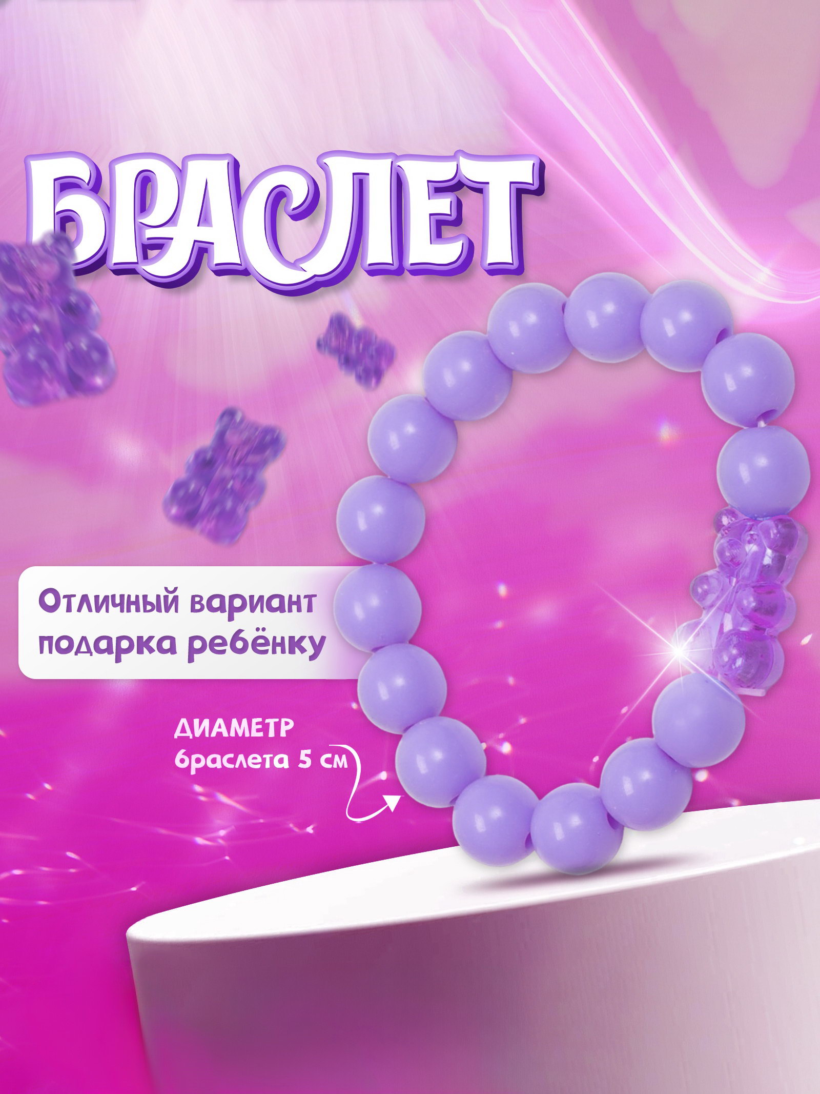 Браслет детский мармеладный мишка, цвет матовый фиолетовый, 2x5x1 см., Выбражулька, Китай