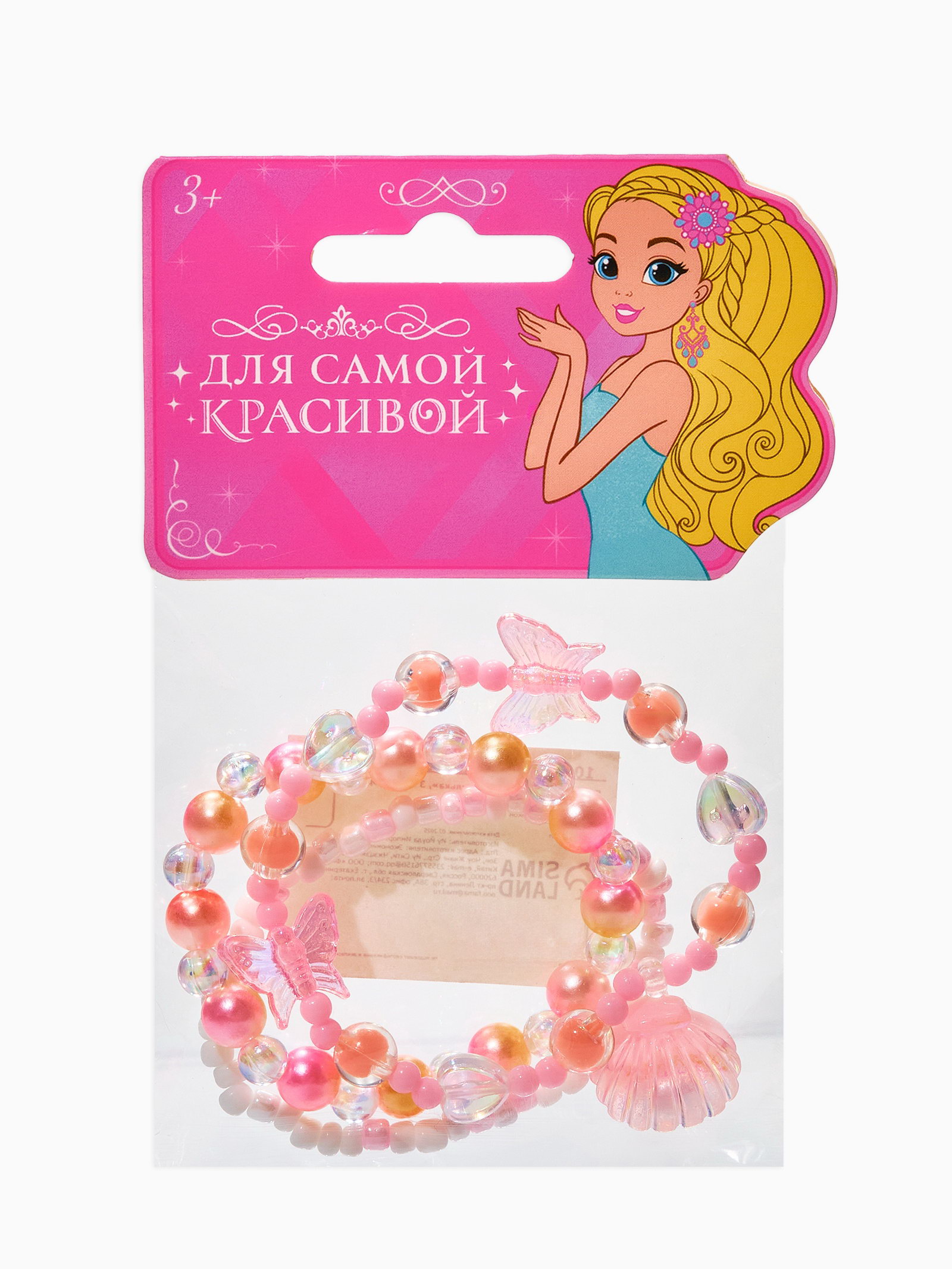 Браслет детский 3 шт. набор, жемчужина желаний, розовый, 2x5.5x1.8 см., Выбражулька, Китай