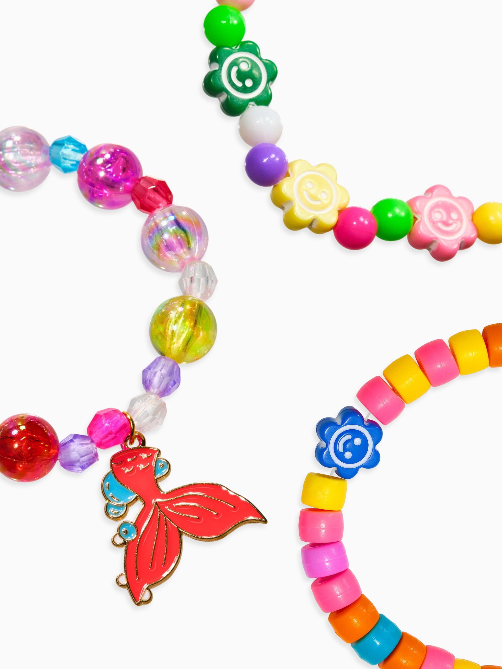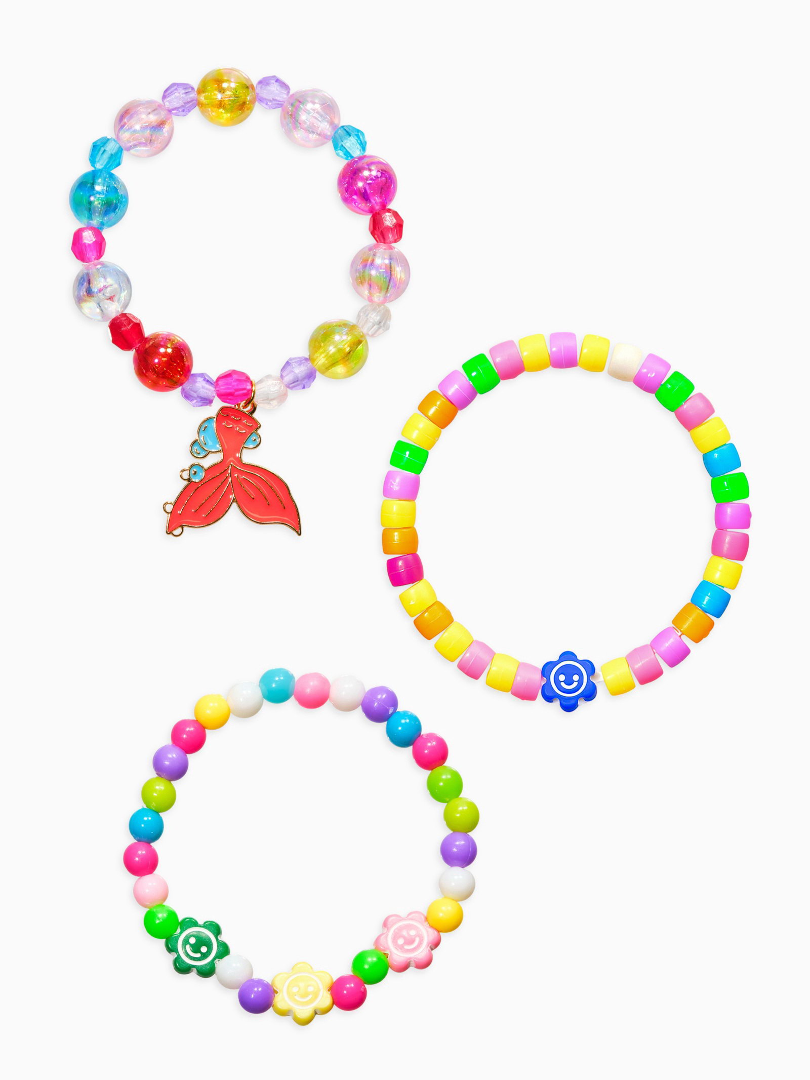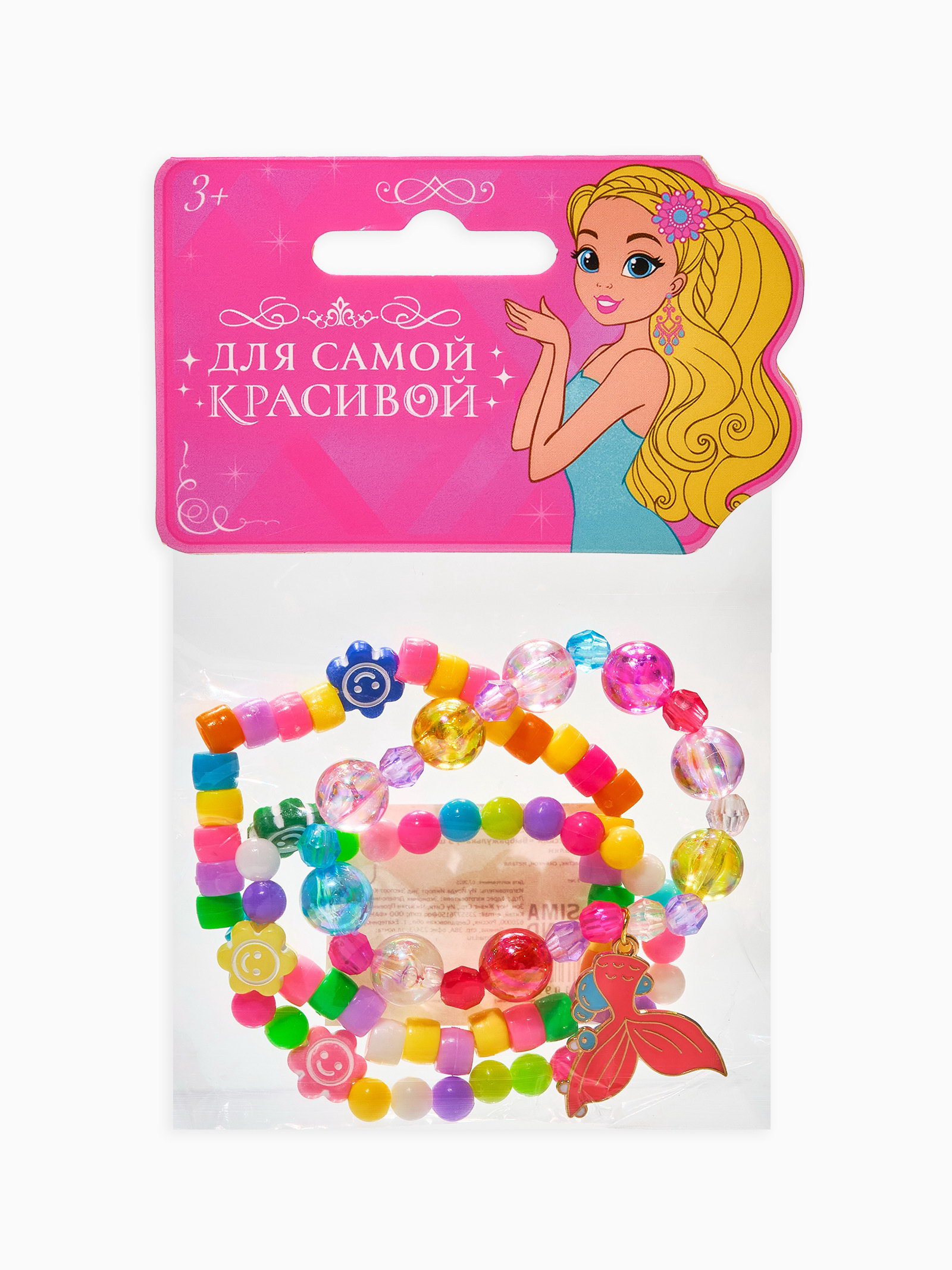 Браслет детский 3 шт. набор, хвост русалки, бусины, цветной, 3x5.5x2.2 см., Выбражулька, Китай