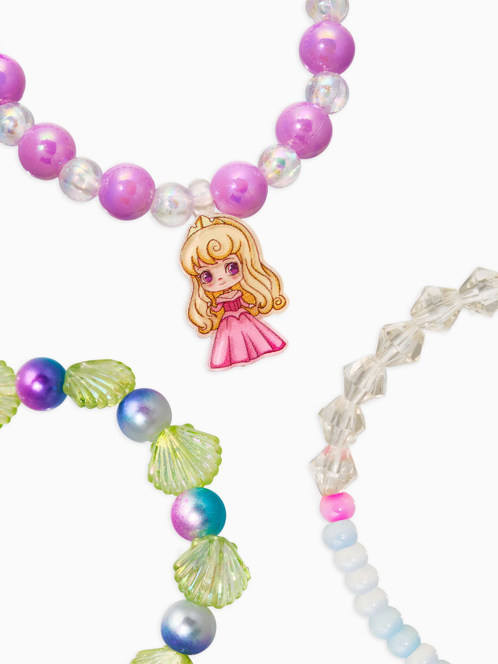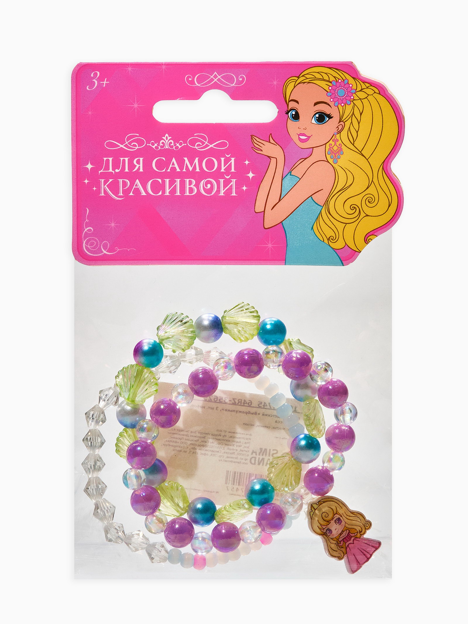 Браслет детский 3 шт. набор, принцесса, бусины, цветной, 3x5.5x1.5 см., Выбражулька, Китай