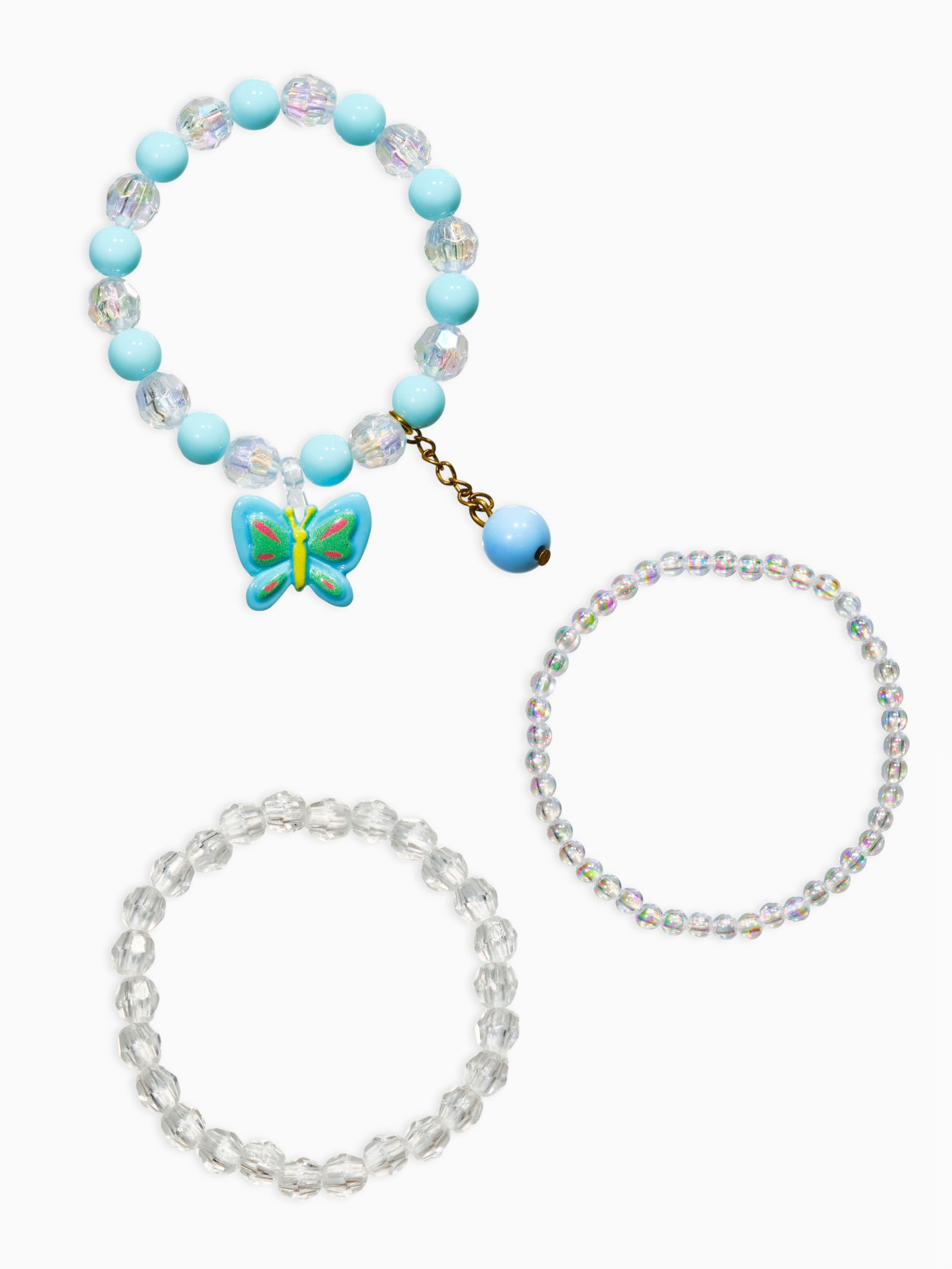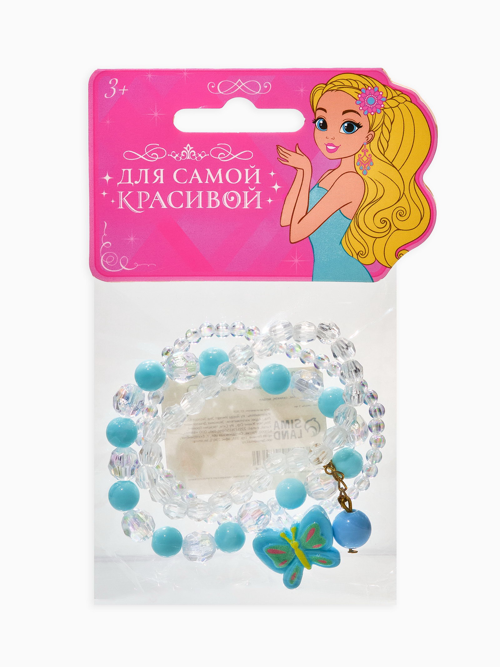 Браслет детский 3 шт. набор, бабочка с подвеской, бусины, цветной, 3.5x5.5x0.8 см., Выбражулька, Китай