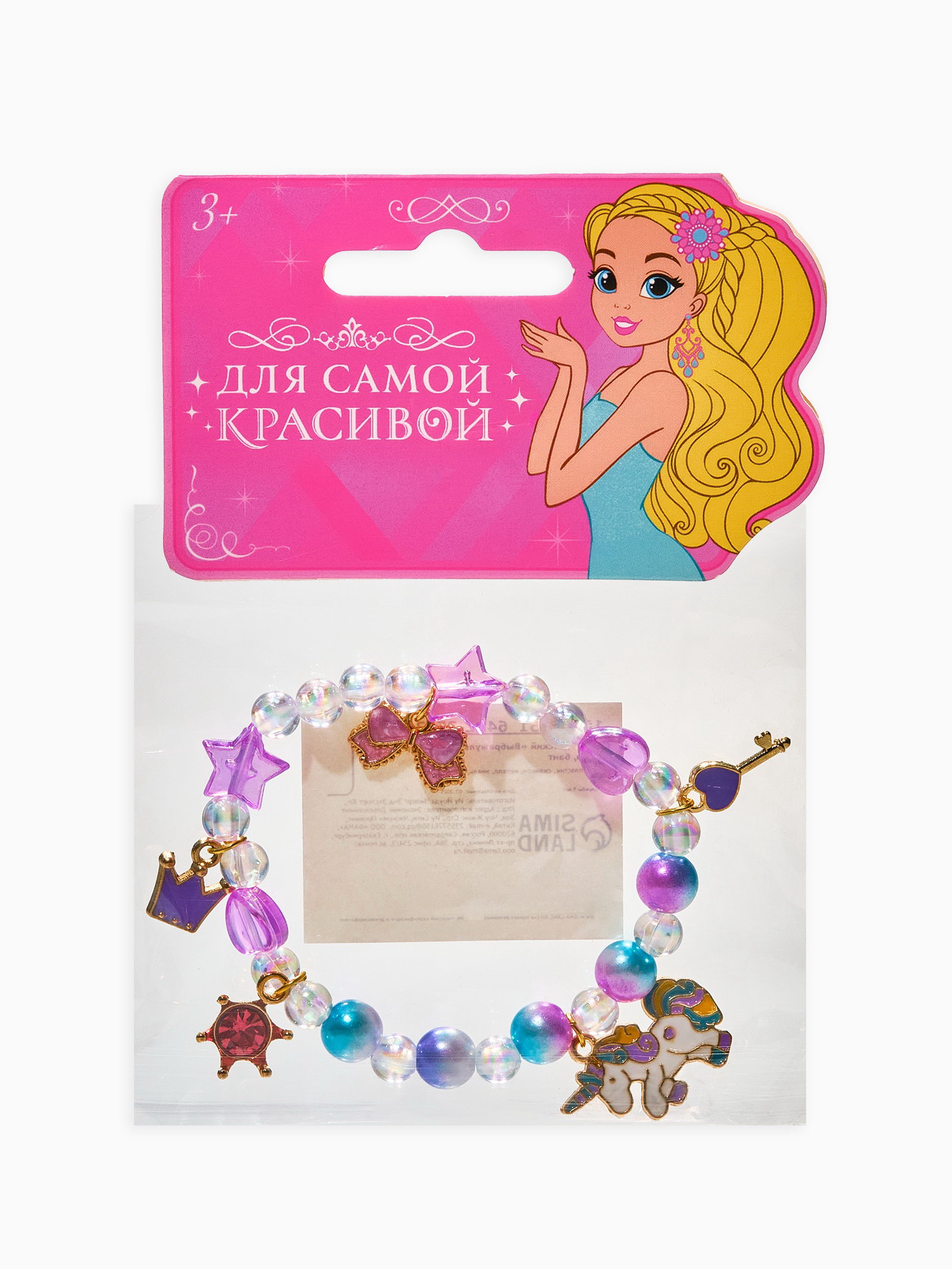 Браслет детский единорог, корона, бант, цветной, 2x5.5x2.5 см., Выбражулька, Китай