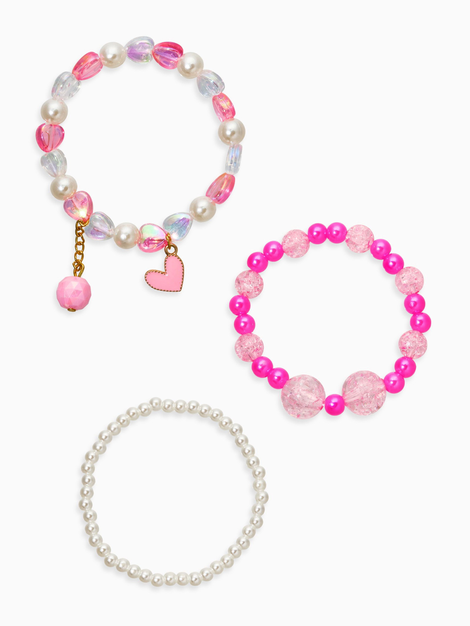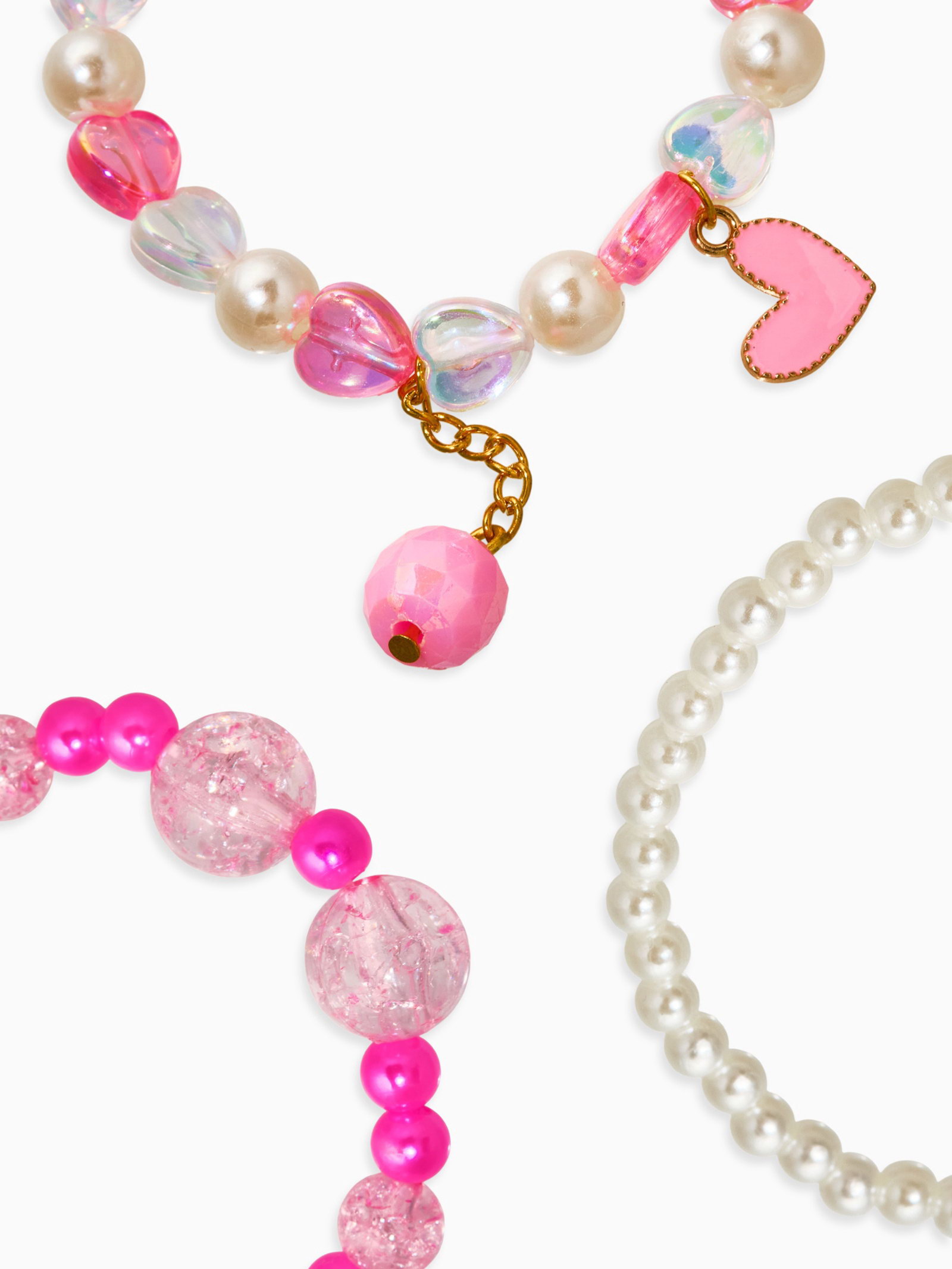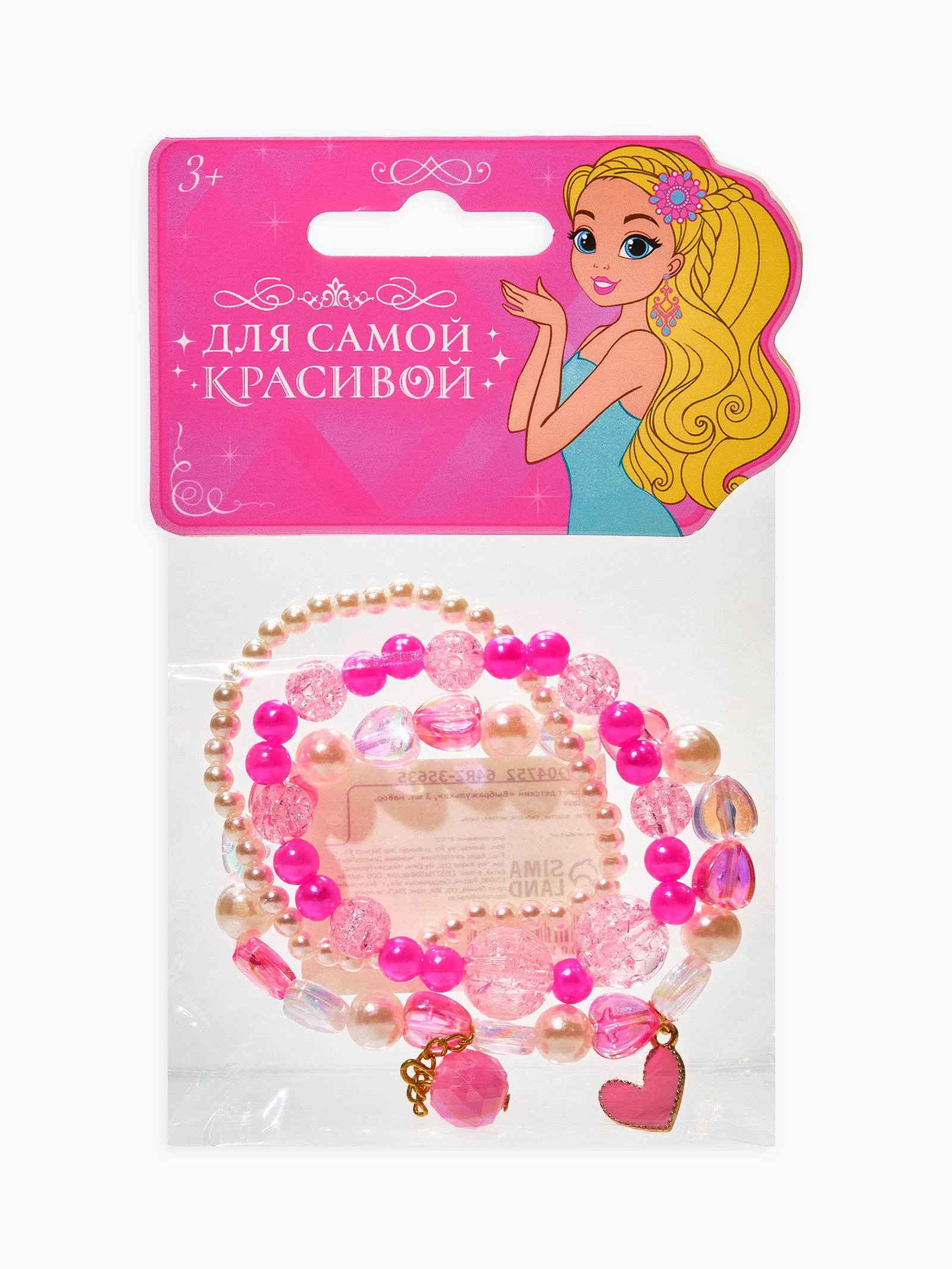 Браслет детский 3 шт. набор, сердце с подвеской, жемчуг, цветной, 5x5.5x1.2 см., Выбражулька, Китай