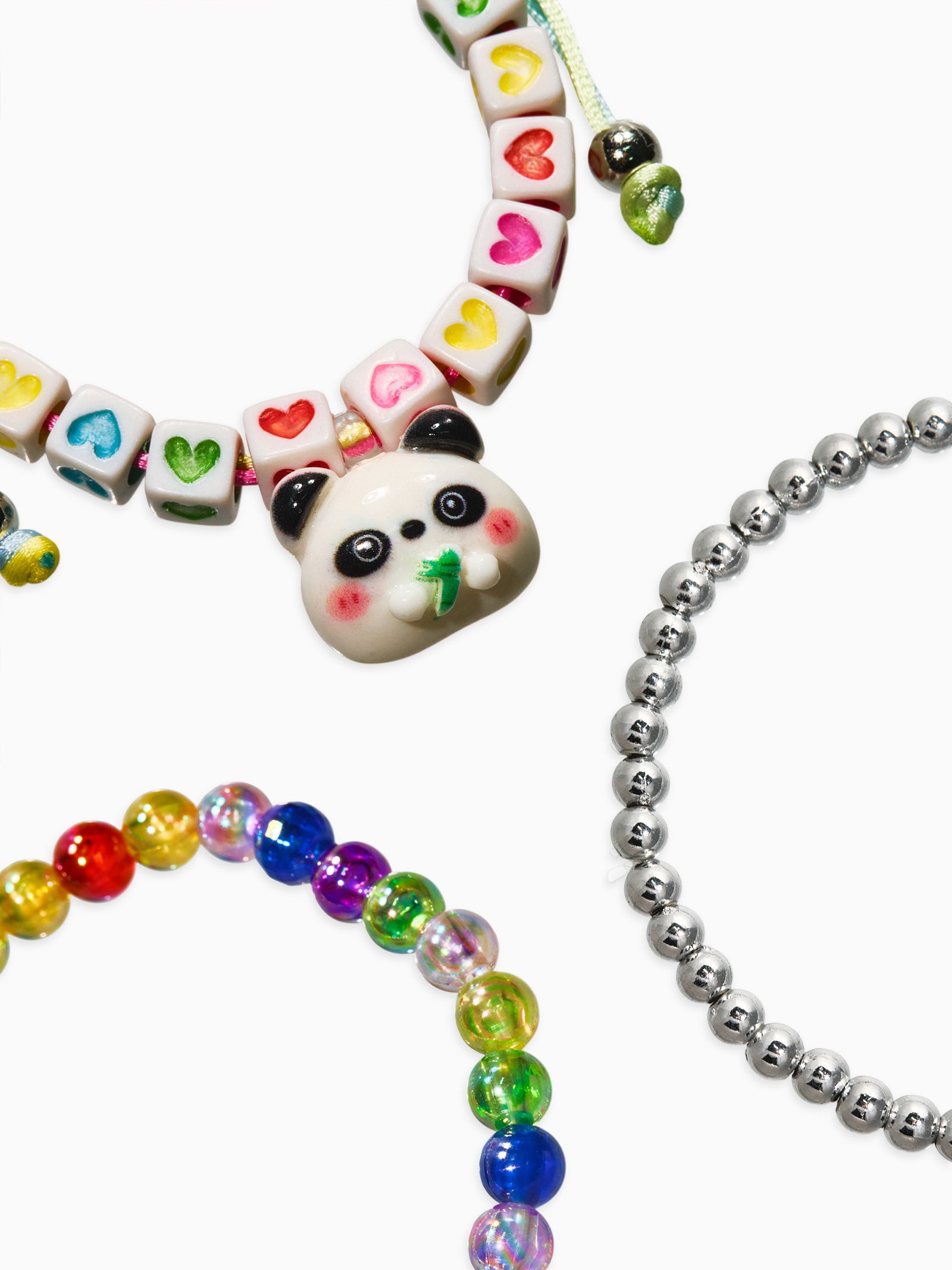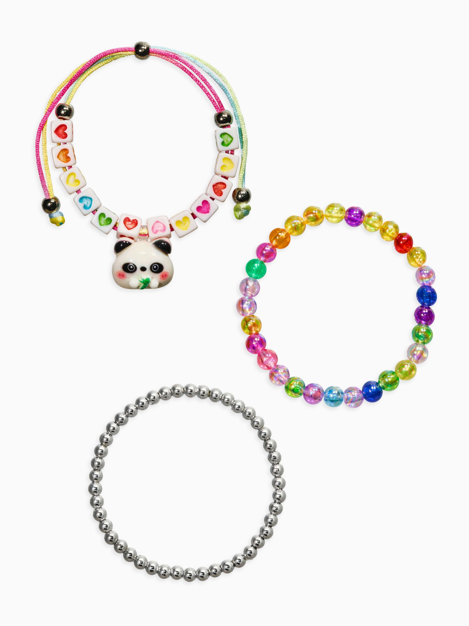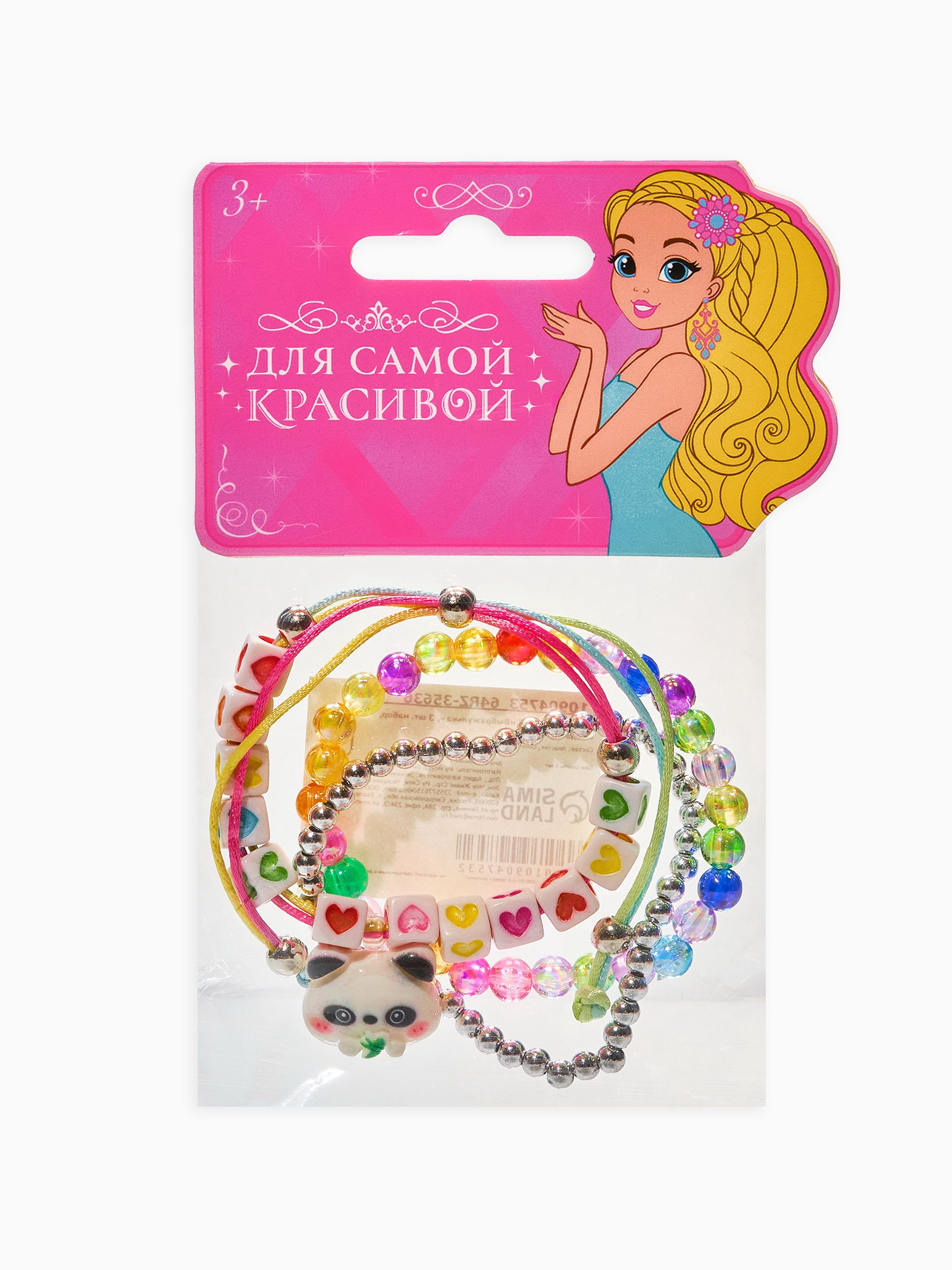 Браслет детский 3 шт. набор, панда, бусины, цветной, 3x5.5x1.5 см., Выбражулька, Китай
