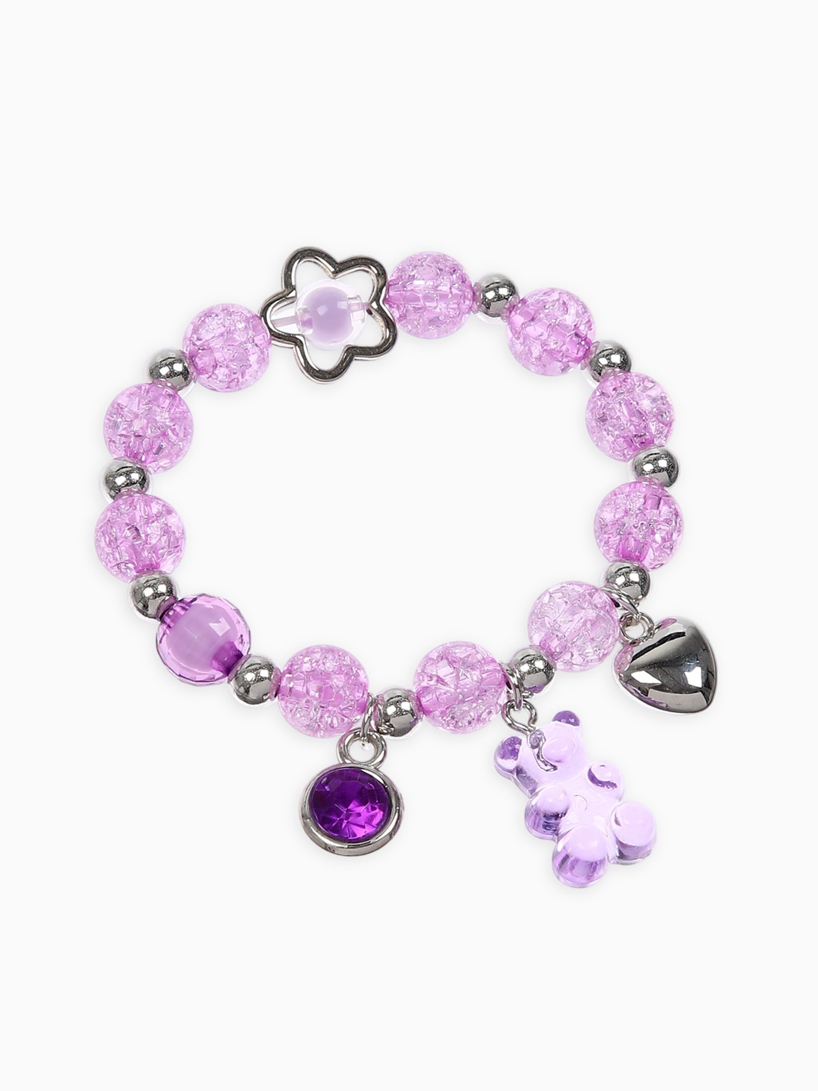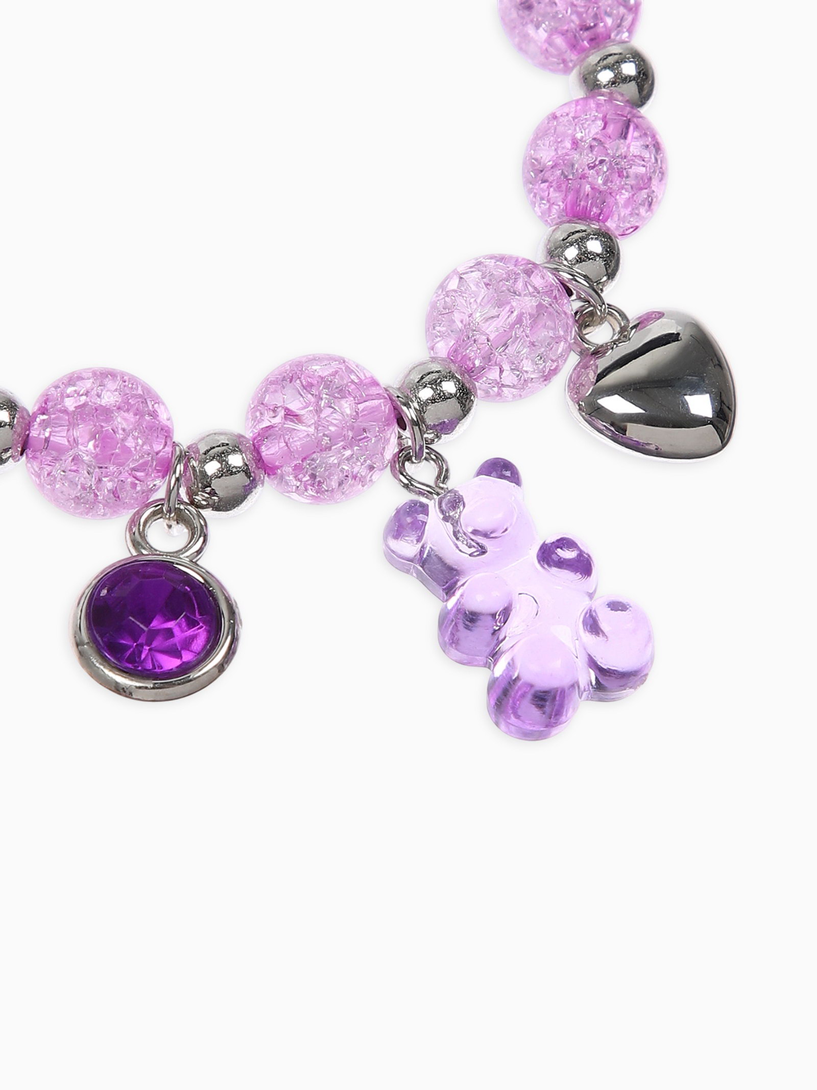 Браслет детский мармеладный мишка, сердце, d=6 см сиреневый в серебре, 0.5x6x0.5 см., Выбражулька, Китай
