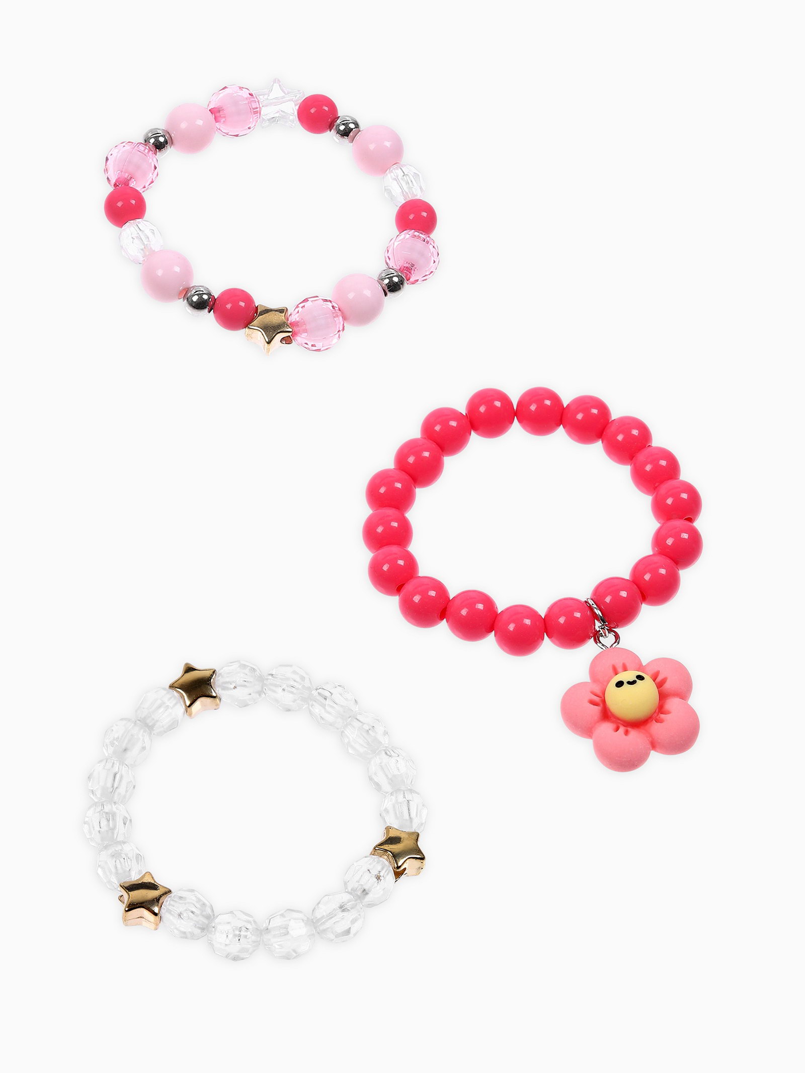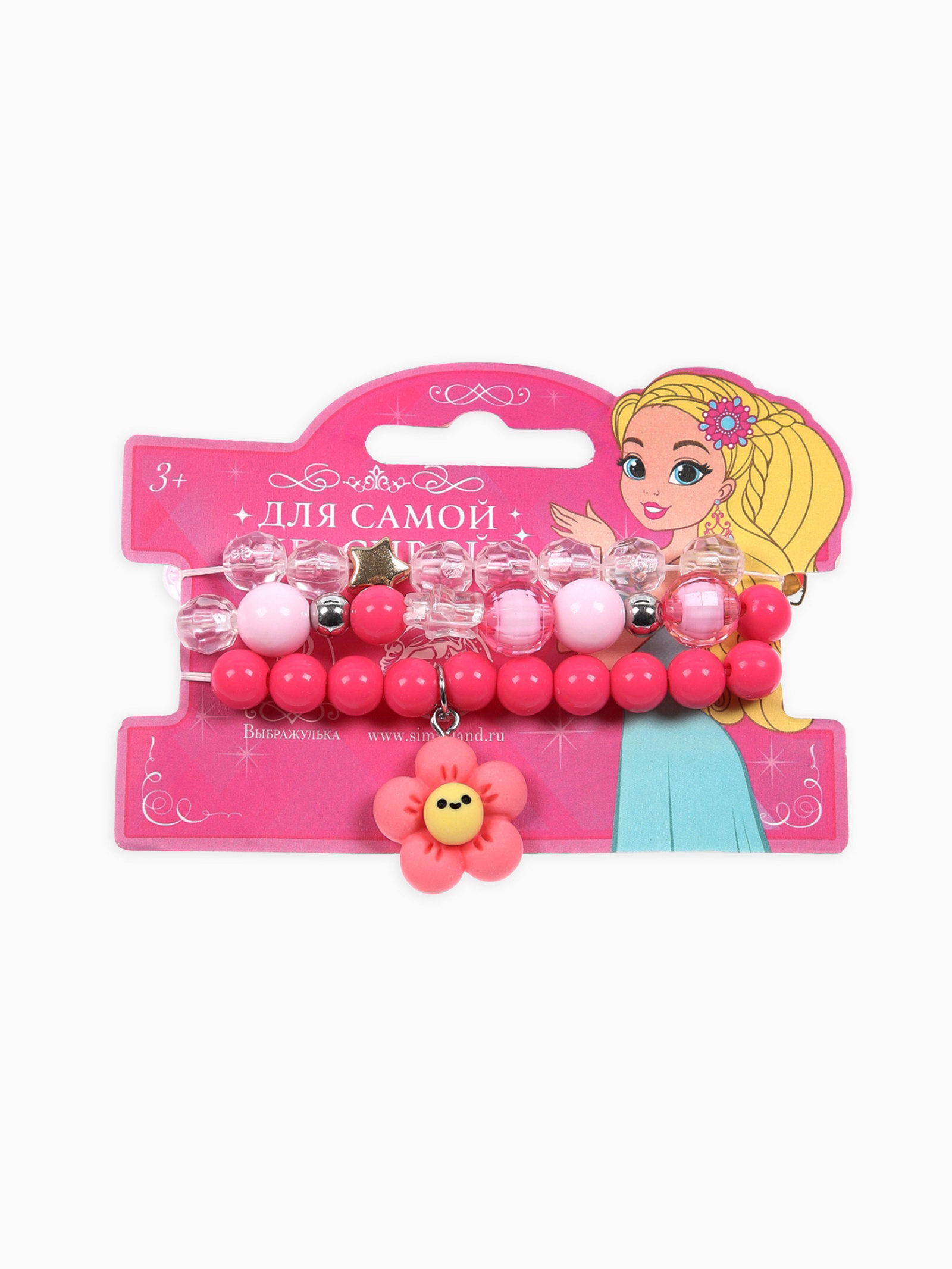 Набор браслетов детский "Цветок" 3 шт. d=6 см бело-розовый, 0.5x6x0.5 см., Выбражулька, Китай
