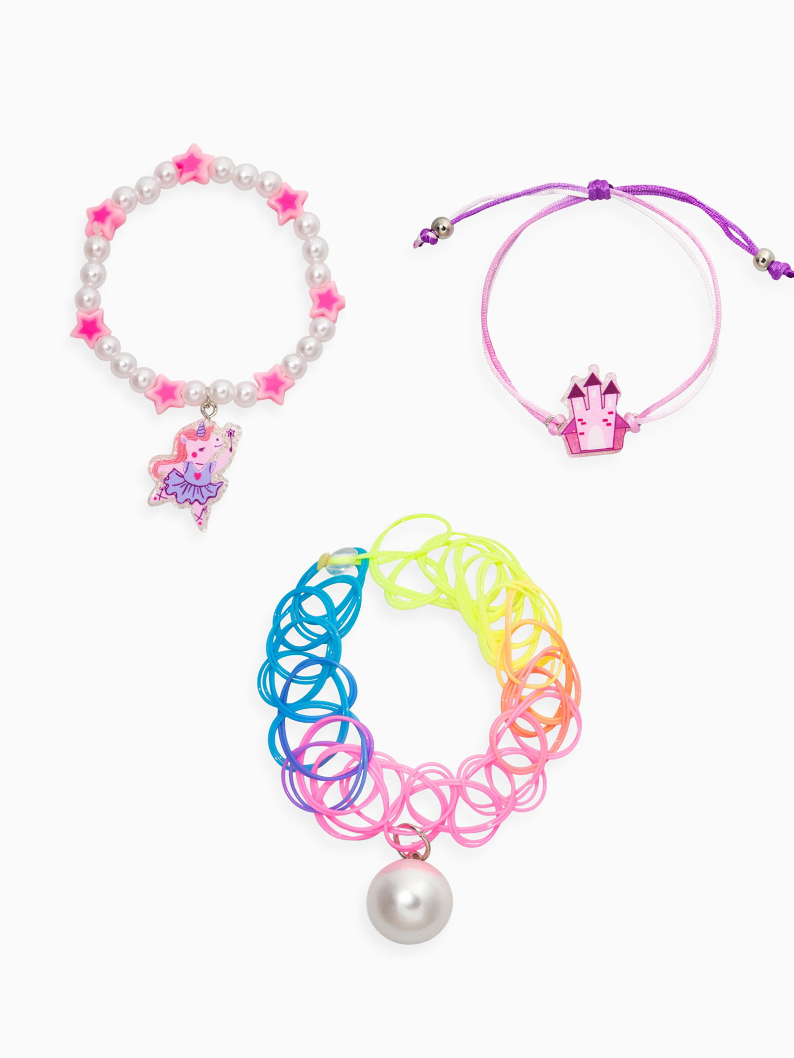 Набор детских браслетов "Выбражулька. Замок и Единорог", 3 шт. силиконовый, разноцветный, Выбражулька, Китай