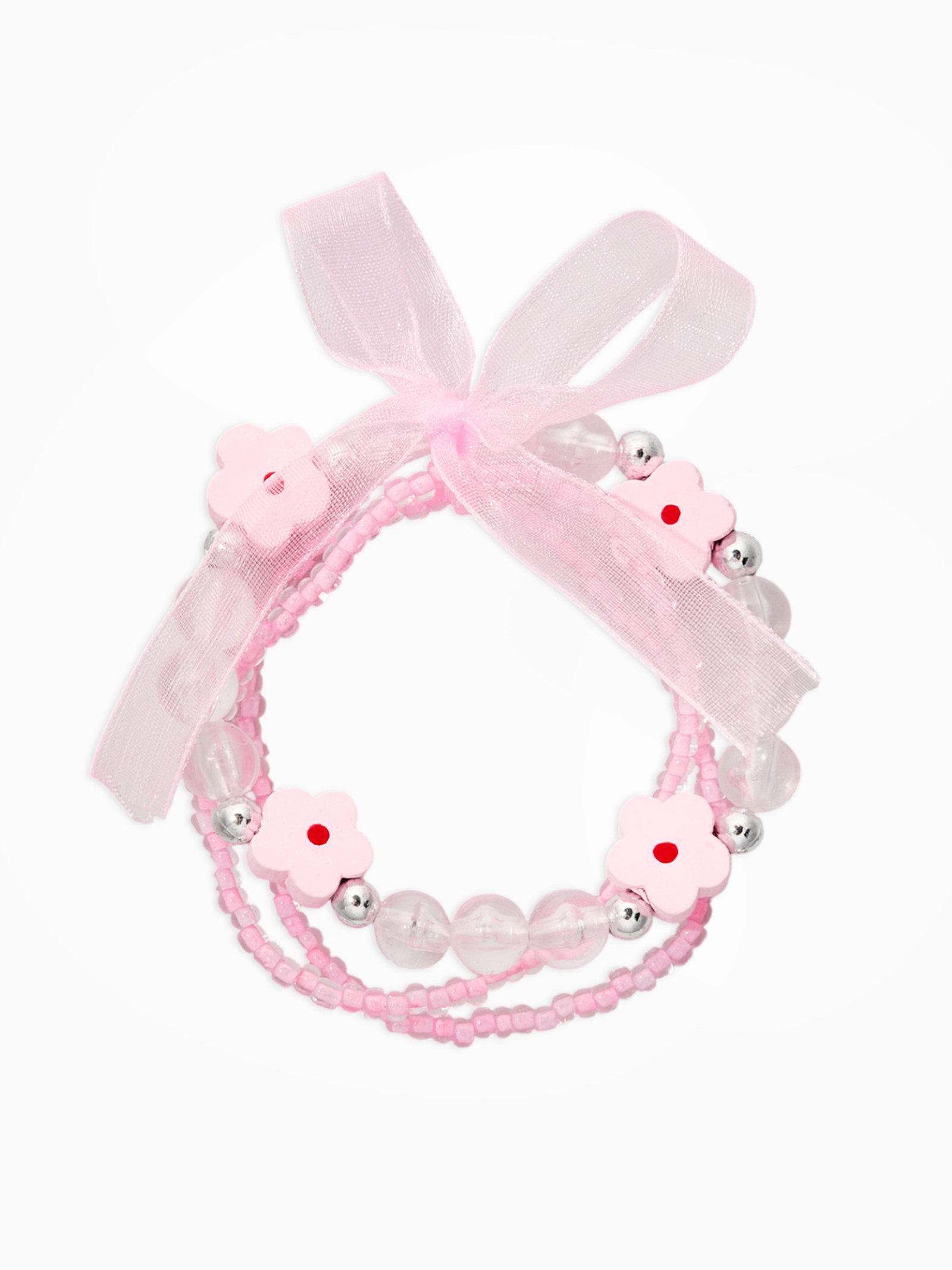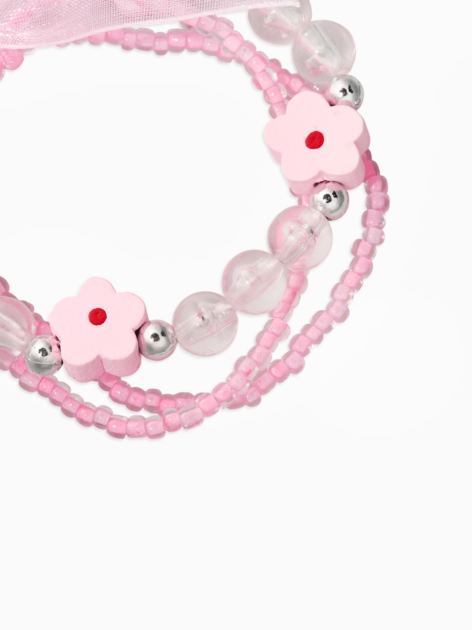 Набор детских браслетов 3 шт. с бантом, цветок, d=6 см бело-розовый, 1x6x1 см., Выбражулька, Китай