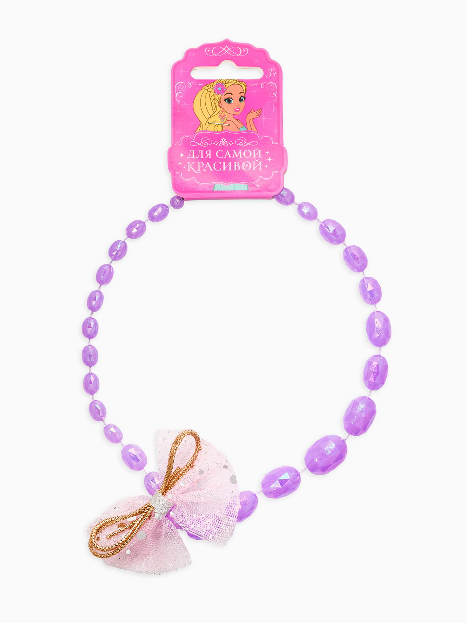 Бусы детские "Бант", граненые бусины, 40 см, цвет сиреневый, 6.5x20x1.5 см., Выбражулька, Китай