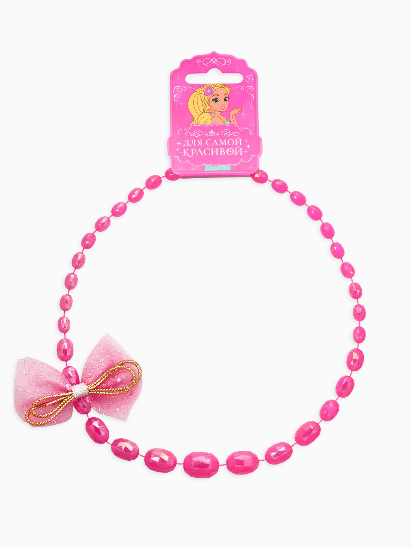 Бусы детские "Бант", граненые бусины, 40 см, цвет розовый, 6.5x20x1.5 см., Выбражулька, Китай