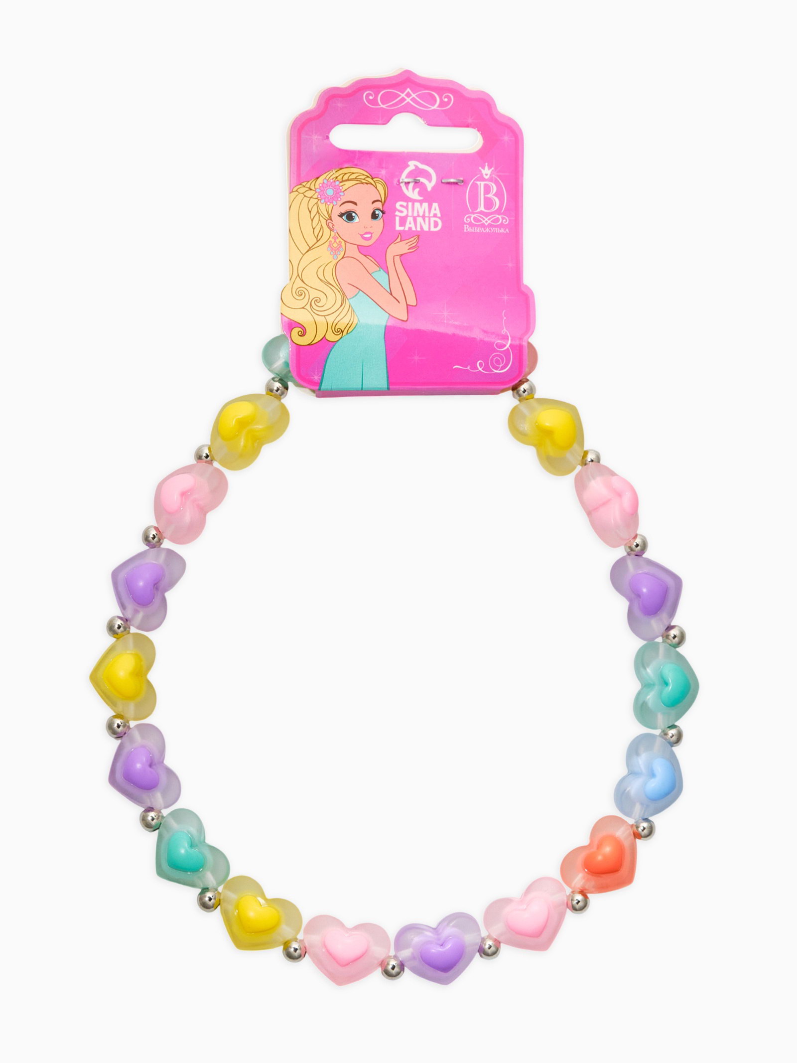 Бусы детские "Выбражулька. Сердце", цветные в серебре, 37.5 см., Выбражулька, Китай