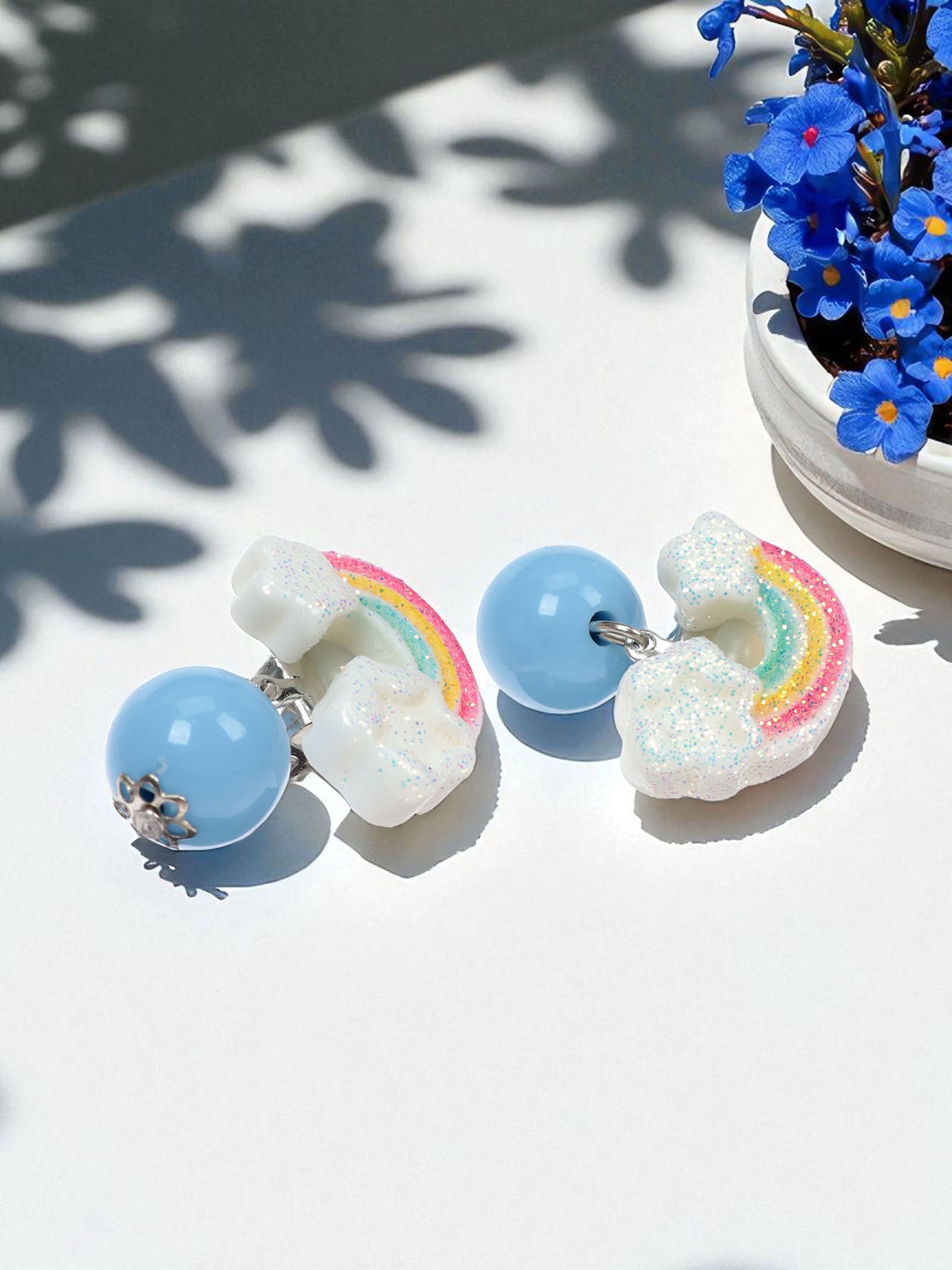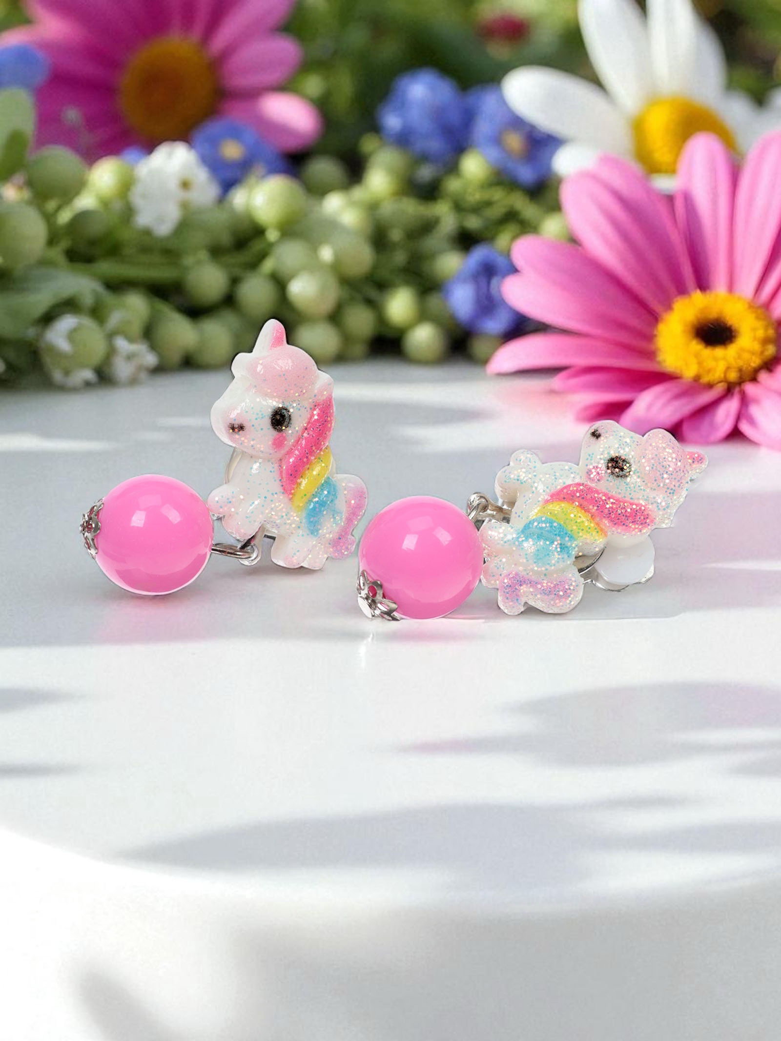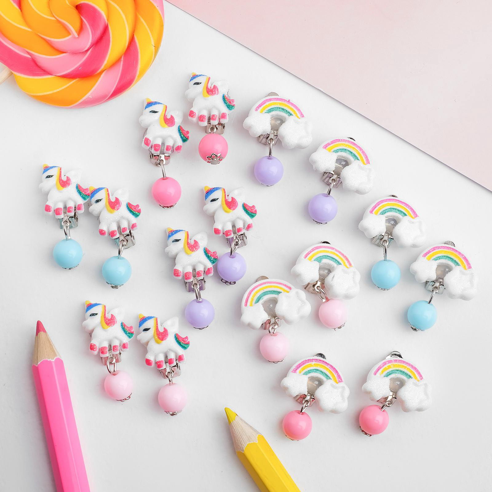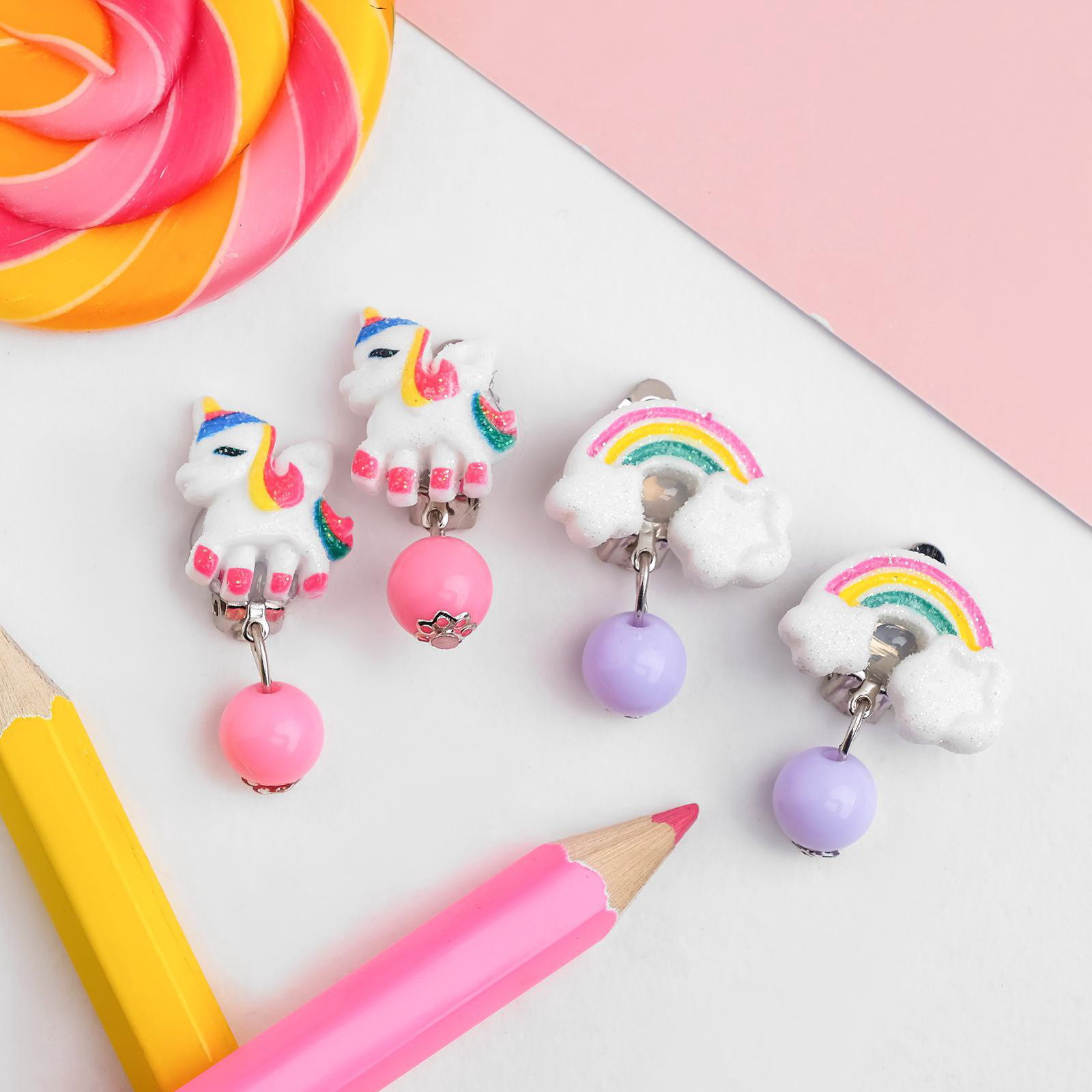 Серьги клипсы детские "Единороги и радуга", форма МИКС, миксы, 2.2x3x0.5 см., Выбражулька, КИТАЙ