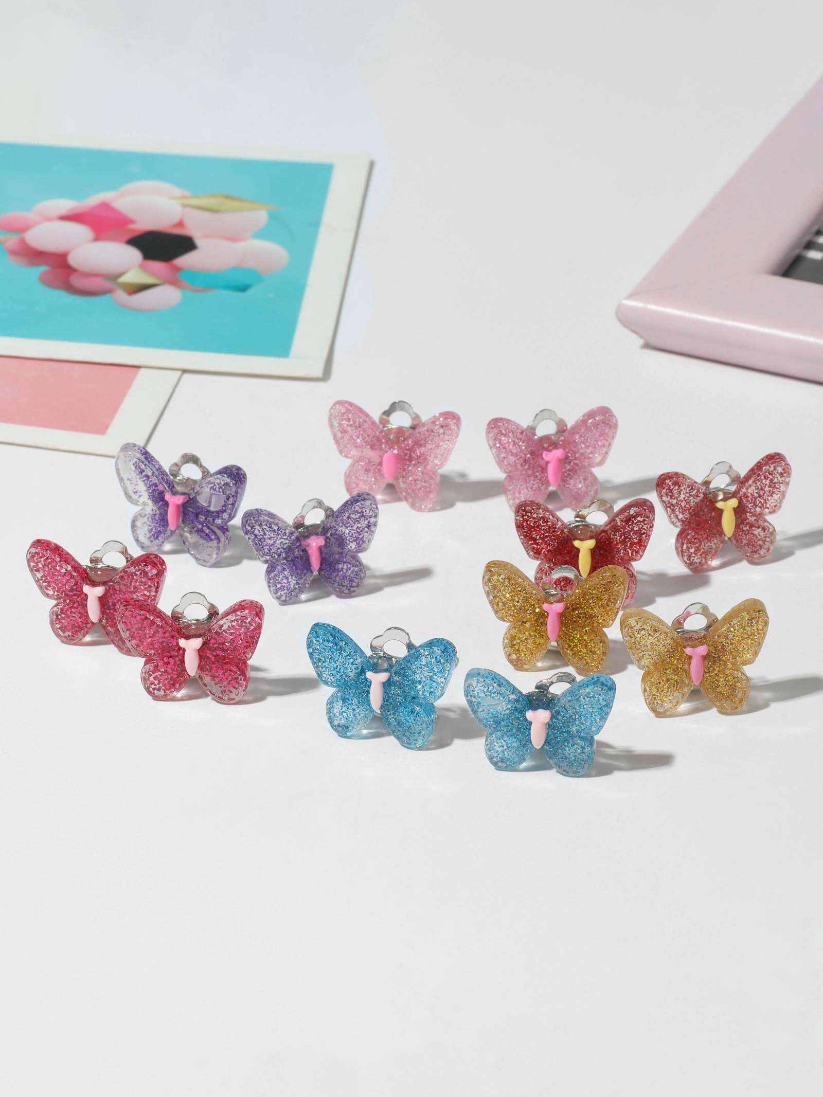 Серьги клипсы детские "Блестящая бабочка", миксы, 1.5x1.5x1.5 см., Выбражулька, Китай