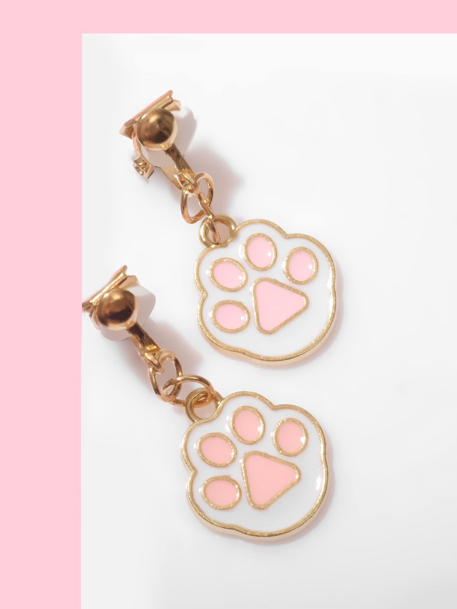 Серьги-клипсы детские "Лапки", бело-розовые в золоте, 1.3x2x1.2 см., Выбражулька, Китай