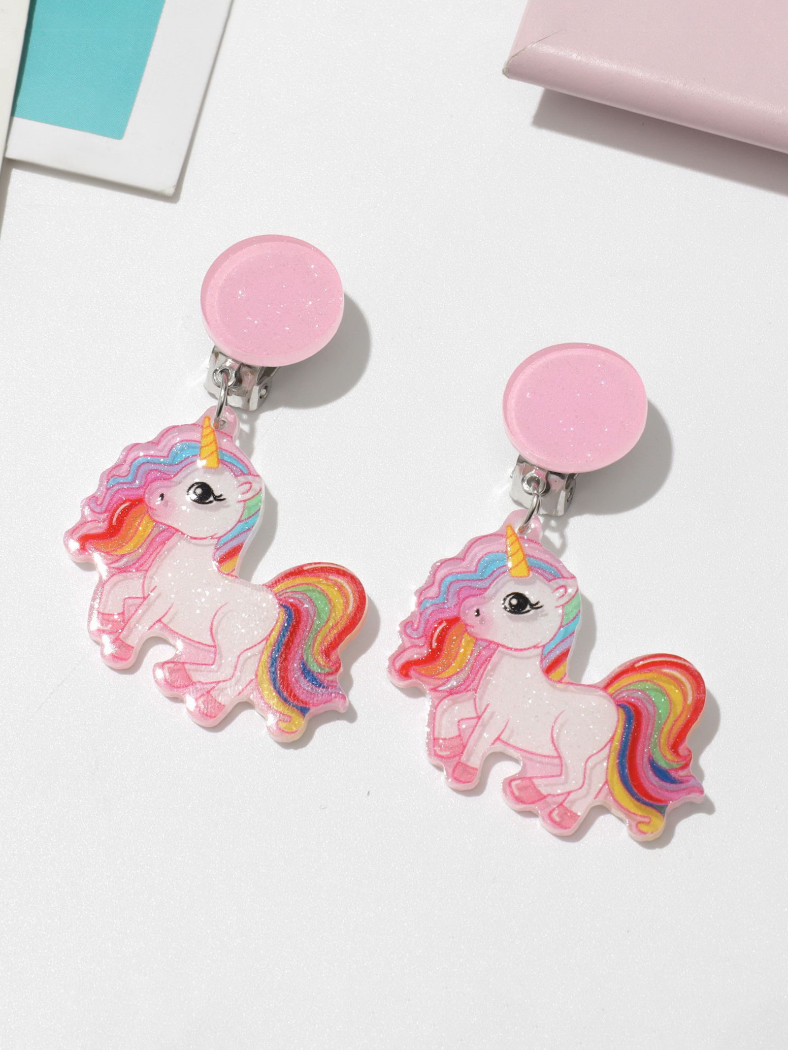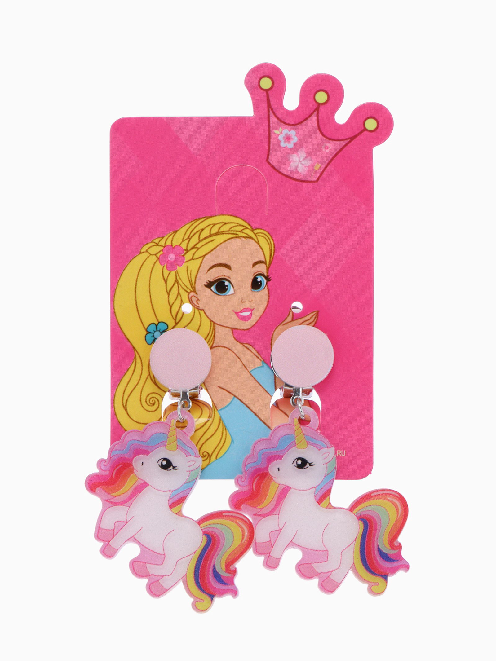 Серьги клипсы детские "Сказка яркого единорога", цветные, 2x4x1 см., Выбражулька, Китай