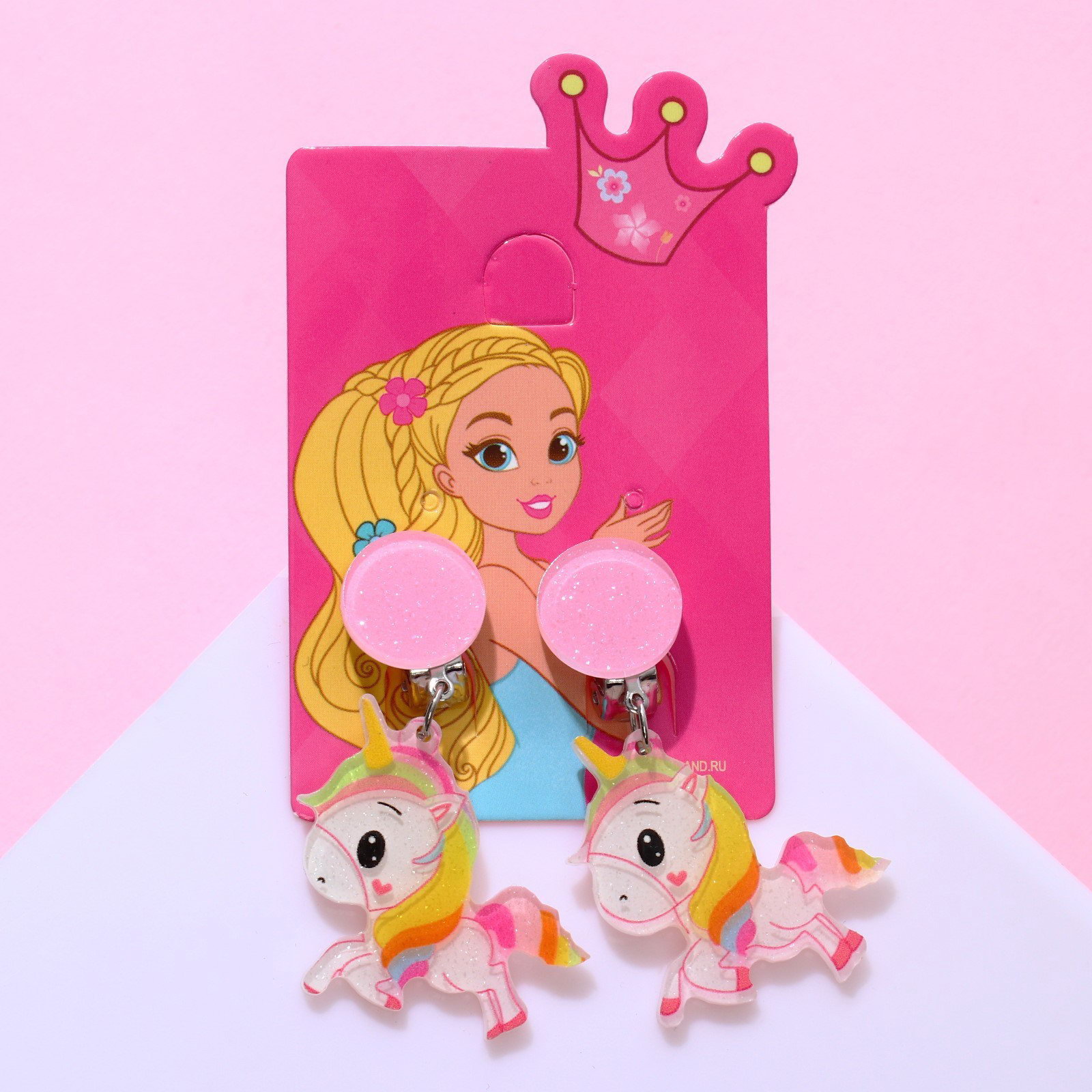 Серьги-клипсы детские сказка, единорожка, цветные, 2x4x1 см., Выбражулька, Китай