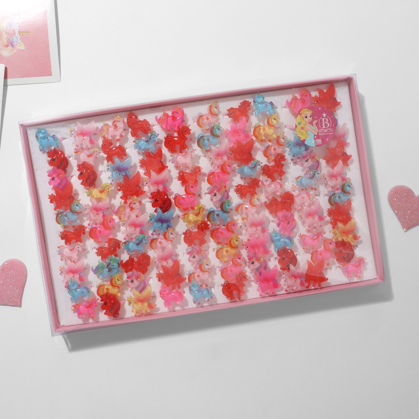 Кольцо детское единорожки, форма МИКС, цвет МИКС, безразмерное, 2x1.5x2 см., Выбражулька, Китай