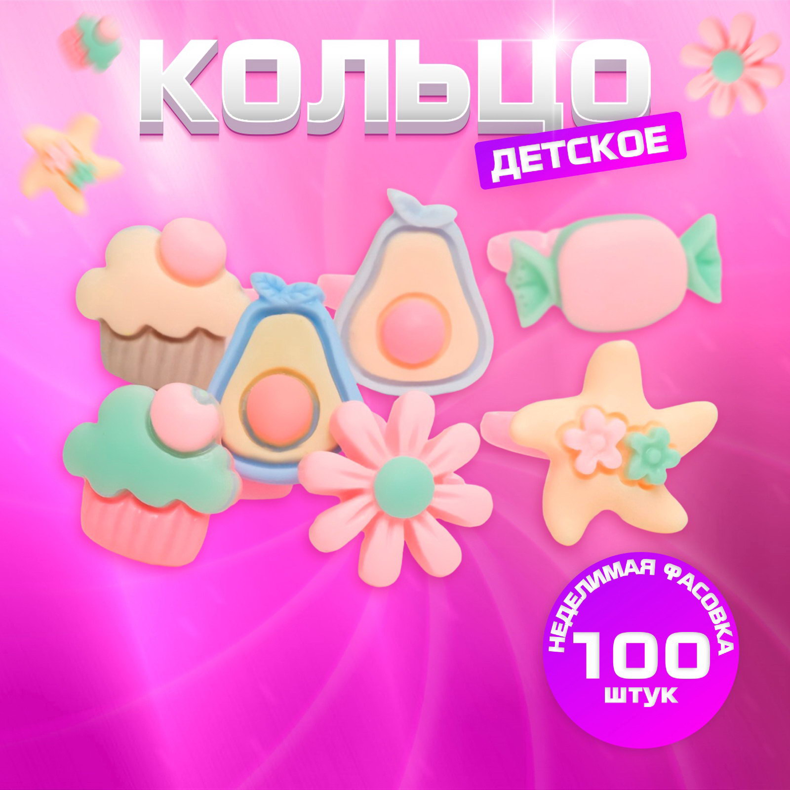 Кольцо "Выбражулька. Гастрономия", форма МИКС, фасовка 100 шт. цветное, безразмерное, 1.5x1.8x1.7 см., Выбражулька, Китай