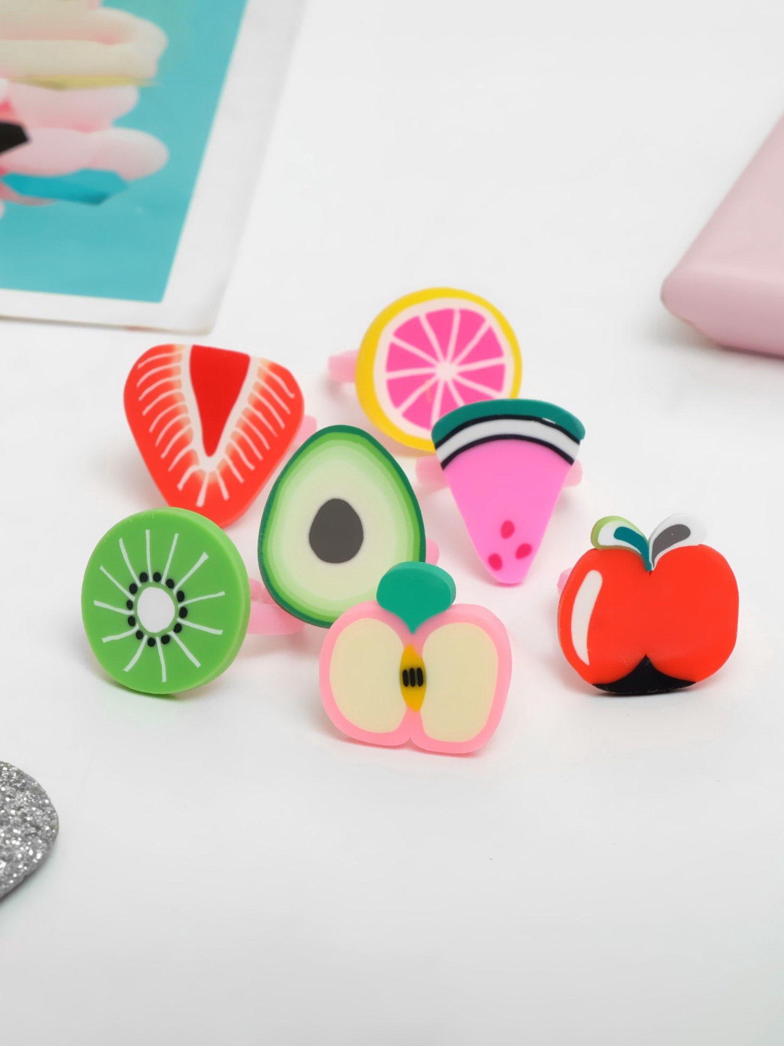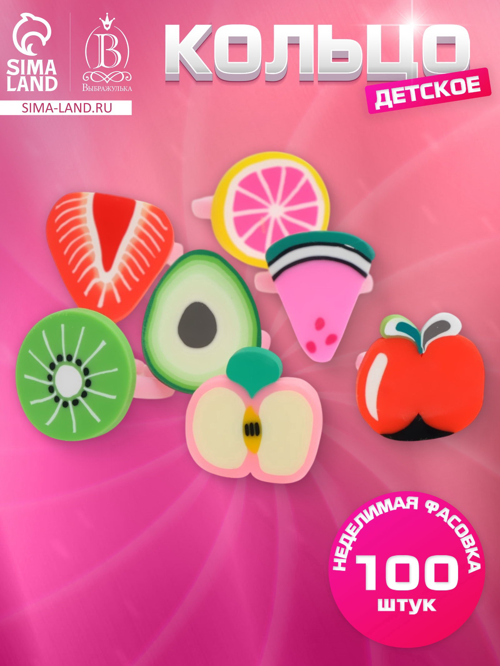 Кольцо детское "Фруктовое ассорти", форма МИКС, цветное, безразмерное, 1.5x2x1.5 см., Выбражулька, Китай